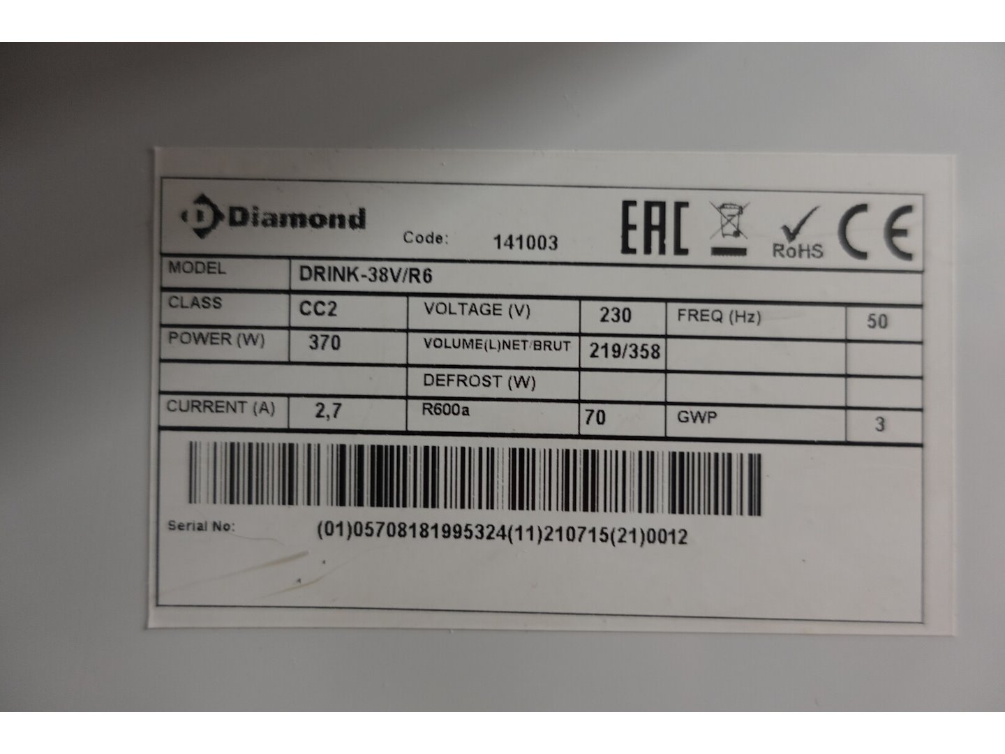 Vitrine koelkast diamond