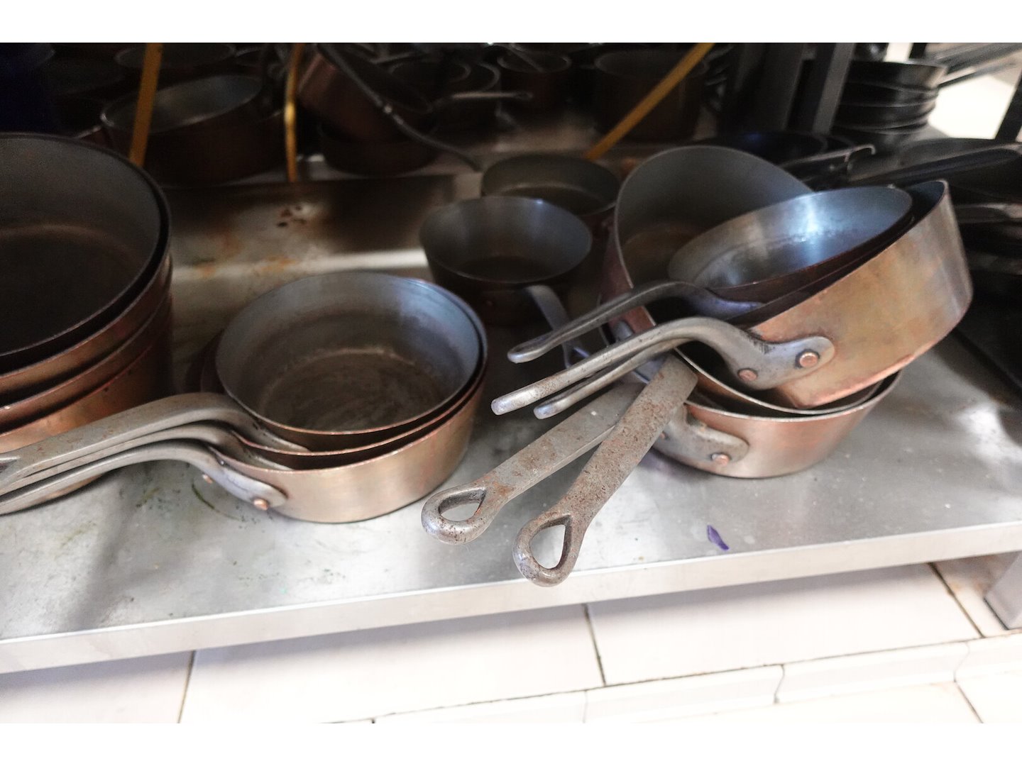 Partij koperen pannen