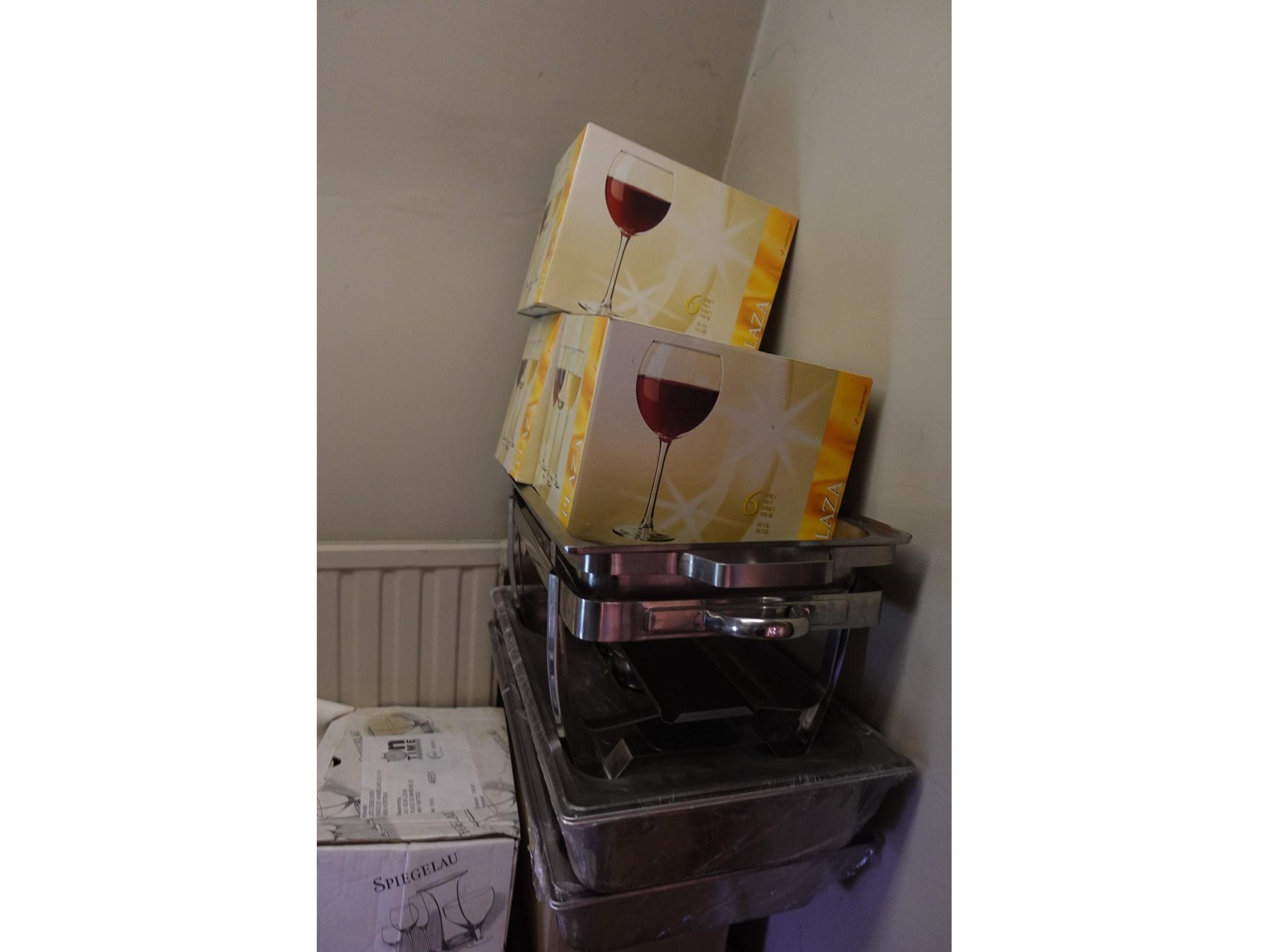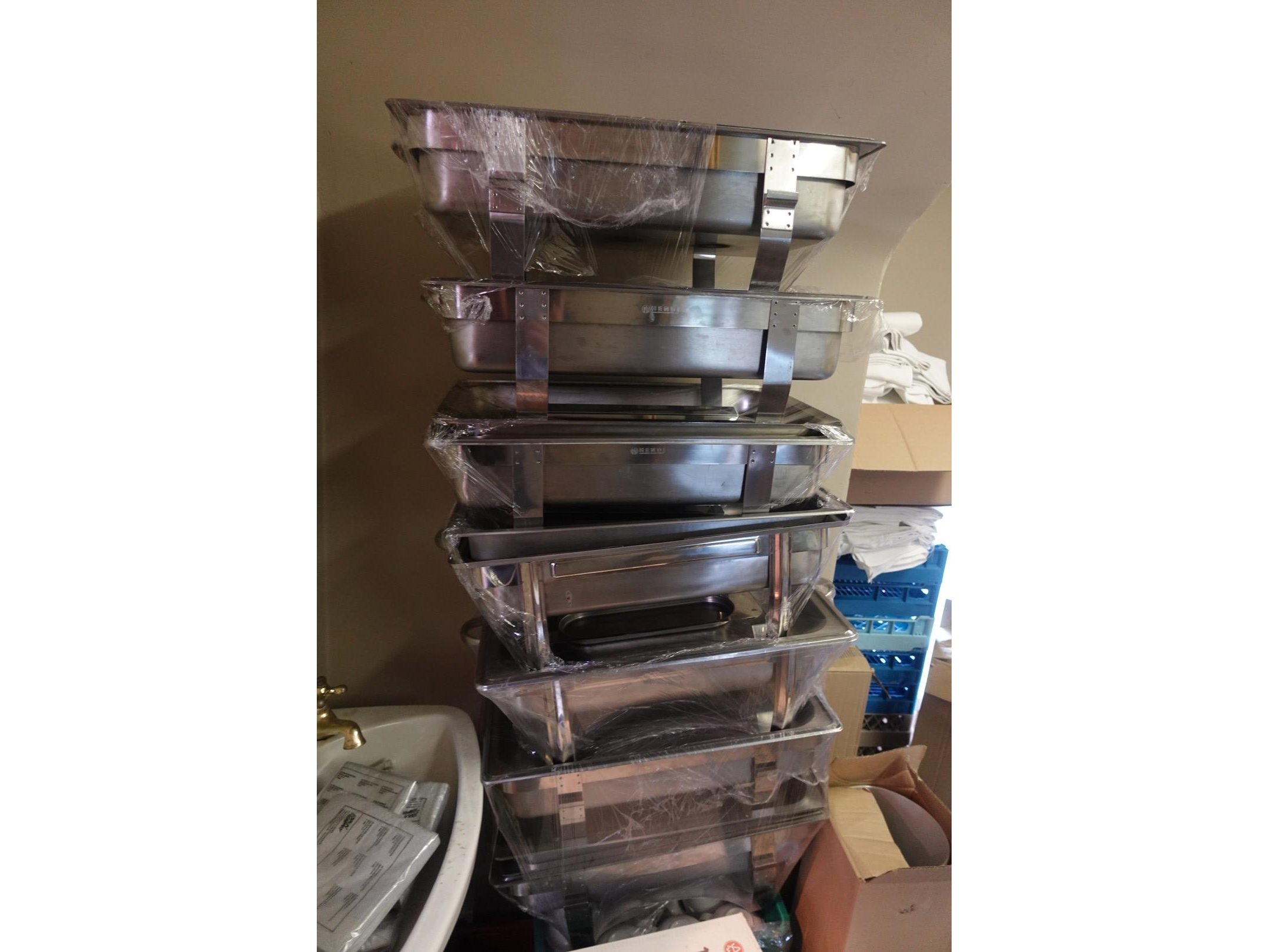 Vv : inox warmhoud bakken , tassen , decoratie , lakens , vazen ,... exl spiegel <br /> locatie: zaal boven