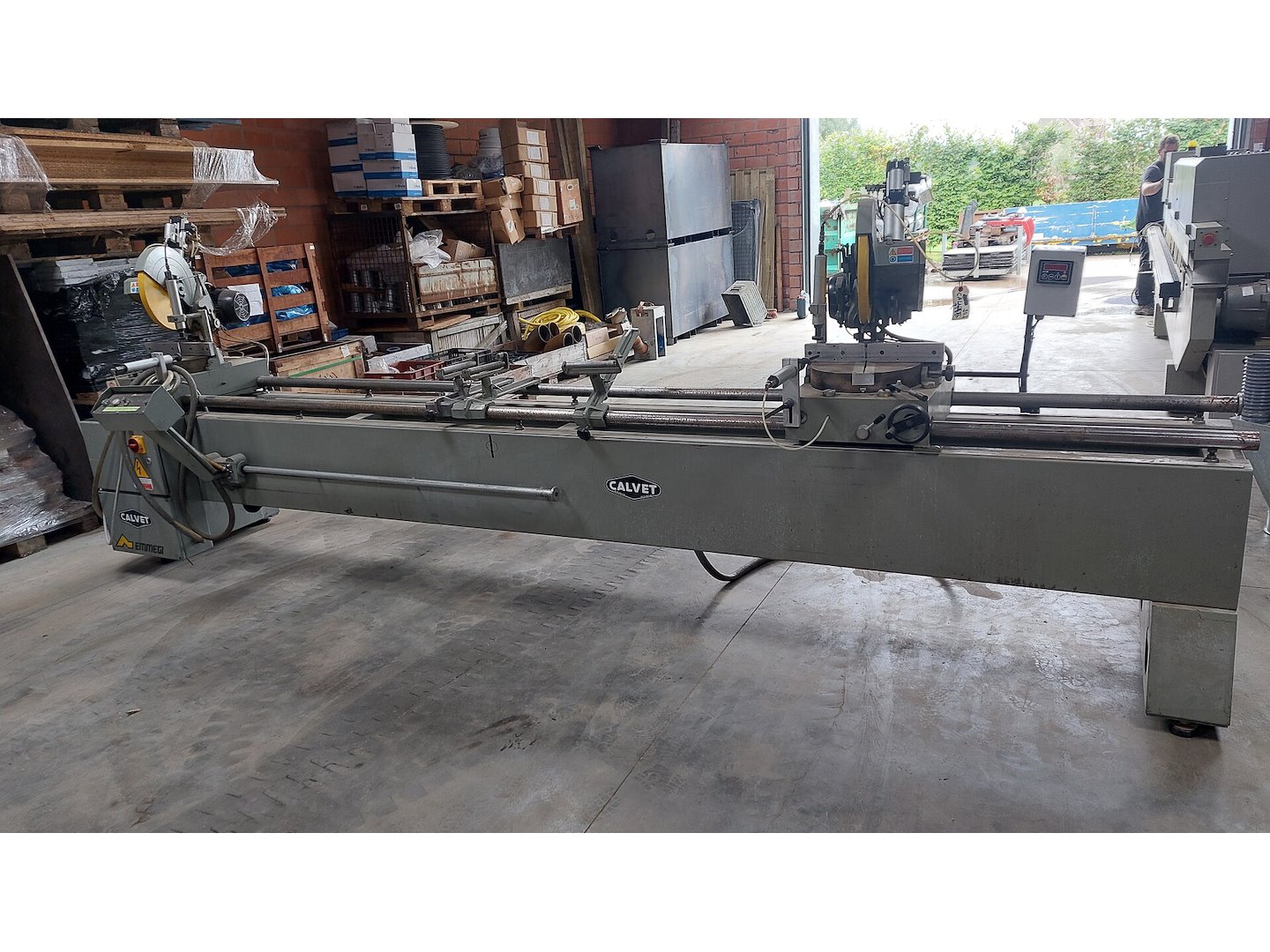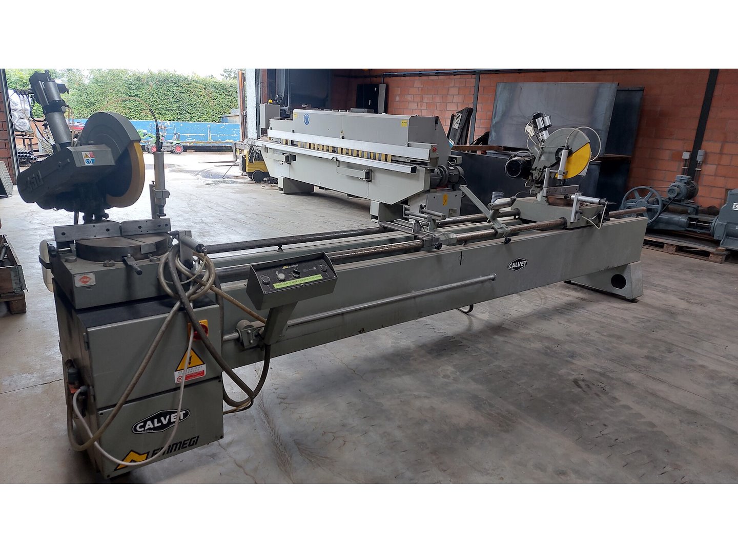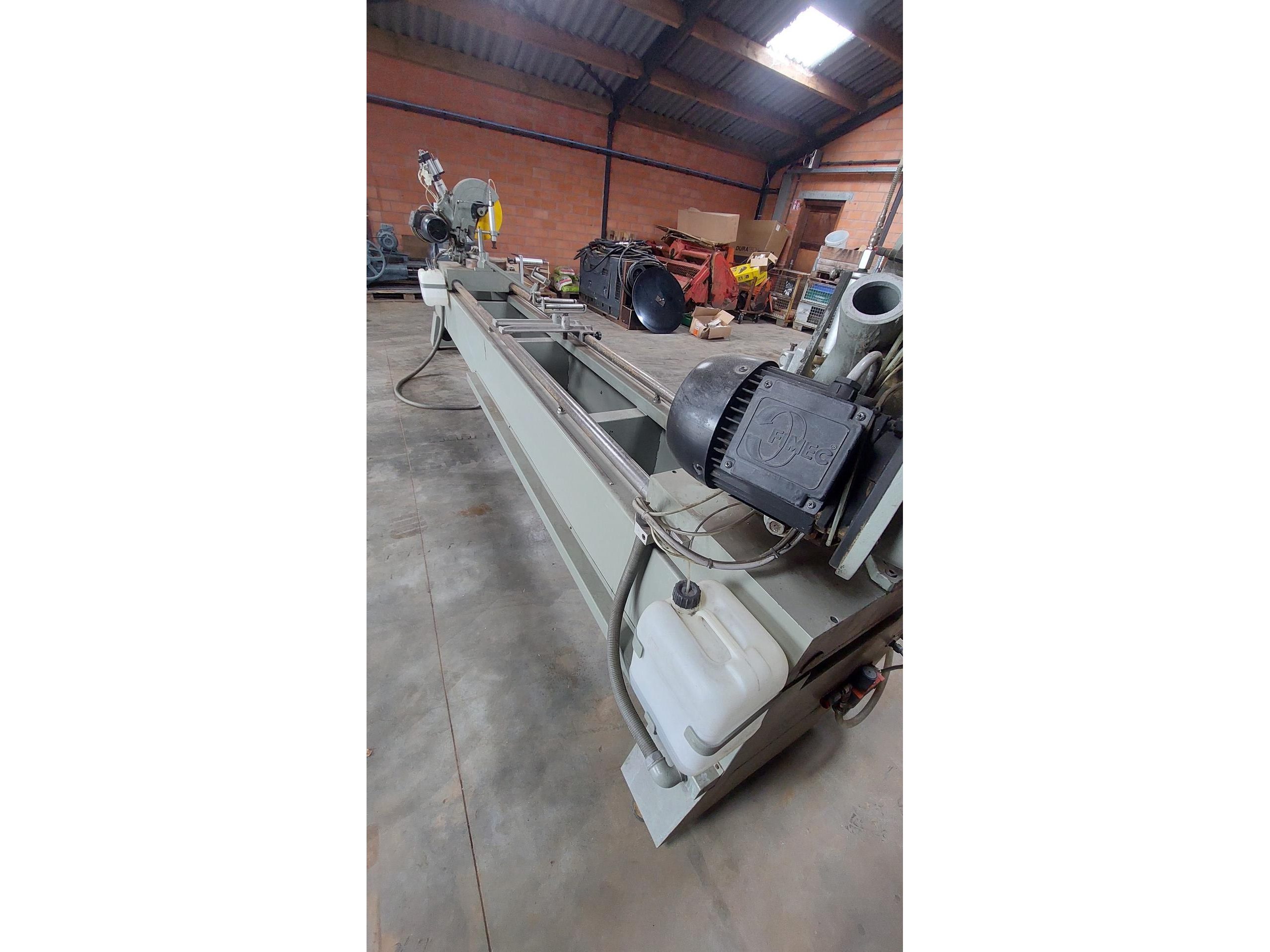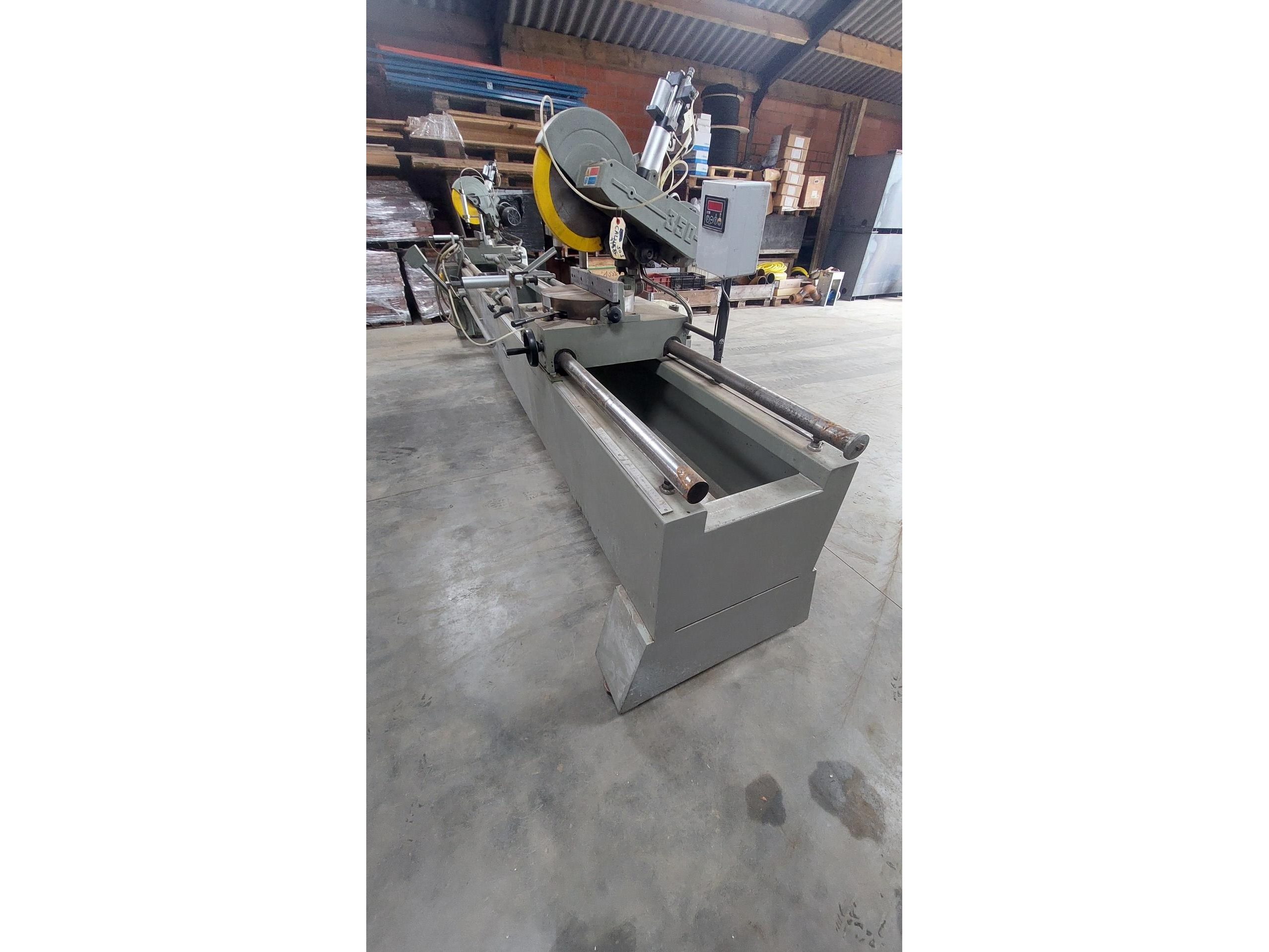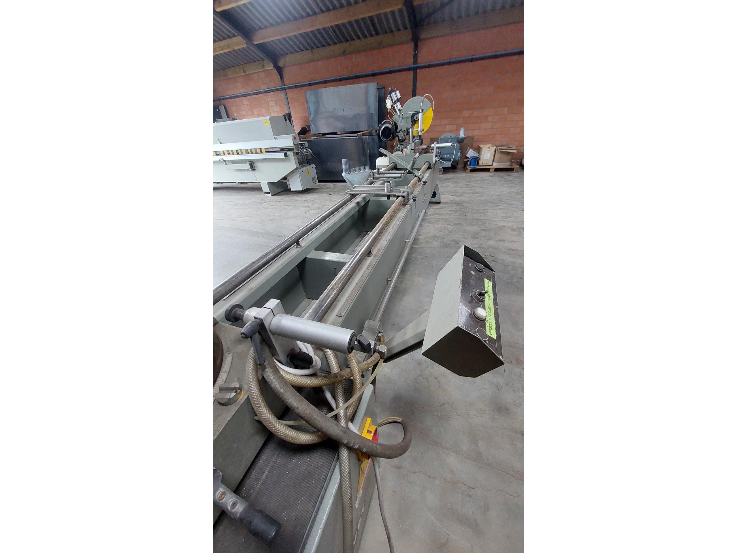 <br /> <br /> Betrouwbare machine. Werkt zonder software.<br /> <br /> Voorzien van meetlat met digitale uitlezing.<br /> Enkel 1 zaagkop zakt automatisch. Persluchtleiding op de tweede kop moet worden nagekeken.<br /> <br /> Afmeting = L 465 x B 70 x H 175 cm<br /> <br /> Alleen ophalen op afspraak.<br /> Laden kan voor 100 euro excl. BTW