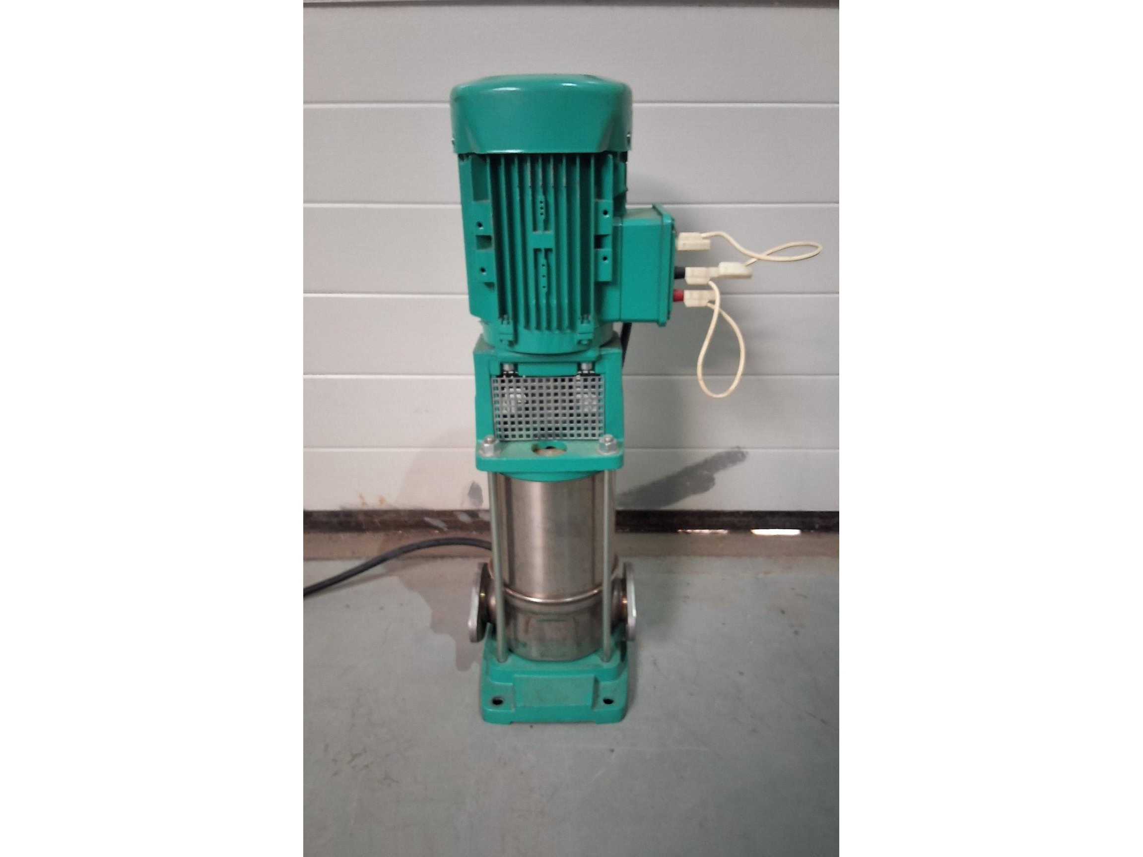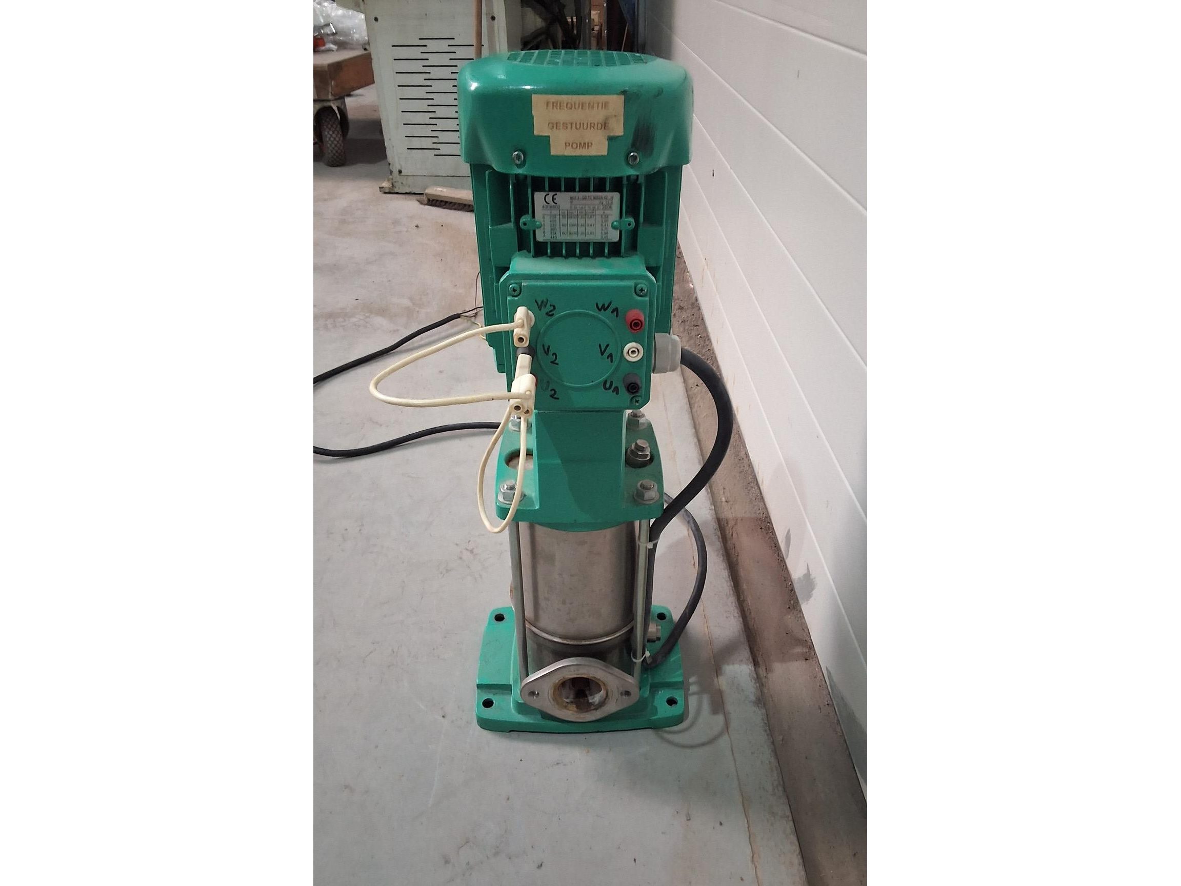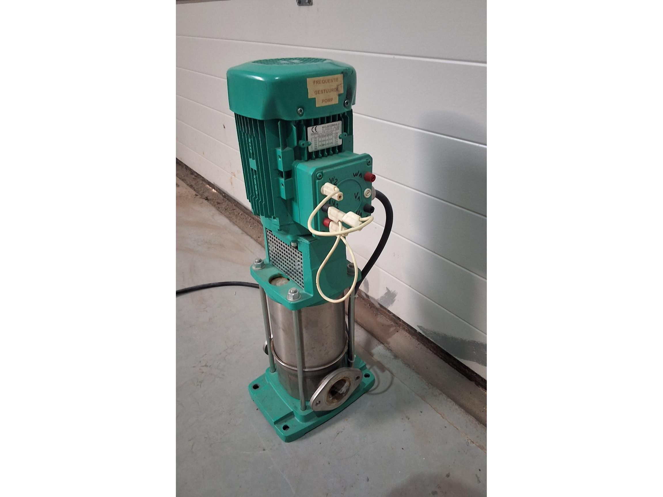 Frequentie gestuurde pomp <br /> mvi 805-1/16/E/3-400-50-2<br /> QS FC 90S2A-42<br /> <br /> centrifugal pump, inline pump, vertical high pressure centrifugal pump<br /> <br /> WILO<br /> <br /> Multivert MVI805-1 /16 /E /3-400-50-2 /EC<br /> <br /> 4024730/0403/02117<br /> <br /> p: max. 16 bar<br /> <br /> t: max. 120 ° C<br /> <br /> Installation length: 200 mm<br /> <br /> Connections: Ø 48 mm<br /> <br /> Motor: QS FC 90S2A-42 H<br /> <br /> 1.85 kW<br /> <br /> 2810 rpm<br /> <br /> 230/400 V 3AC<br /> <br /> 50 Hz<br /> <br /> used, overhauled!<br /> <br /> Dimensions: 255 x 250 x 705 mm