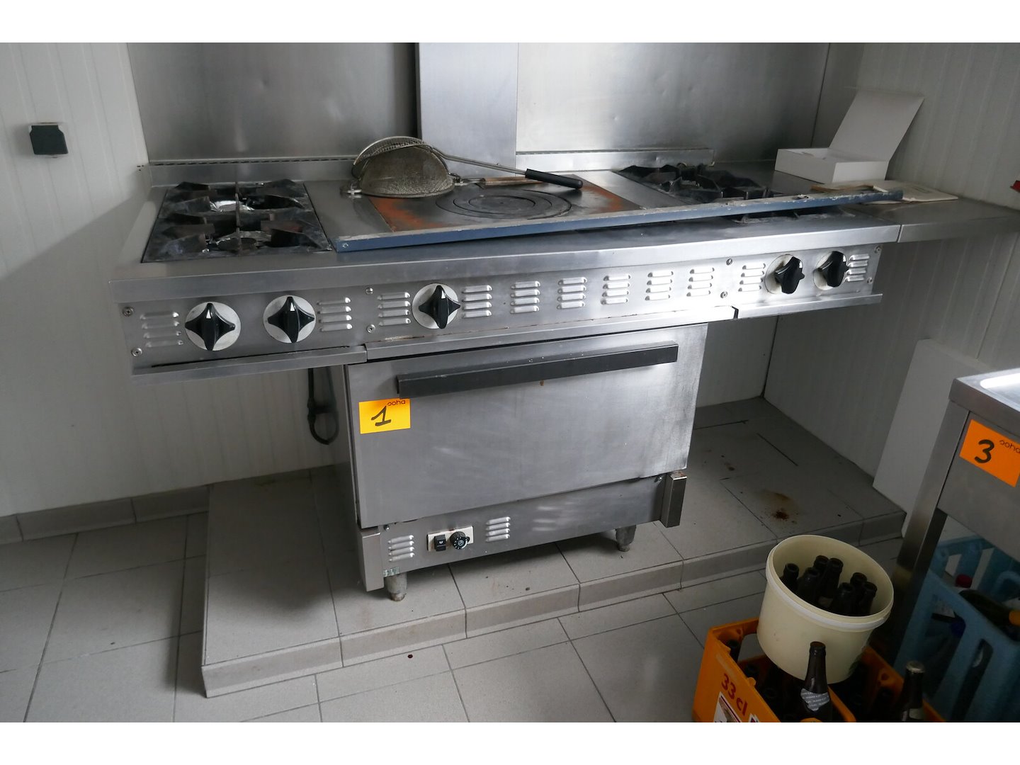 Met 4 pits, doorkookplaat en oven <br /> *merk : niet zichtbaar <br /> *afmeting : L200xB80xH91 cm