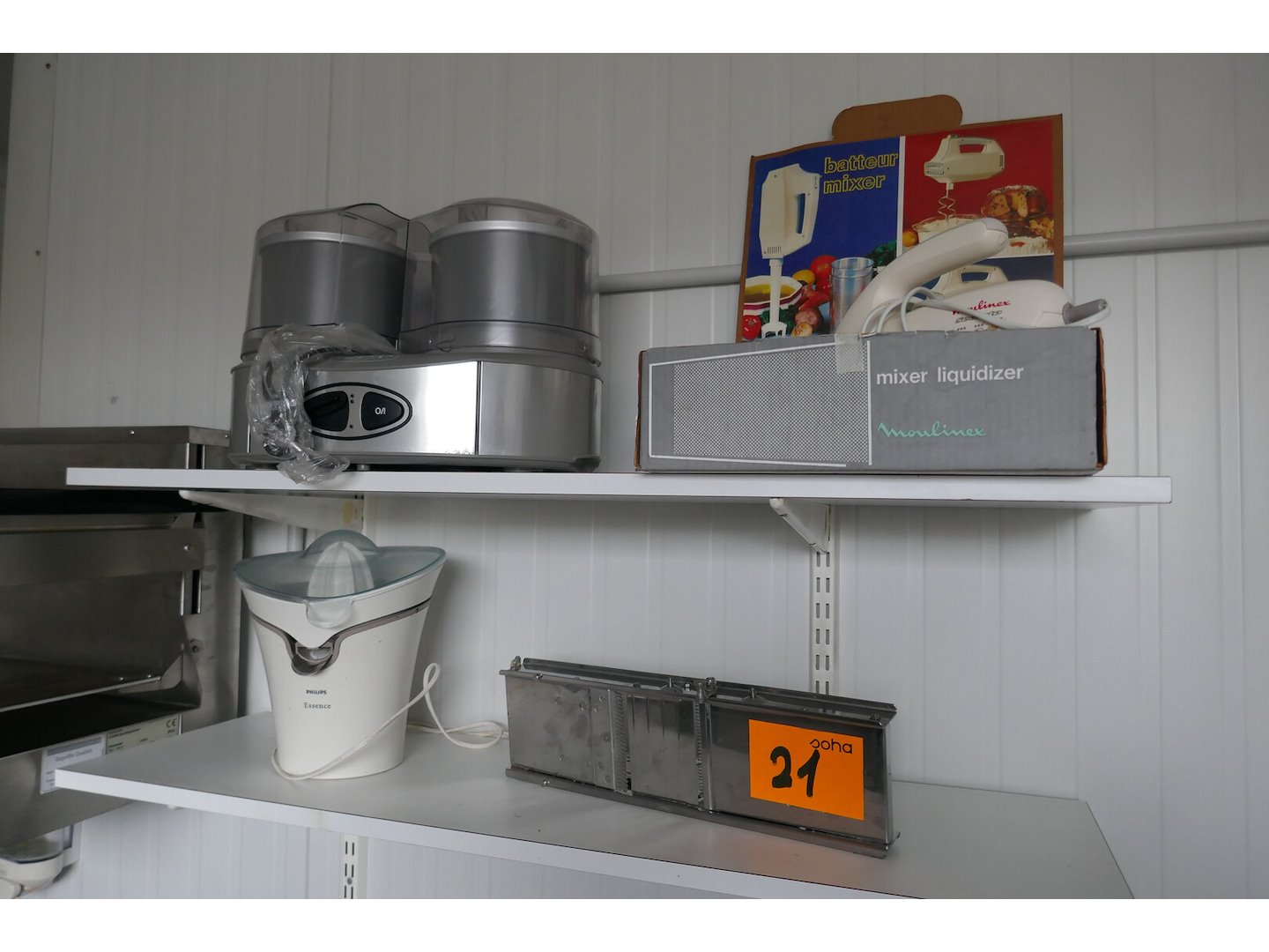 Elektrische groentensnijder - merk, CUISINAIRE<br /> + Elektrische mixer - merk, MOULINEX<br /> + Elektrische fruitpers - merk, PHILIPS<br /> + Mandoline