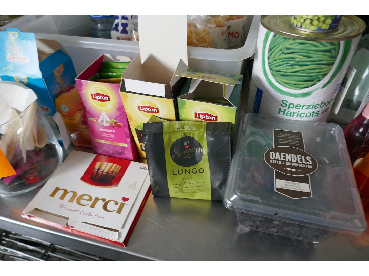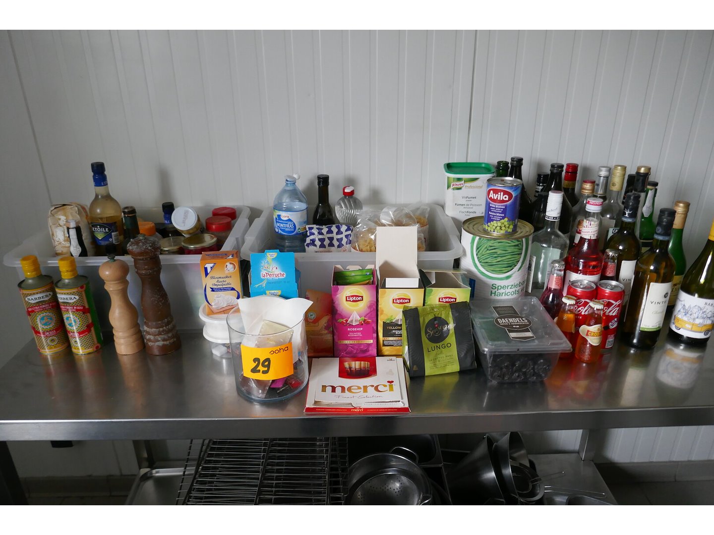 Diverse voedingsprodukten : kruiden - pastas - thee's - sterke dranken - frisdranken - aluminium papier - verpakkingsmateriaal - enz…