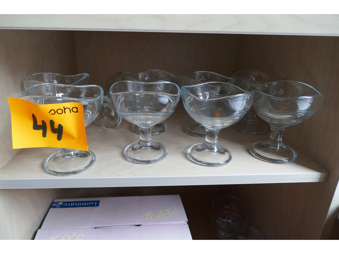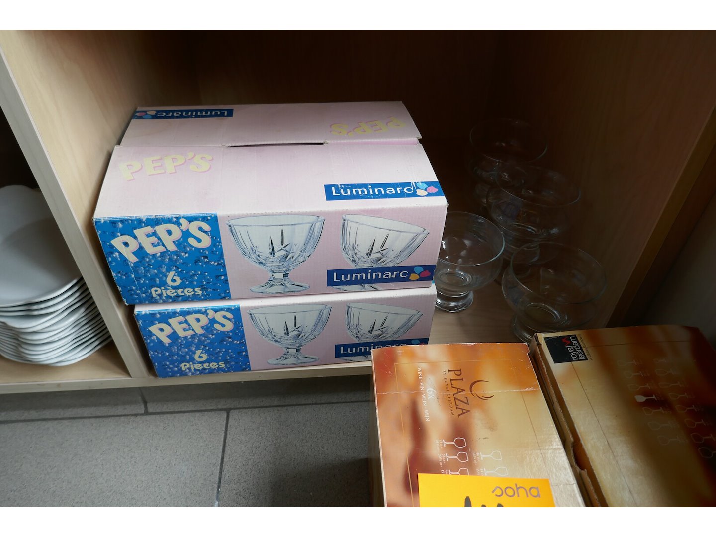 Glazen ijscoupkes - dessertglazen - wijnglazen - glazen kommen en schalen - glazen borden + inhoud vitrinefrigo