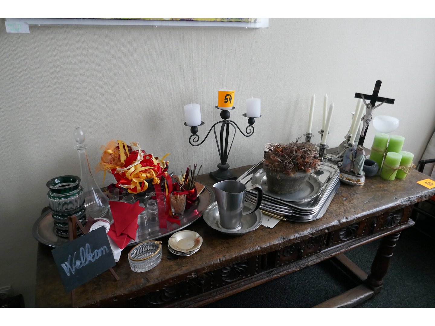 Kandelaar - opdienschalen - religieuze beelden - kaarsen - enz..