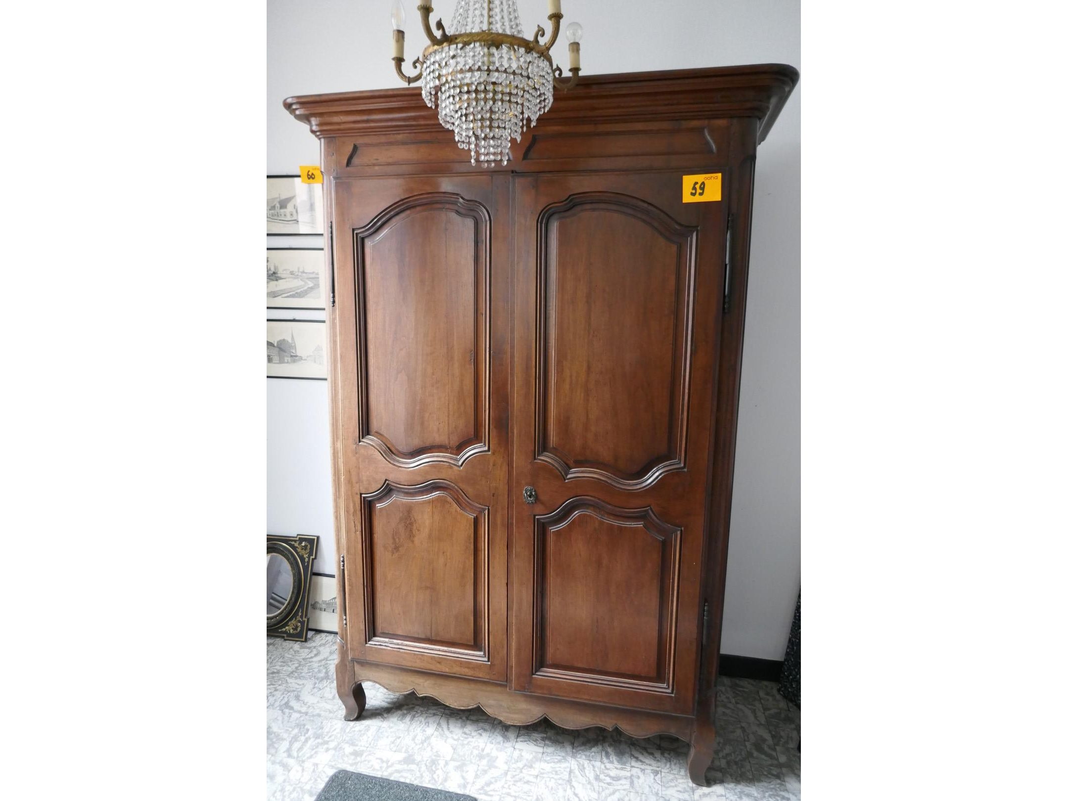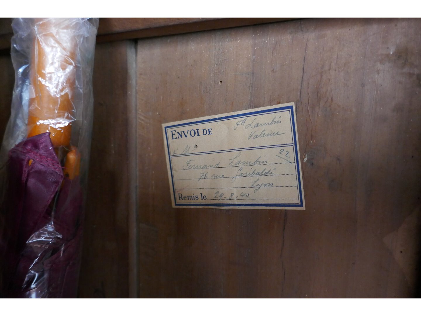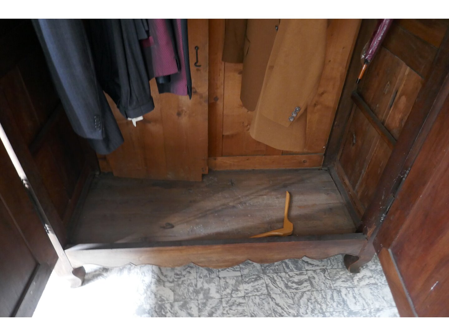 Oude eiken kledingkast in Lodewijk XV stijl<br /> *gemaakt en gesigneerd door Fernand Lambim ( Lyon ) 24 augustus 1940 <br /> *afmeting : L130xB60xH214 cm