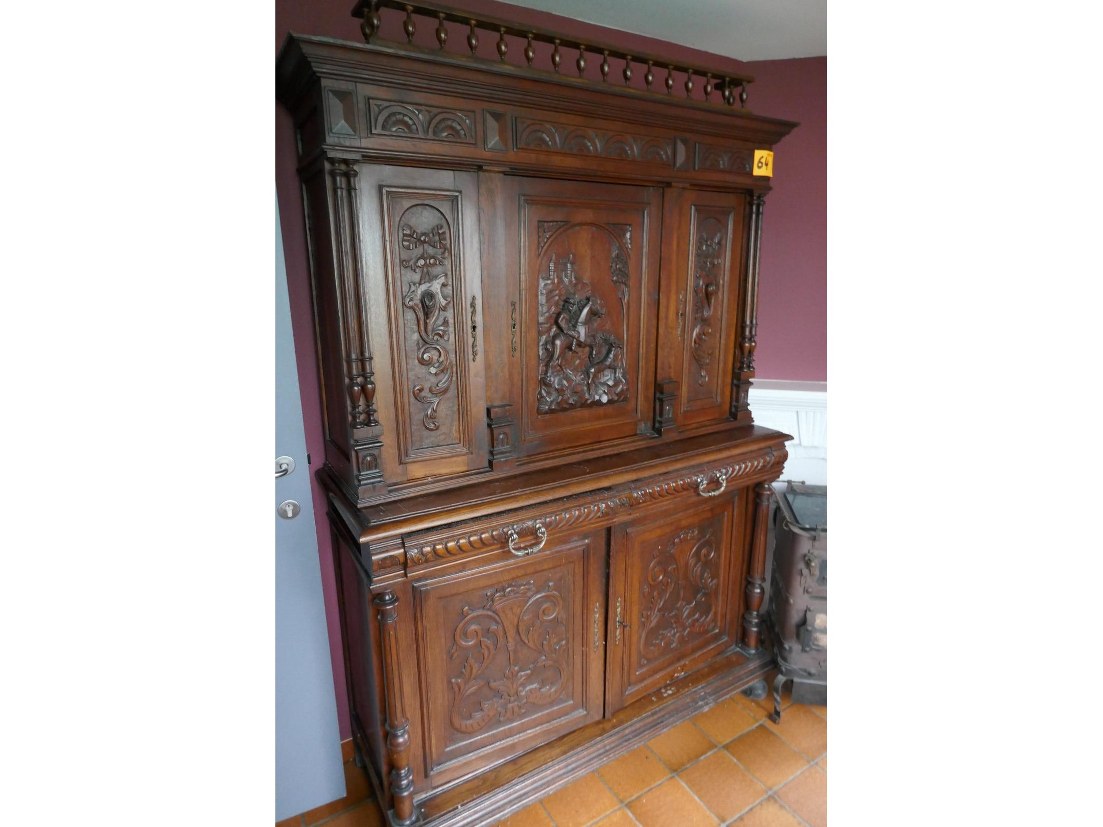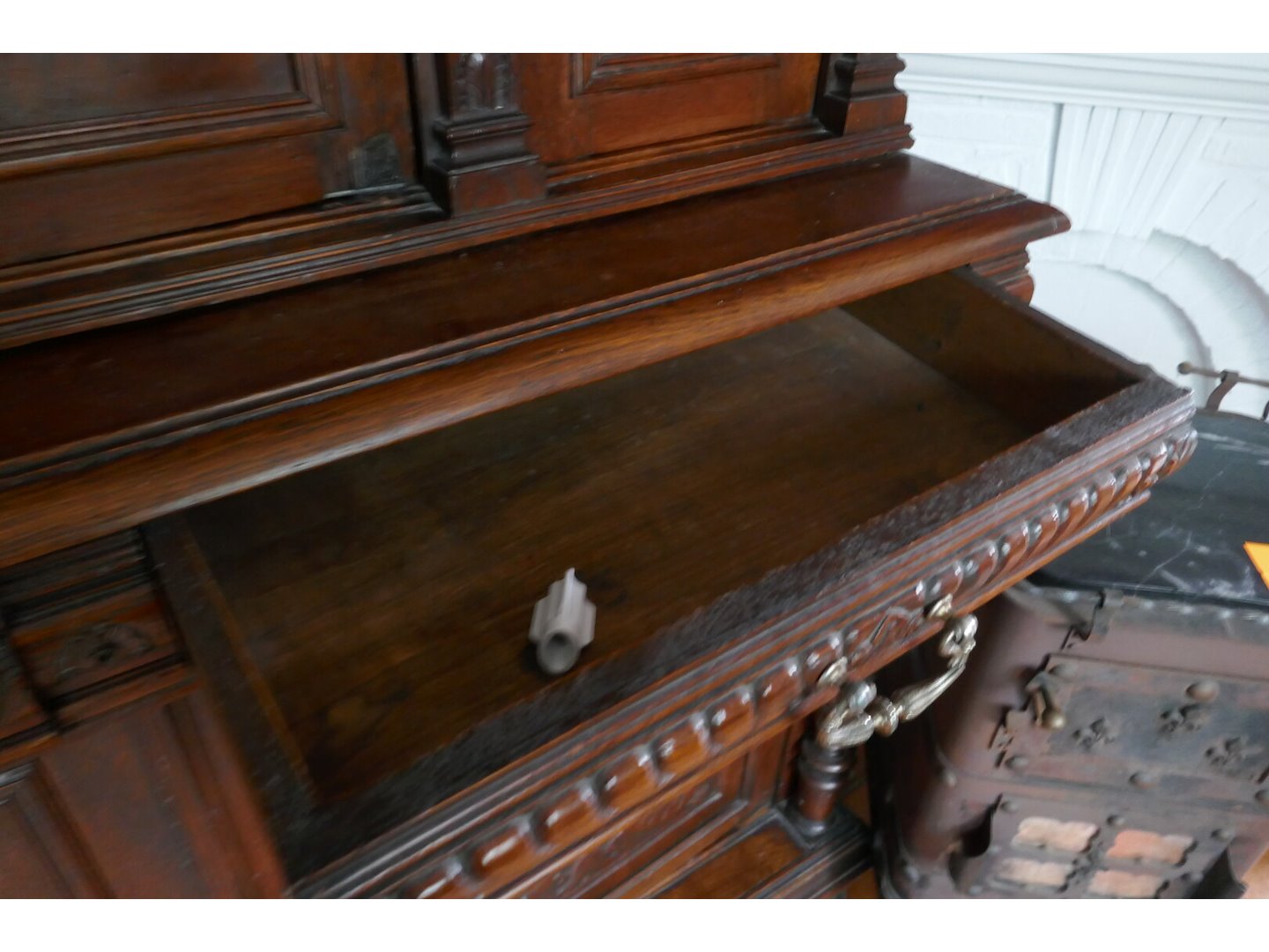 Antieken frans keukenbuffet in eik met houtsnijwerk