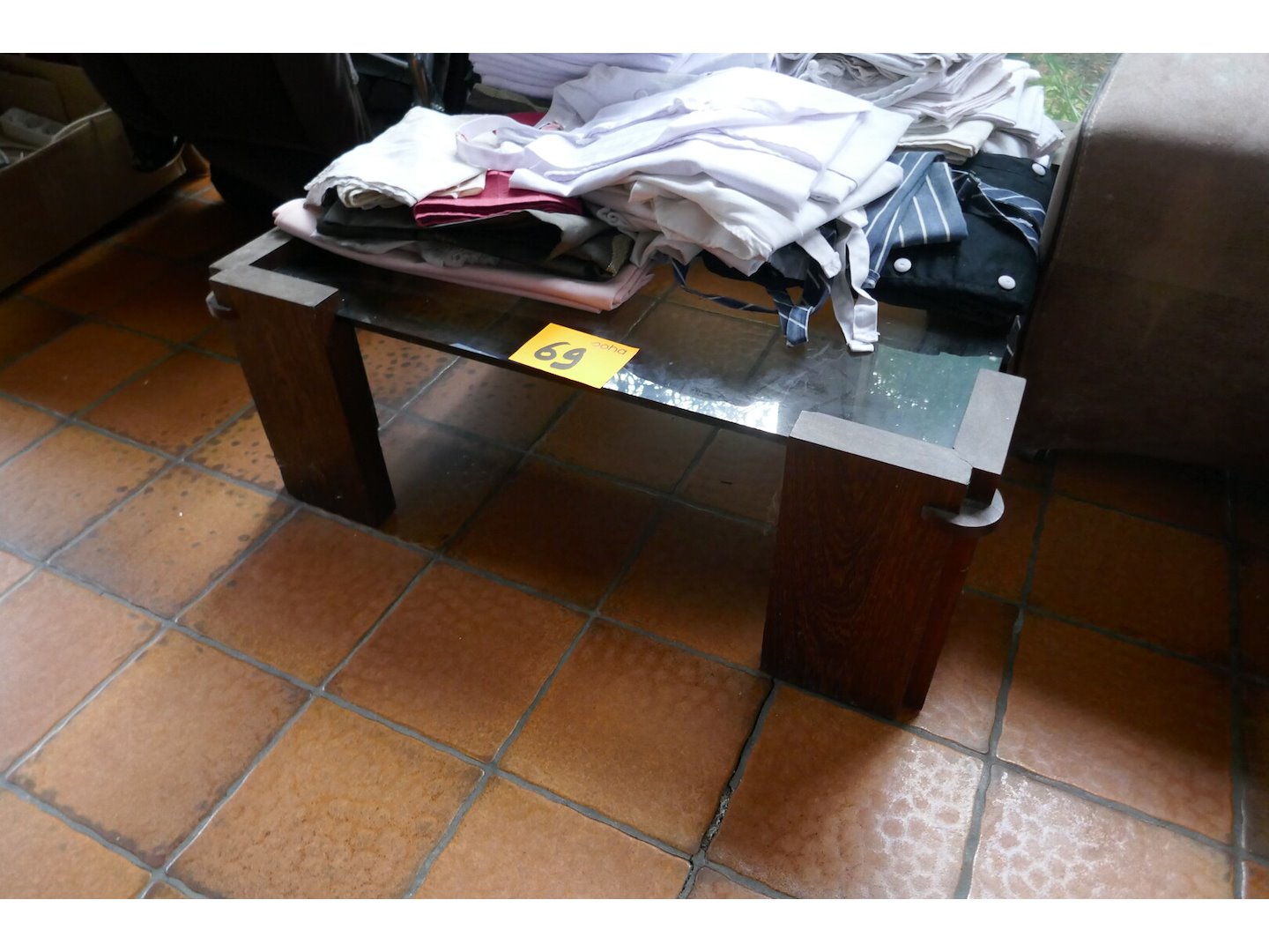 Houten salontafel met glazen blad - eetkamerstoel - plooibare zetel