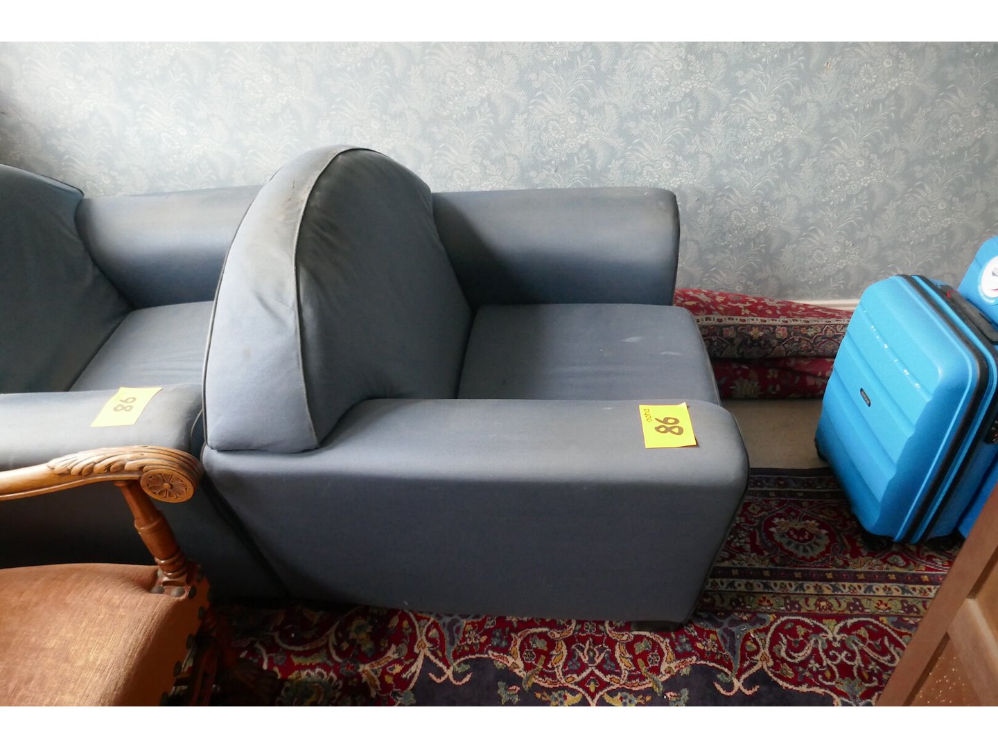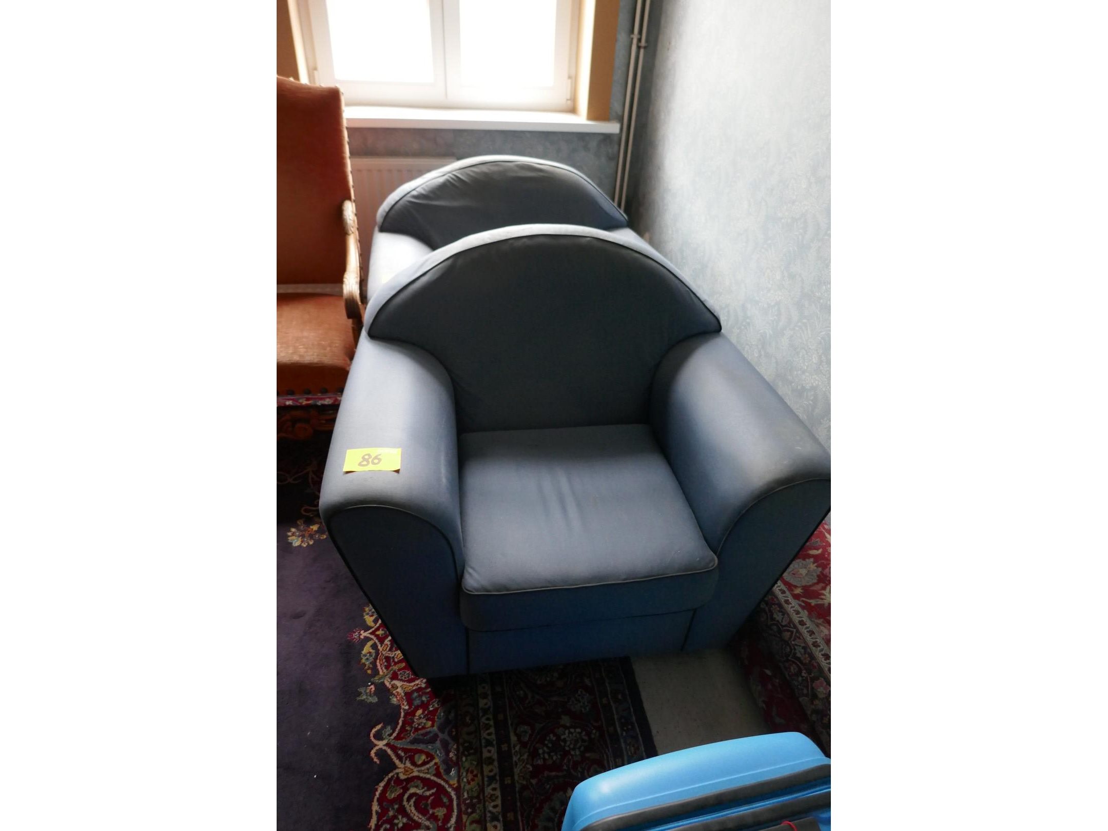 2 blauwe stoffen fauteuils