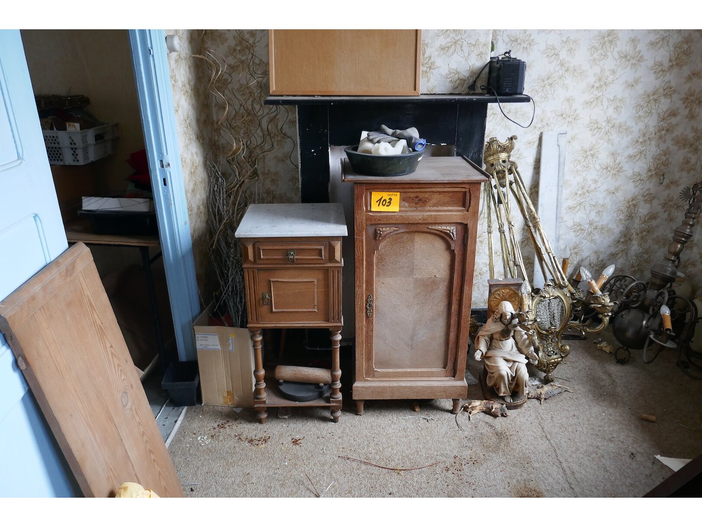 2 gedemonteerde vintage bedden en kasten