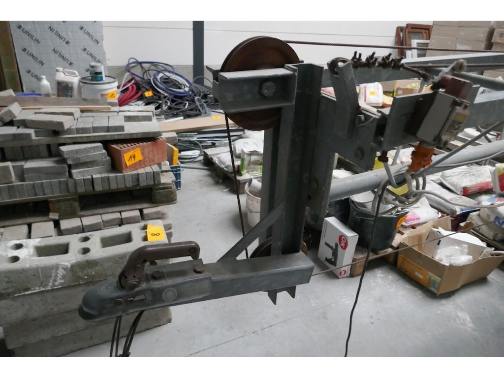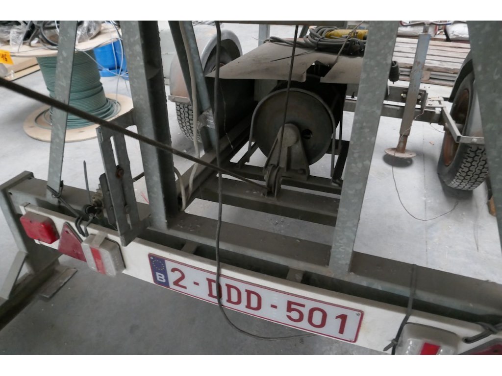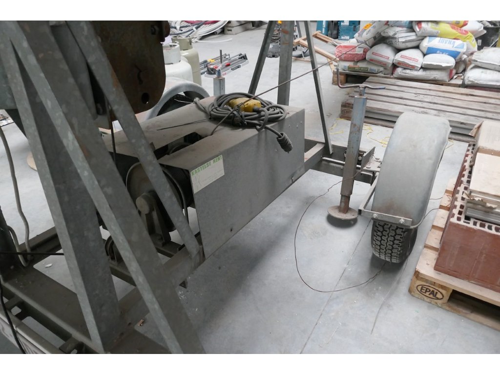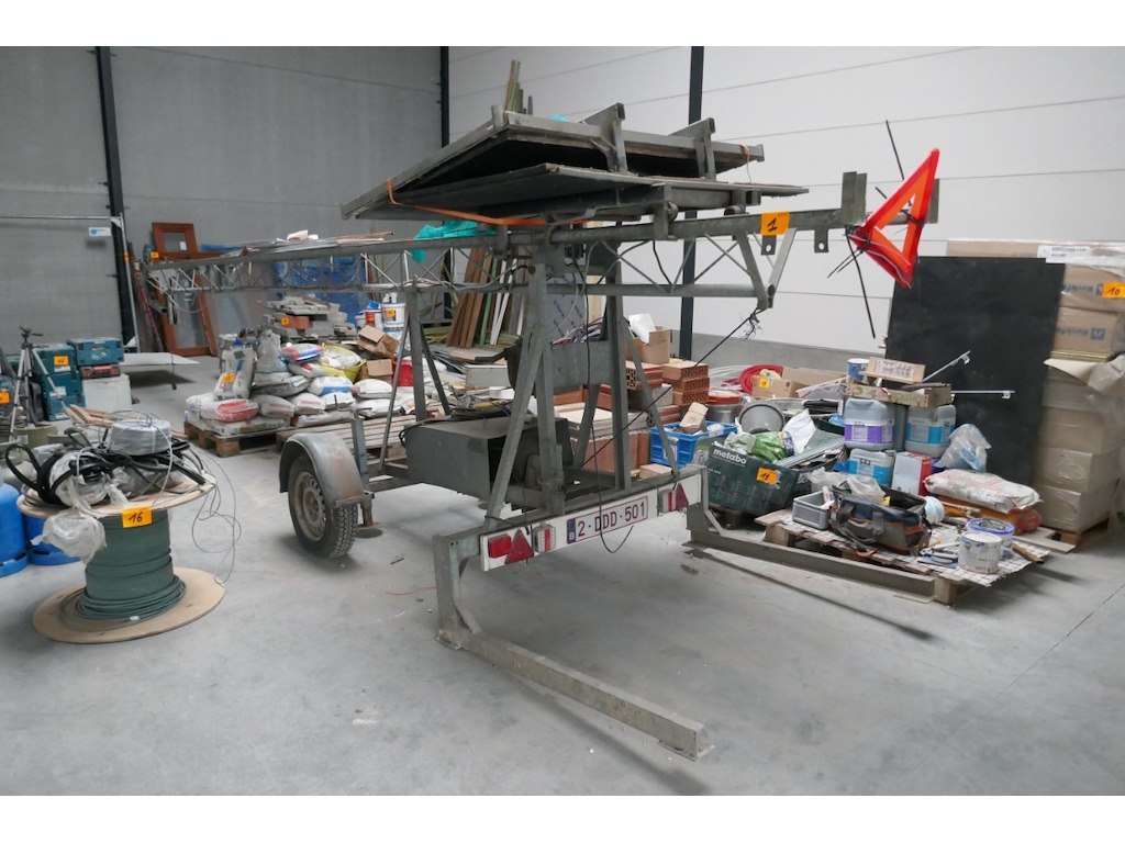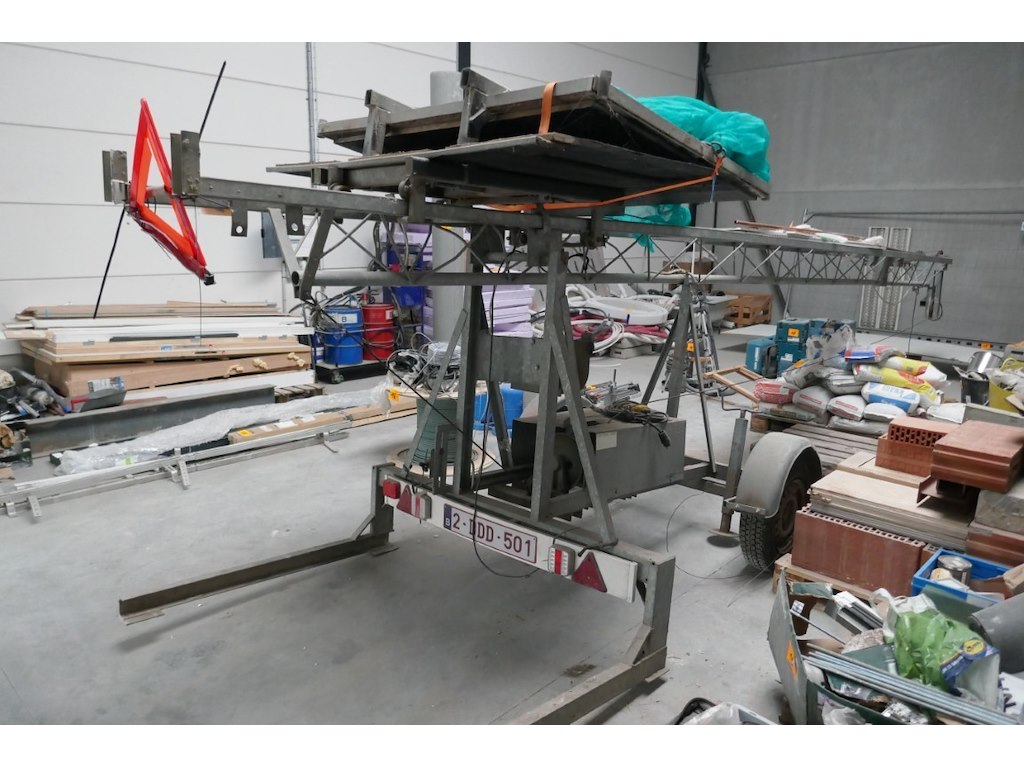 Bouwlift aanhanger <br /> merk : LAMET<br /> model : AV4 <br /> hefhoogte : niet zichtbaar<br /> Bouwjaar : 2007<br /> Capaciteit : 250 kg<br /> plateau : opklapbaar<br /> Luchtbanden<br /> Elektrische motor 220 V