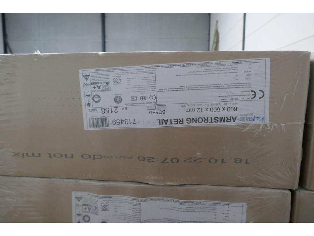 2 palletten met brandwerende platen ARMSTRONG RETAIL<br /> *merk : KNAUF<br /> *afmeting : 600x600x12 mm