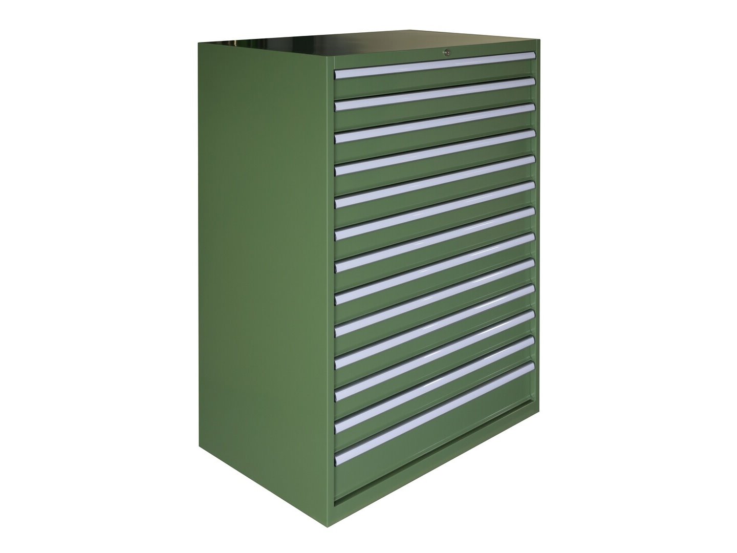 Kast met centraal vergrendelsysteem en vergrendelstang - De laden zijn enkelvoudig en volledig uitschijfbaar - Draagvermogen per lade volledig uitschoven: 200kg - - 12 laden van 100mm hoog - 1 lade van 150mm hoog<br /> Nieuw
