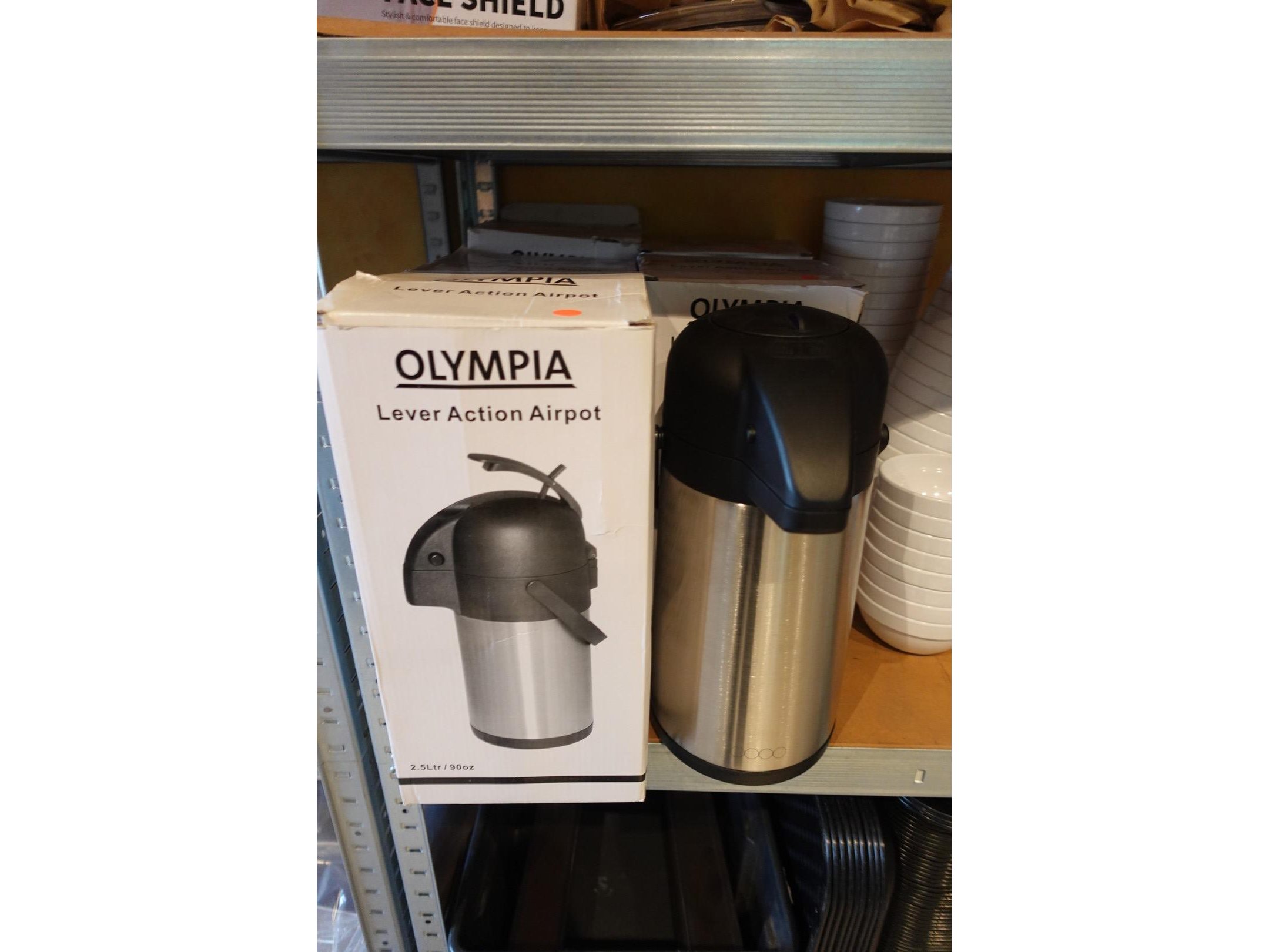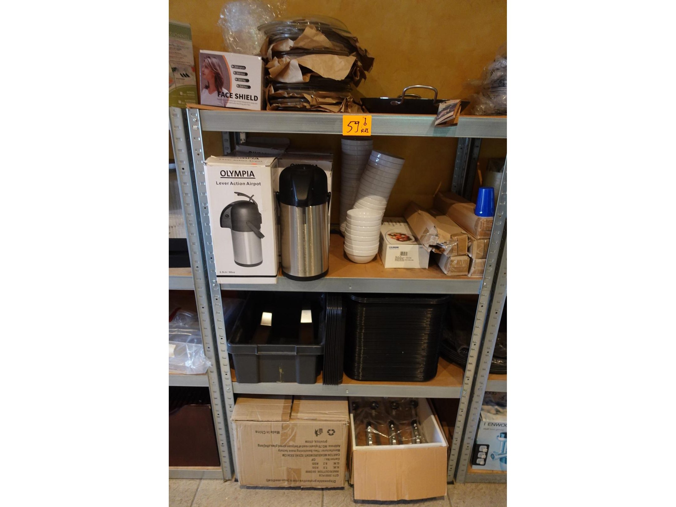 Oa: 6x koffiekan, dienbladen, drankdispenser, mondmasker,..