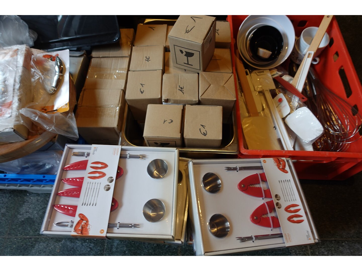 Oa: spatels,kloppers,tangen,ijsscheppers,p&z molen, glazen, kreeftenset,...