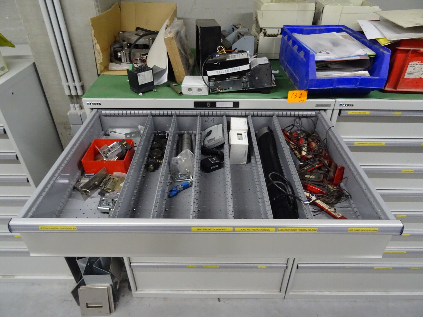 Metalen ladekast lista + inhoud