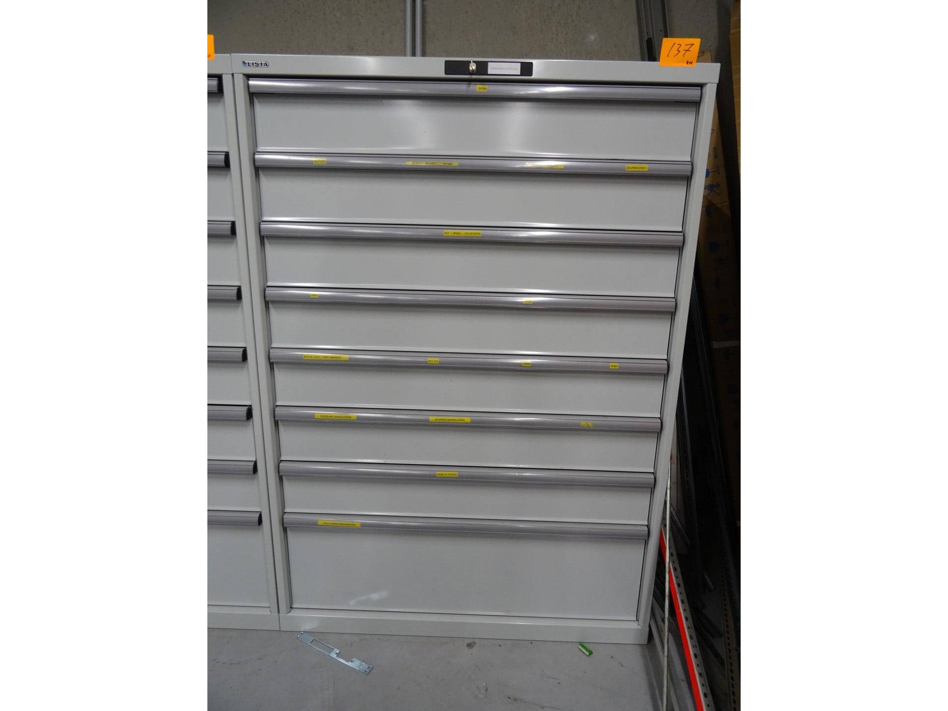 Metalen ladekast lista + inhoud