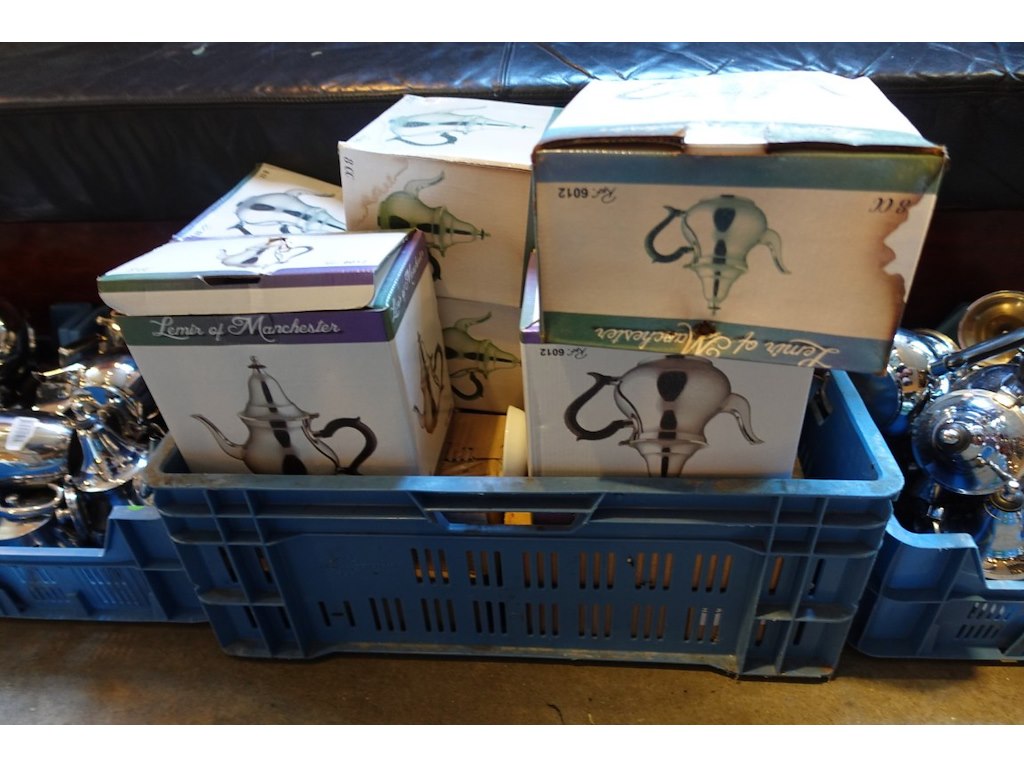 4x grijpbak + inhoud theekannen