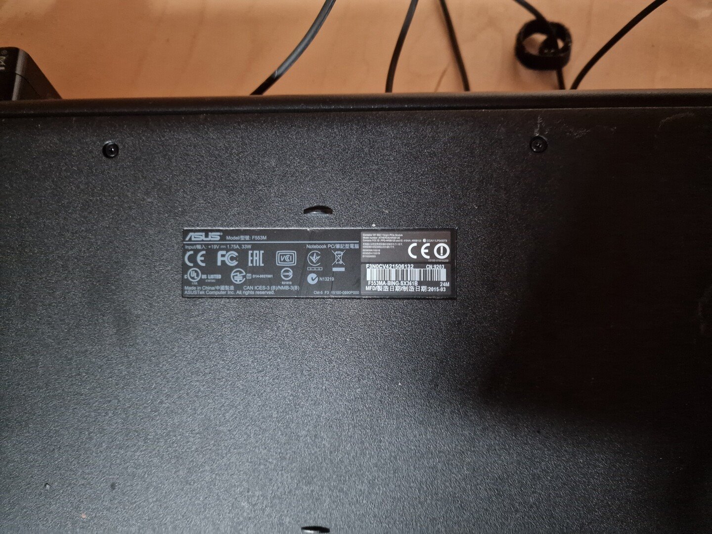 Laptop, merk ASUS,<br /> model : F553M<br /> met draadloze muis