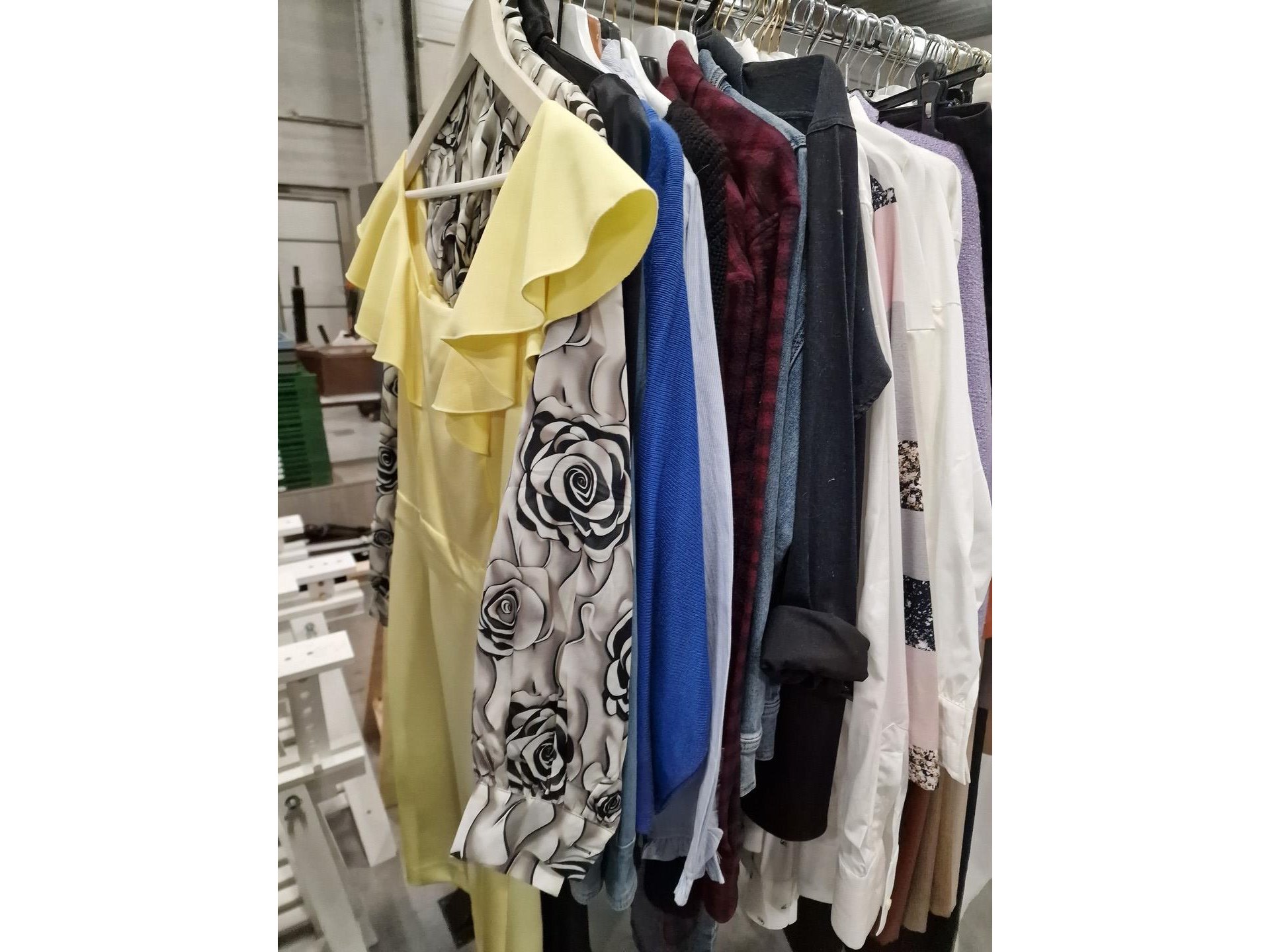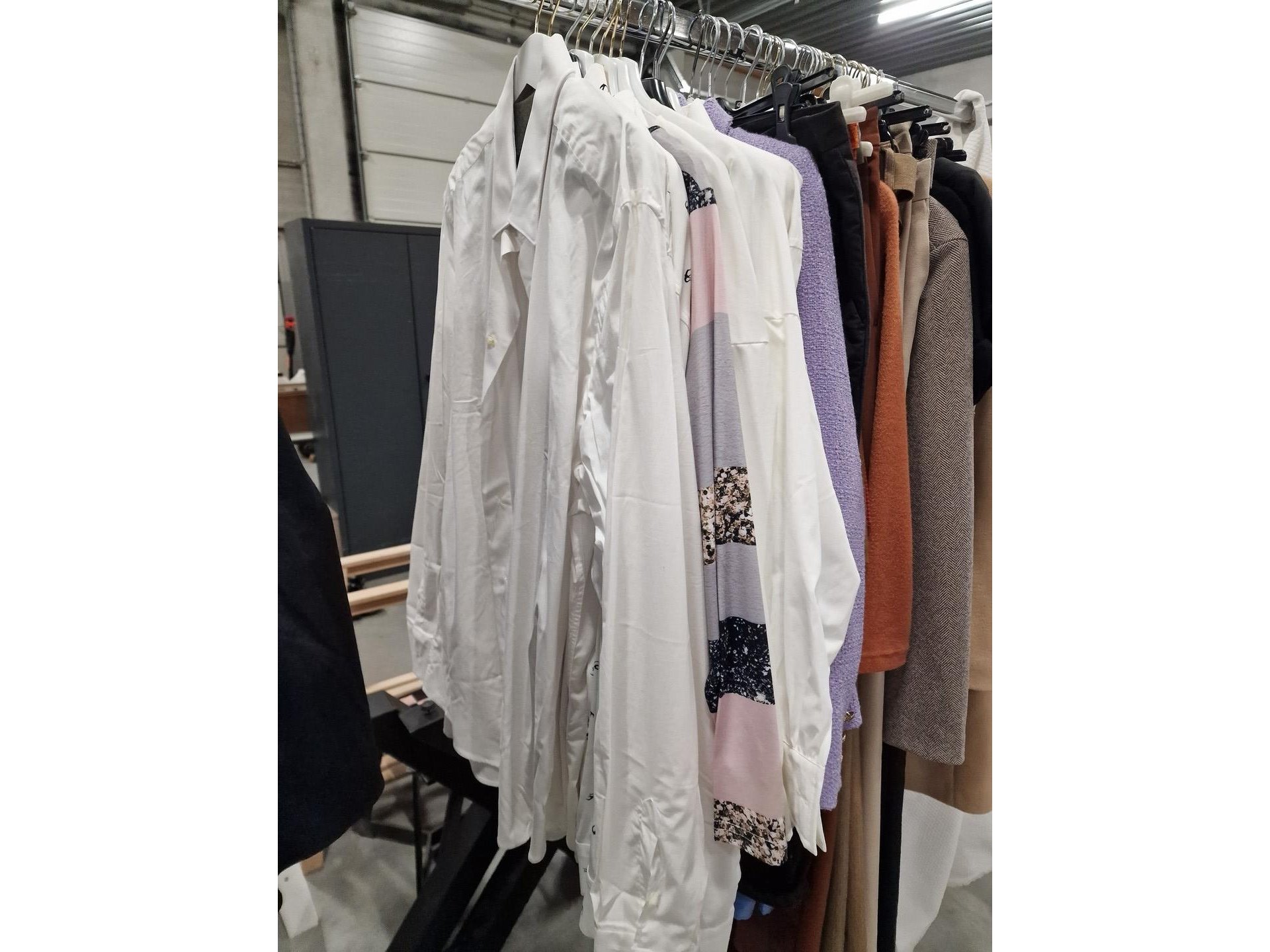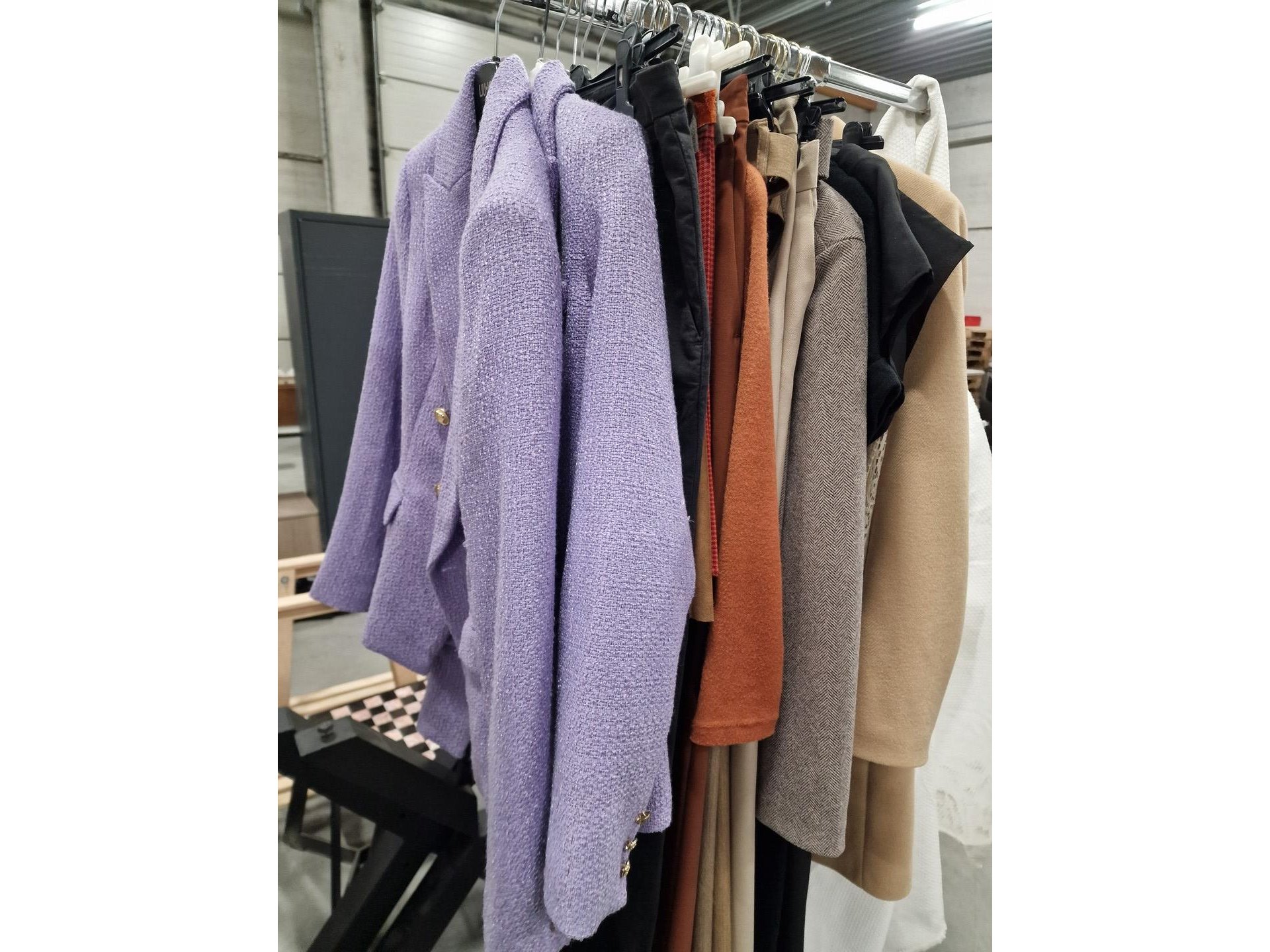 Dameskledij op hangers en rek