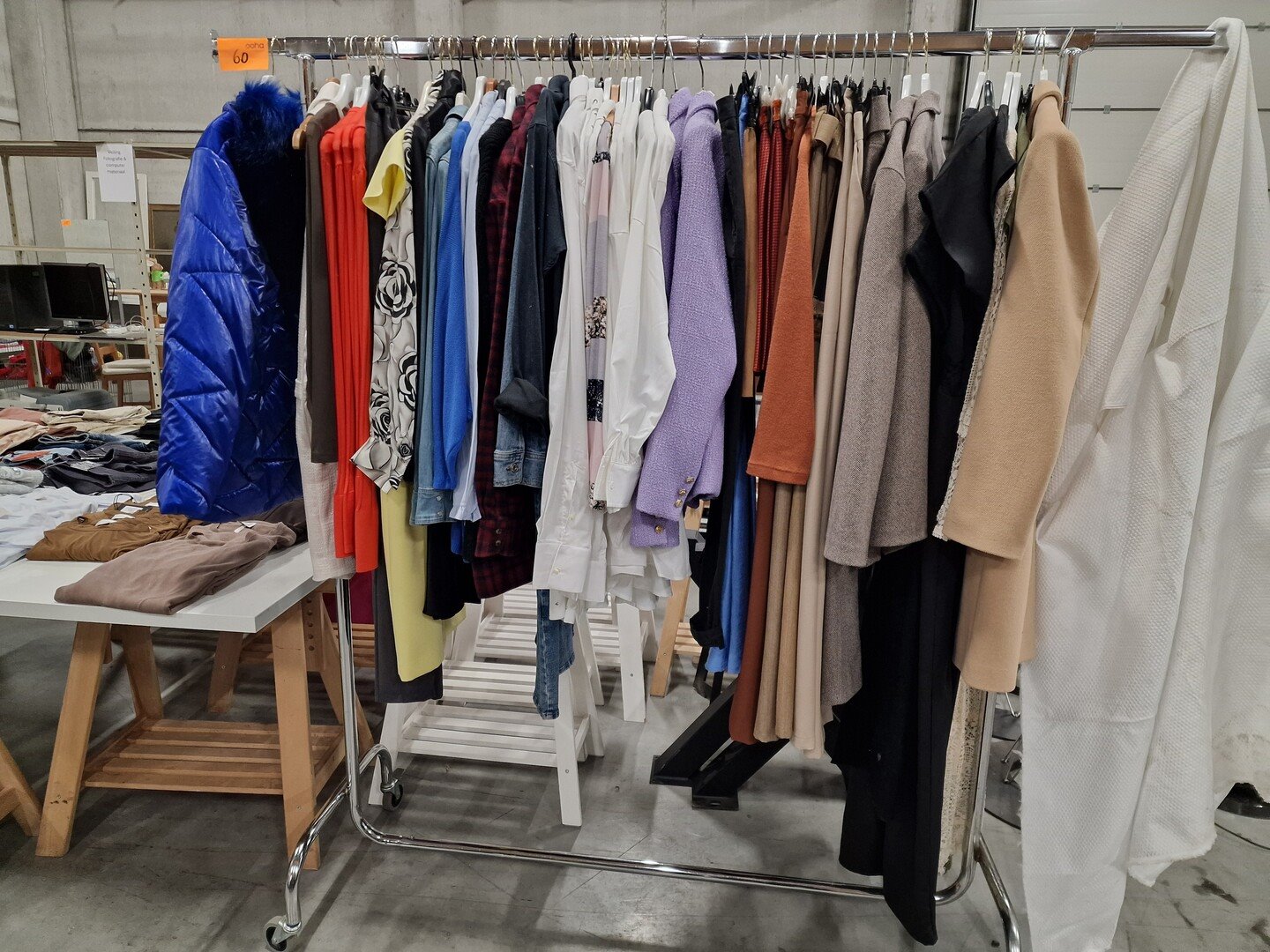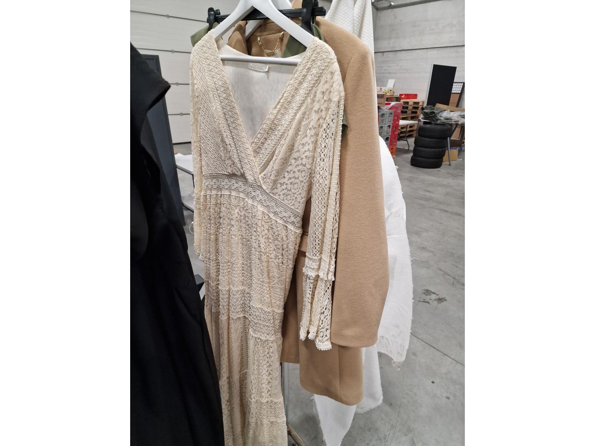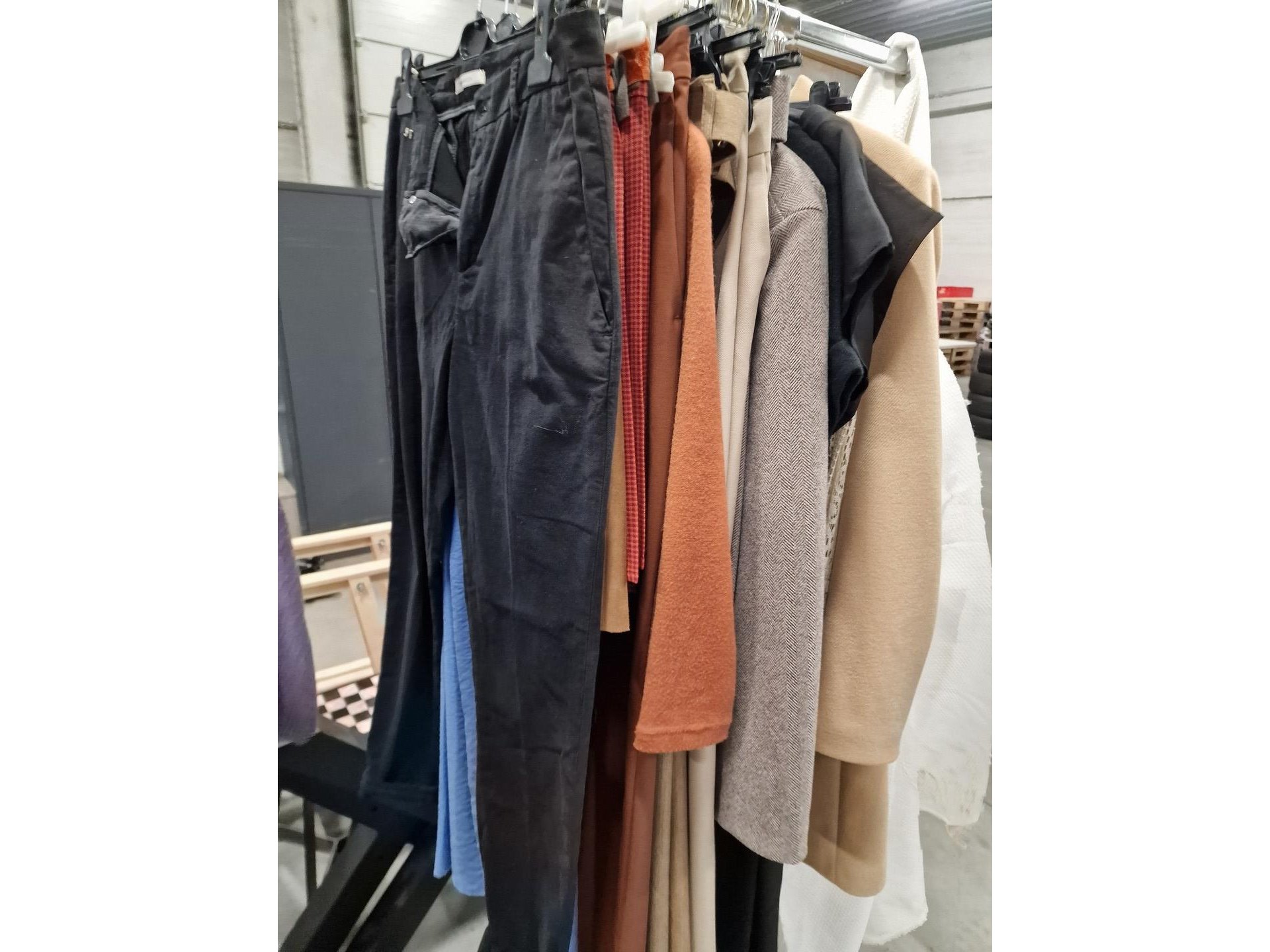 Dameskledij op hangers en rek