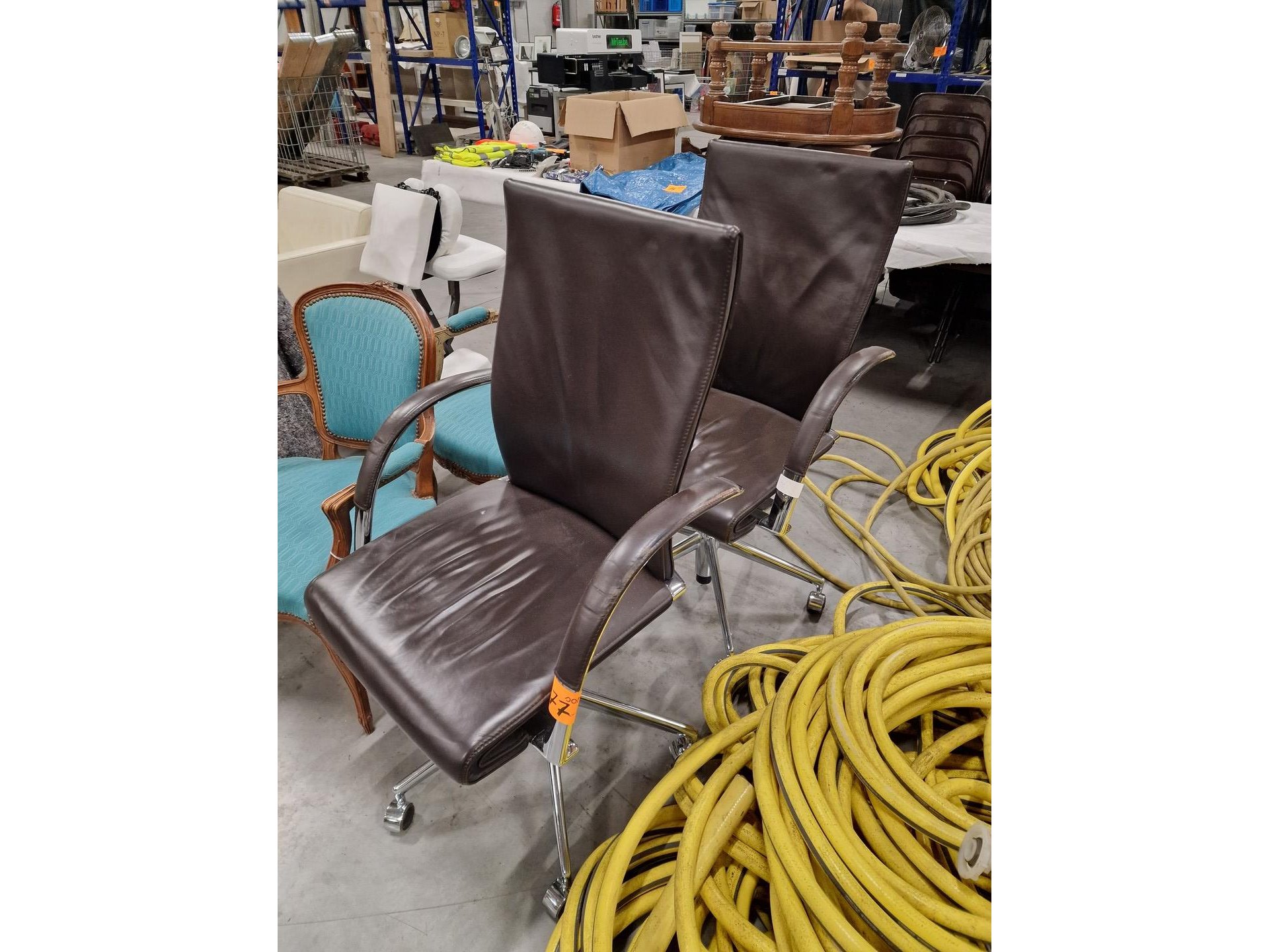 Stervormige voet, draaibaar, met armsteunen, bruin leder, merk AHREND