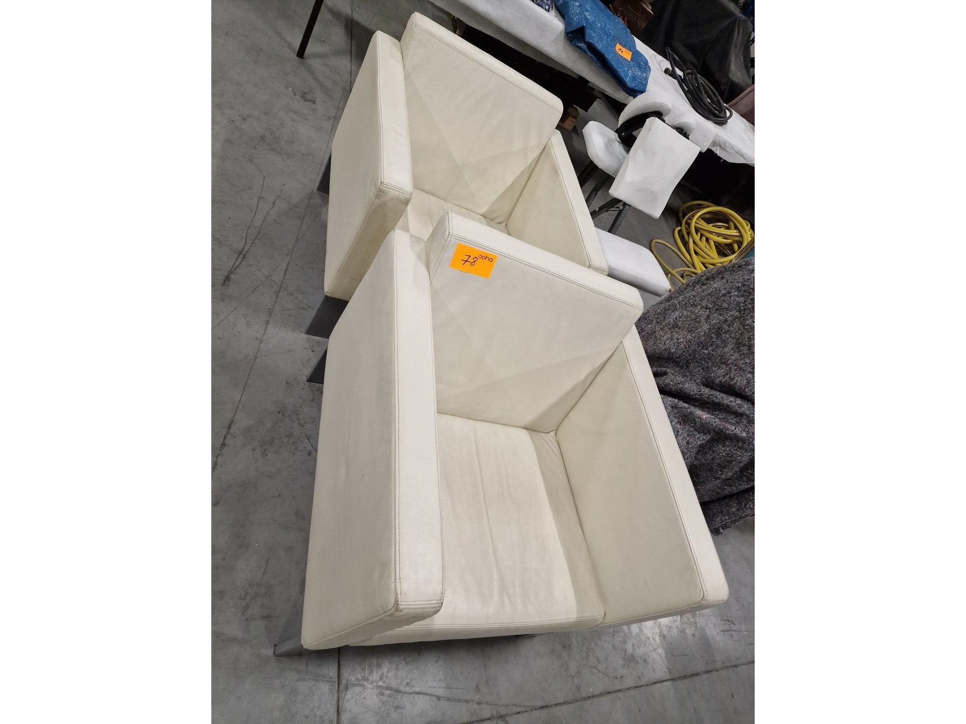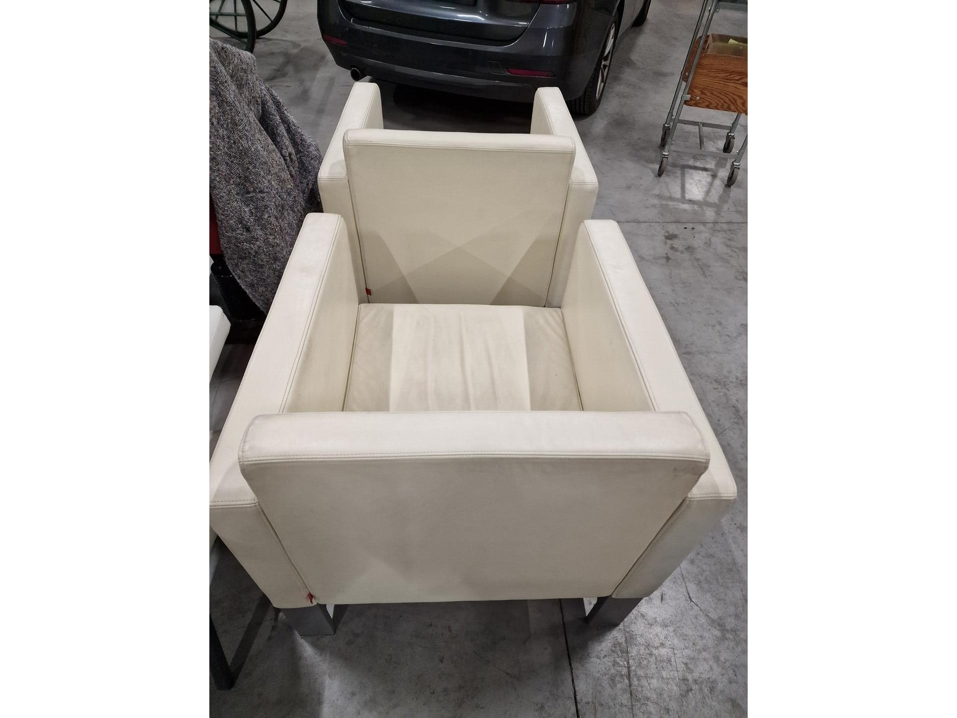 2 moderne fauteuils, witbeige leder drisag