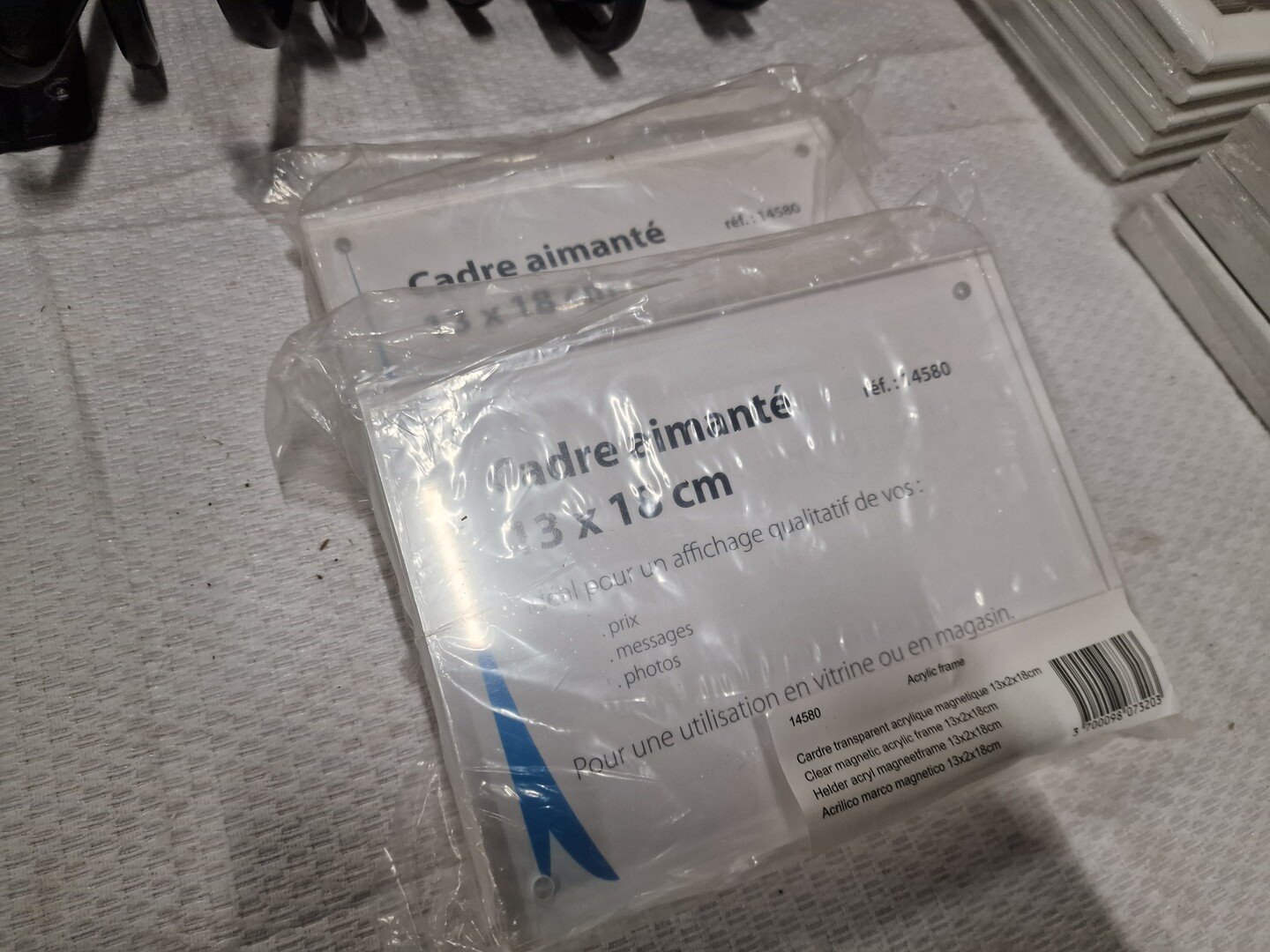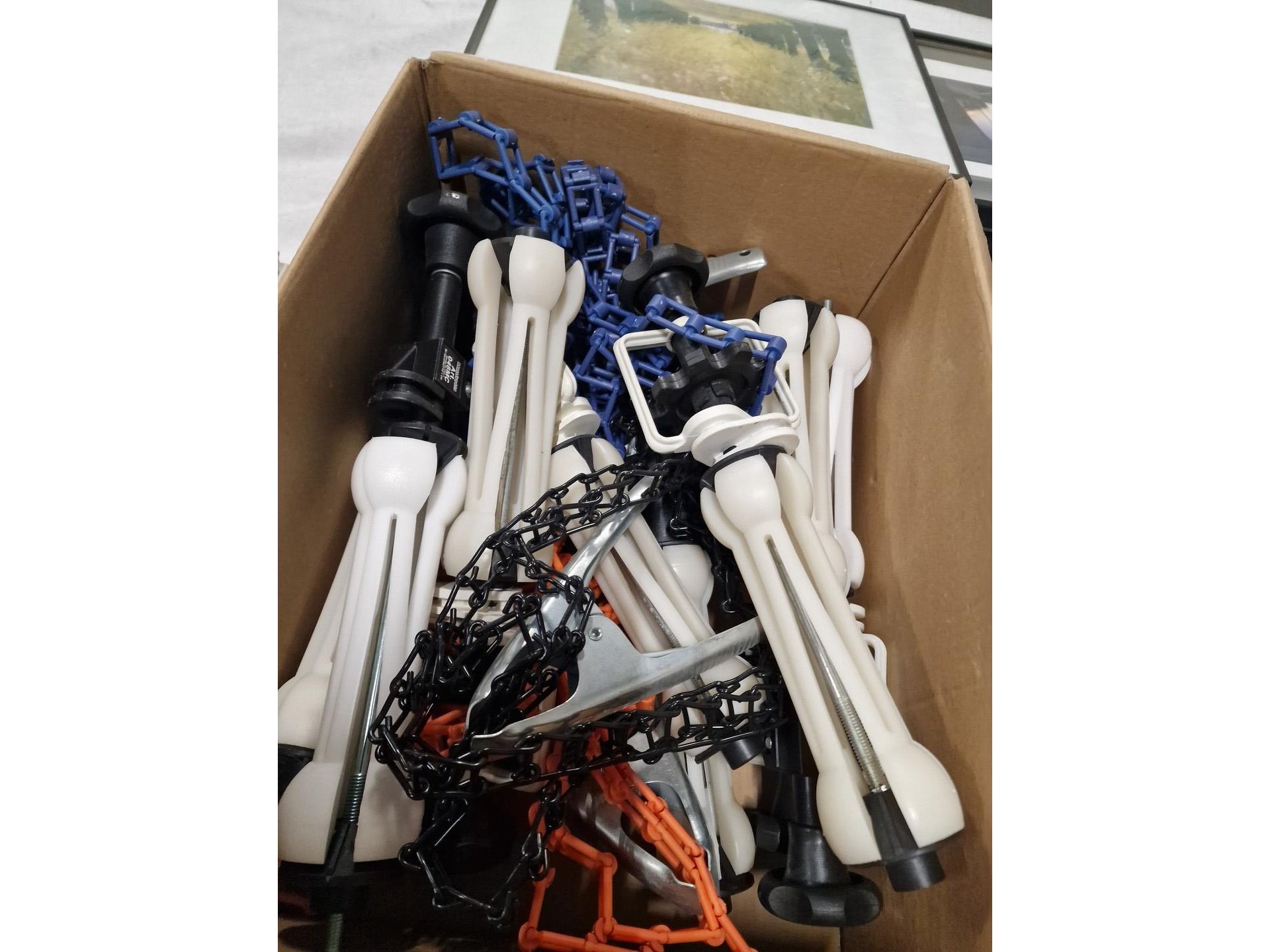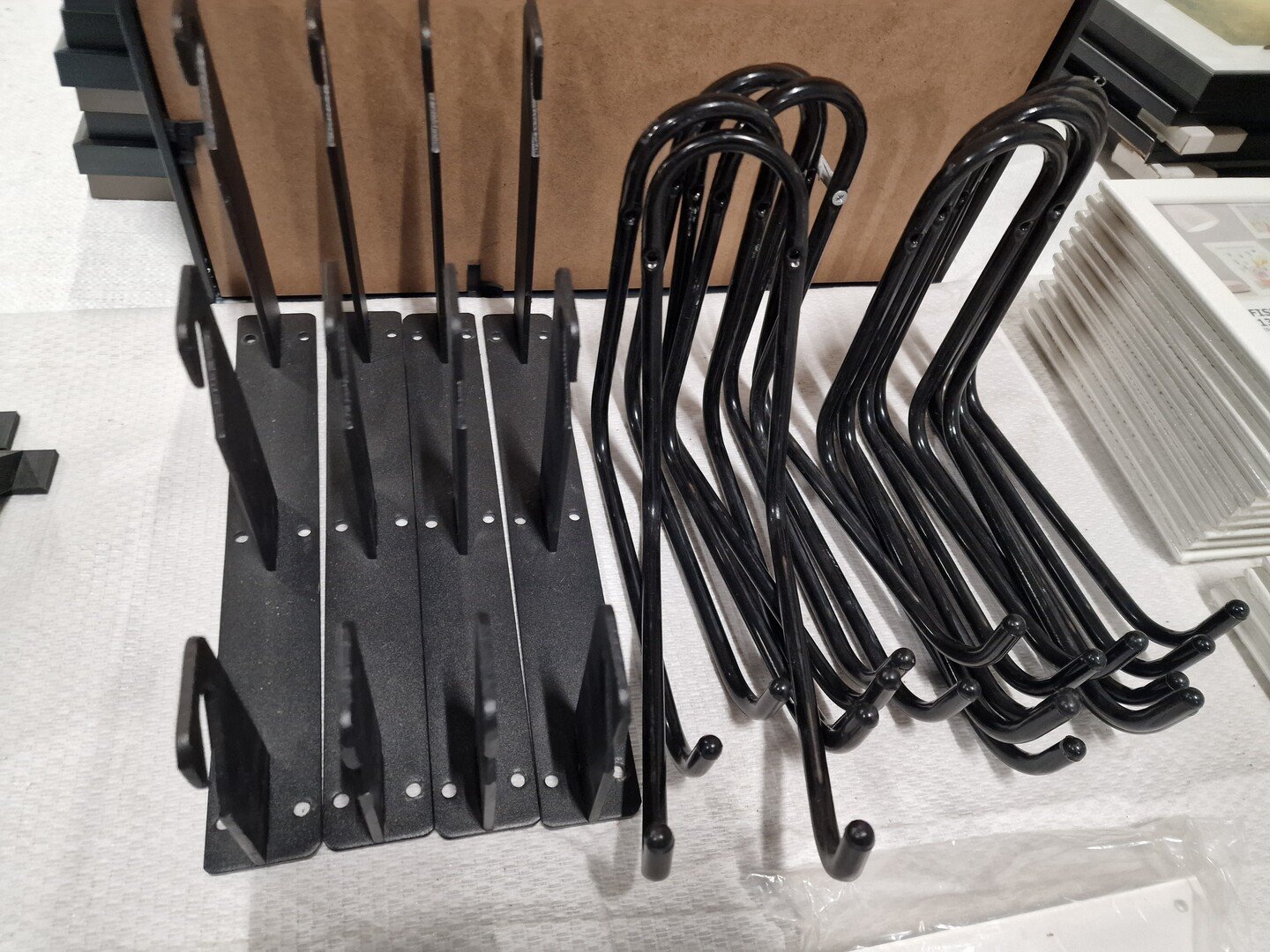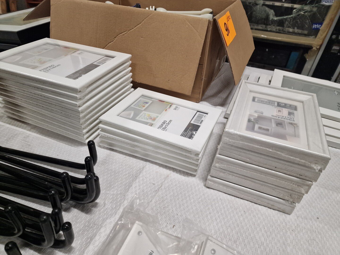 Partij fotokaders, diverse modellen, o.a. DEKNUDT en Ikea + metalen steunen + doekspanners