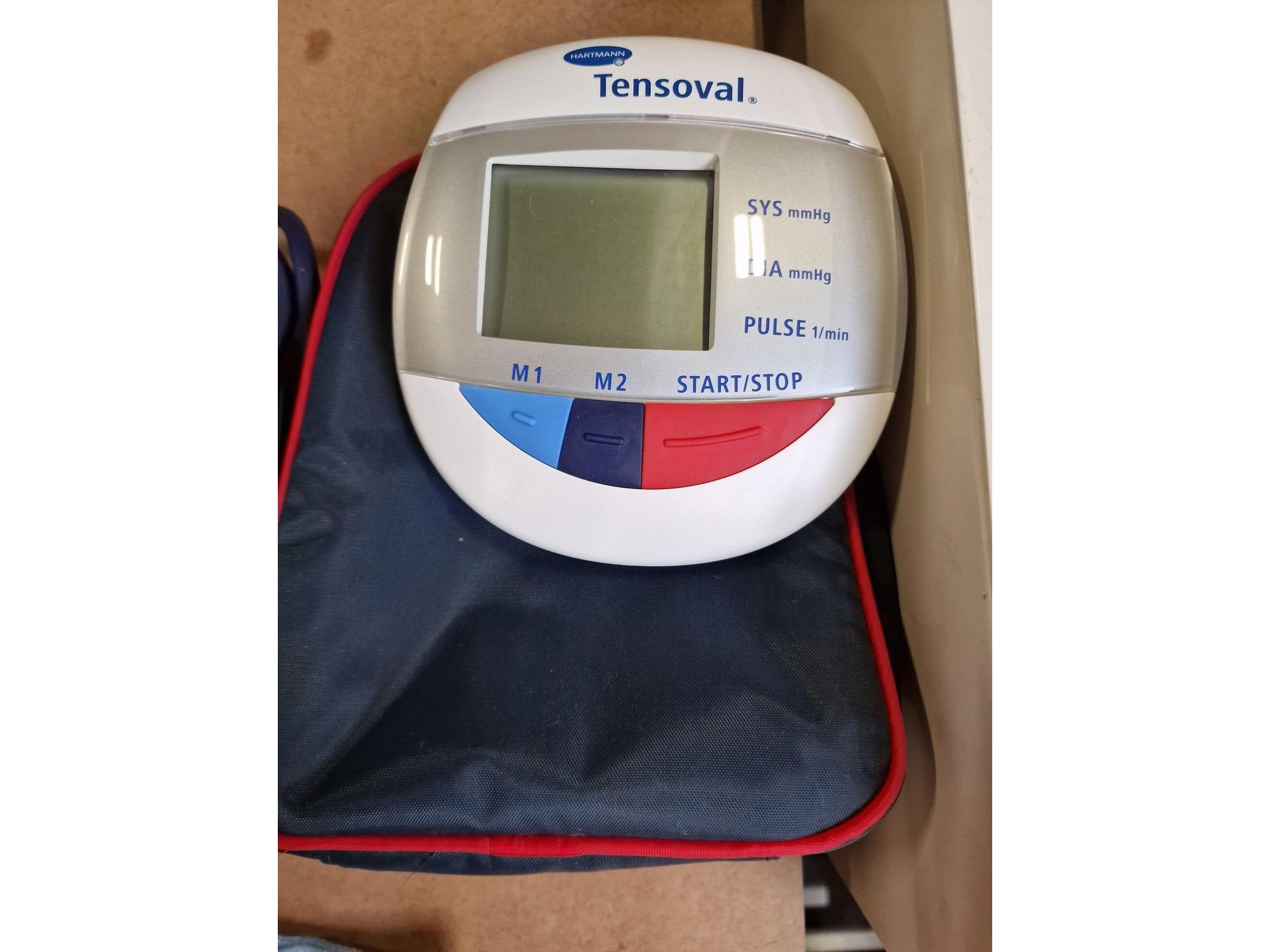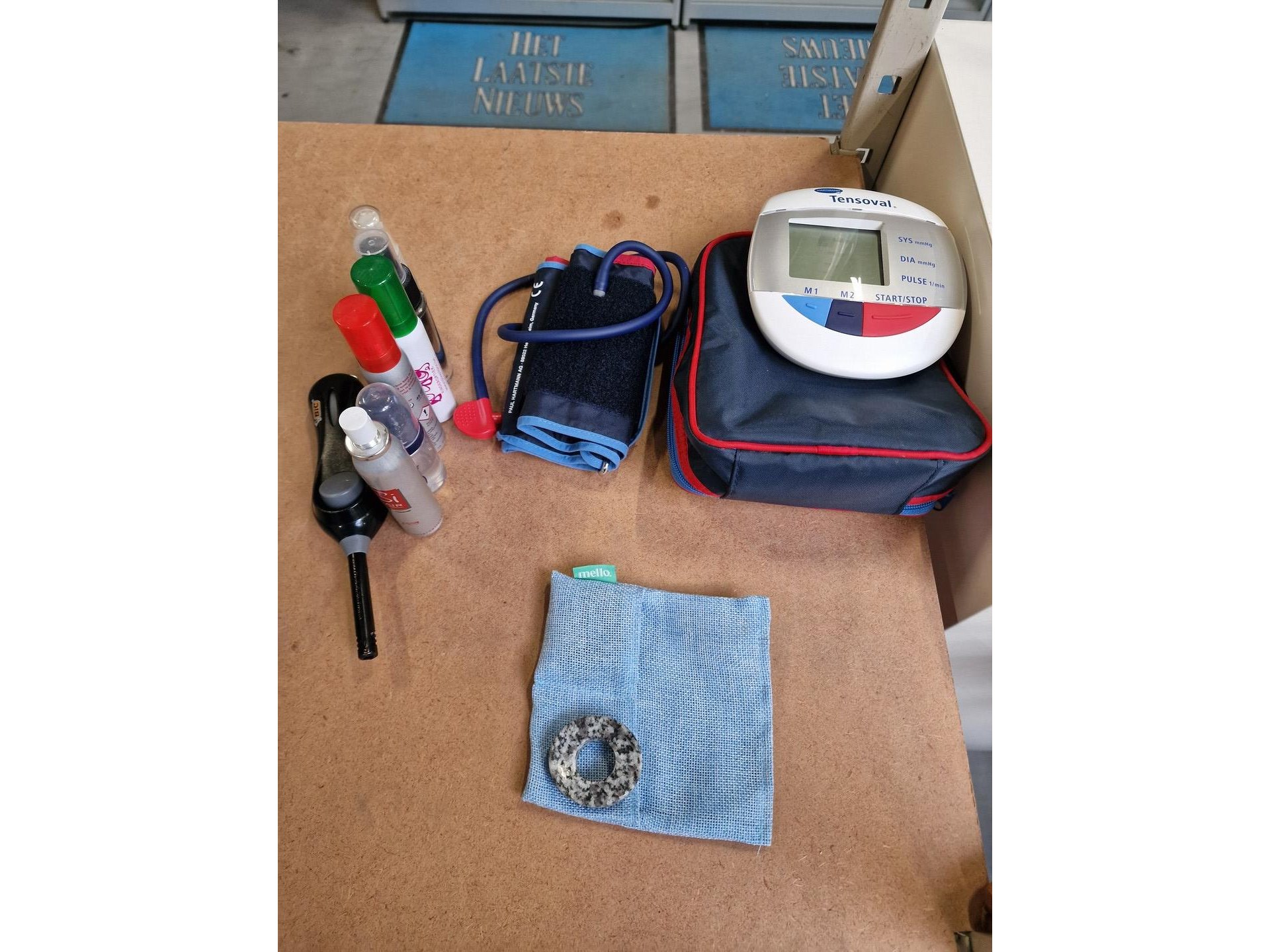 Bloeddrukmeter, merk TENSOVAL, in etui <br /> + sprays brillenkuis<br /> + div.