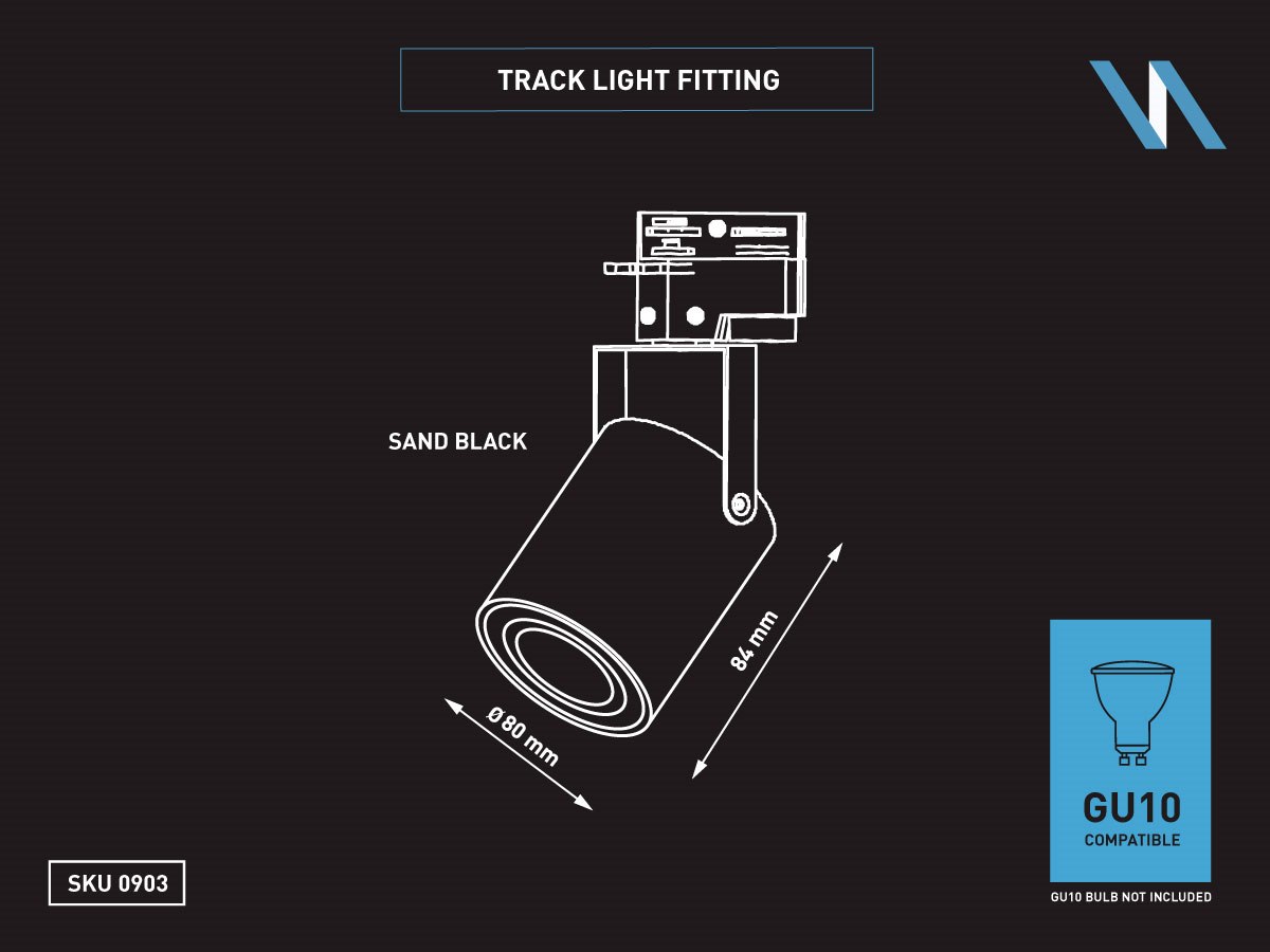 - geschikt voor 1 fase 2 draad rail - afdichting IP20 - product kleur zand zwart - afm. Ø 80 x 84mm - draaibaar 360° en kantelbaar 210° - materiaal aluminum en PC - bevestiging inclusief - fitting GU10 - inclusief aluminium anti verblinding honingraat filter 50mm allen geschikt voor GU10 met lens - bulb en rail niet inbegrepen - geschikt voor binnen - een bulb invoer - voltage 220-240V - max 35 watt - SKU 00903 sku 1165