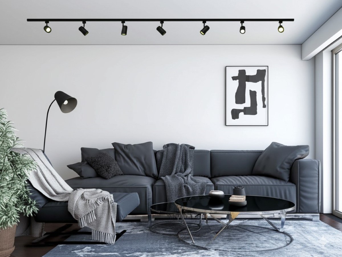 1 x 1 stuk 100cm en 1 stuk 200cm rail - materiaal aluminium - bevestiging inclusief - 220-240V - afdichting IP20 - 1 stuk door verbinder en 1 stuk L verbinding inclusief - product kleur zand zwart - 9 stuk railspots GU10 armatuur afm. Ø 55 x 102mm draaibaar 350° en kantelbaar 90° materiaal aluminum kop en kunstof basis - bulb niet inbegrepen - de rail kan eenvoudig op de gewenste lengte worden gezaagd - geschikt voor binnen - SKU 825 SKU 827 SKU 905 SKU 907 SKU 1121