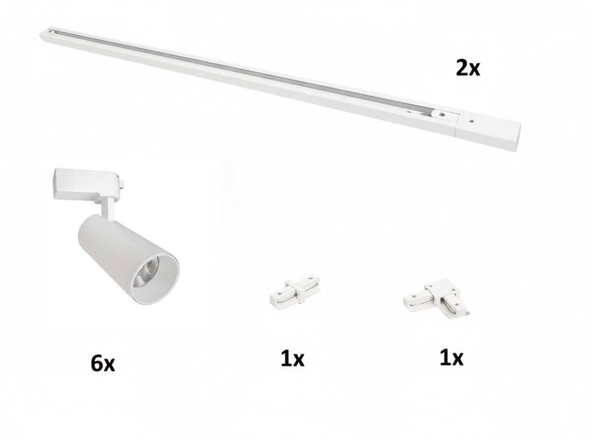 2 x 6 stuks 18 watt 4000K 1800 lumen LED Railspot cilinder zand zwart afm. Ø 63 x 145mm - draaibaar 350° en kantelbaar 90° materiaal aluminum kop en PC basis - draaibaar 350° en kantelbaar 90° materiaal aluminum kop en PC basis - 2 stuks 100cm rail materiaal aluminium - Afdichting IP20 - levensduur 30.000 uren - 1 stuk door verbinder en 1 stuk L verbinding inclusief - geschikt voor binnen - voltage 220-240V - SKU 1127 SKU 906 SKU 826 SKU 828