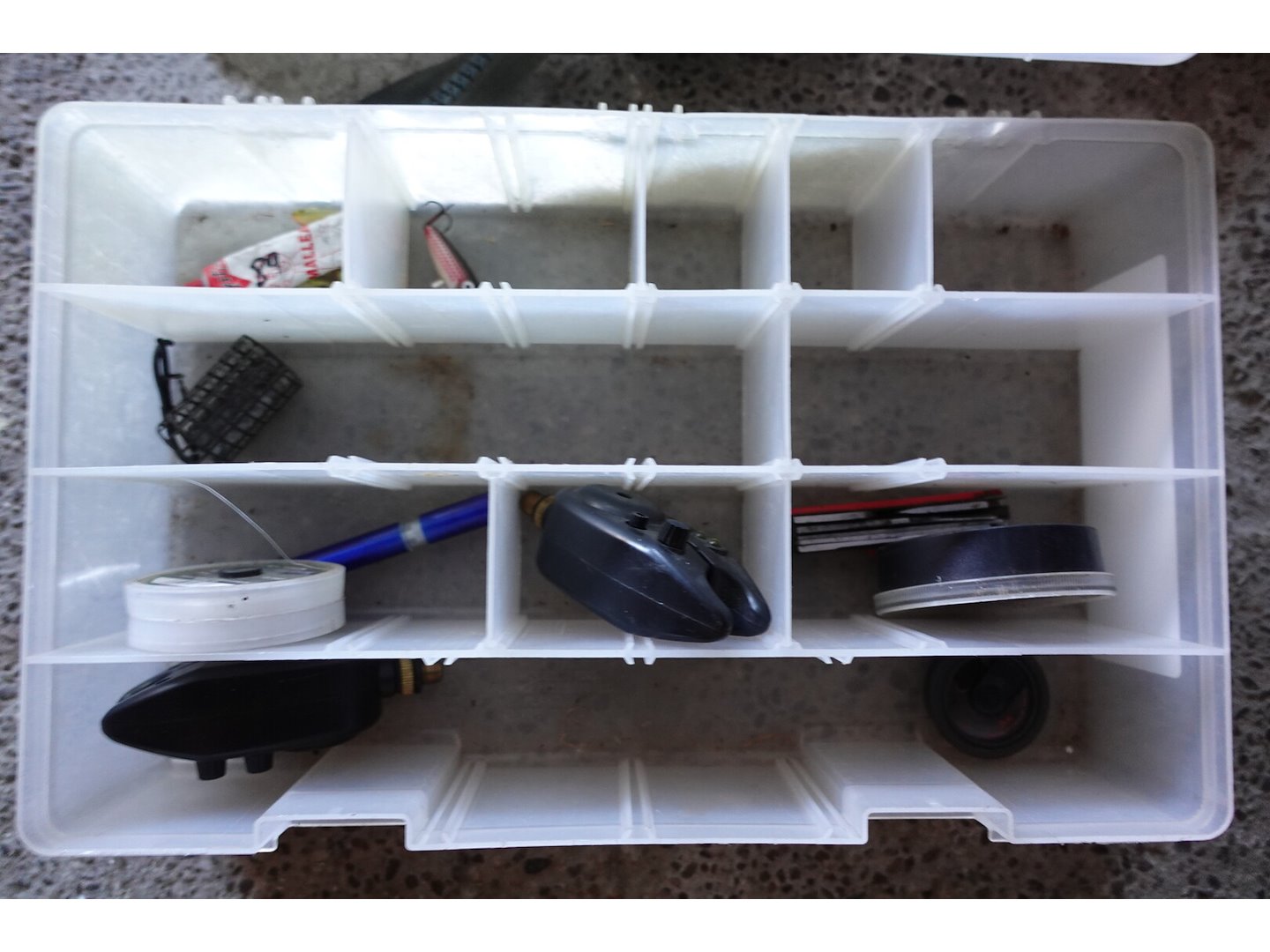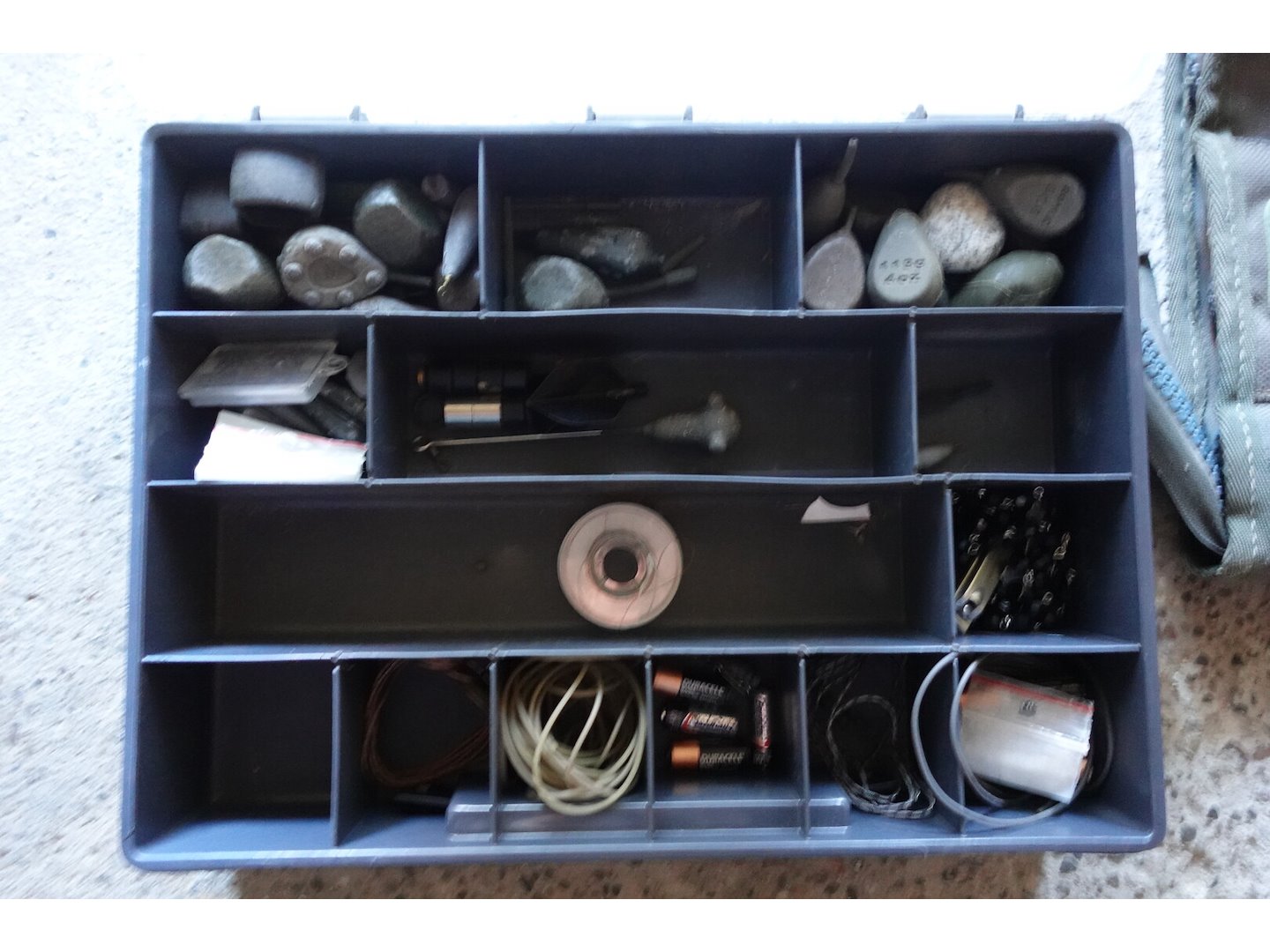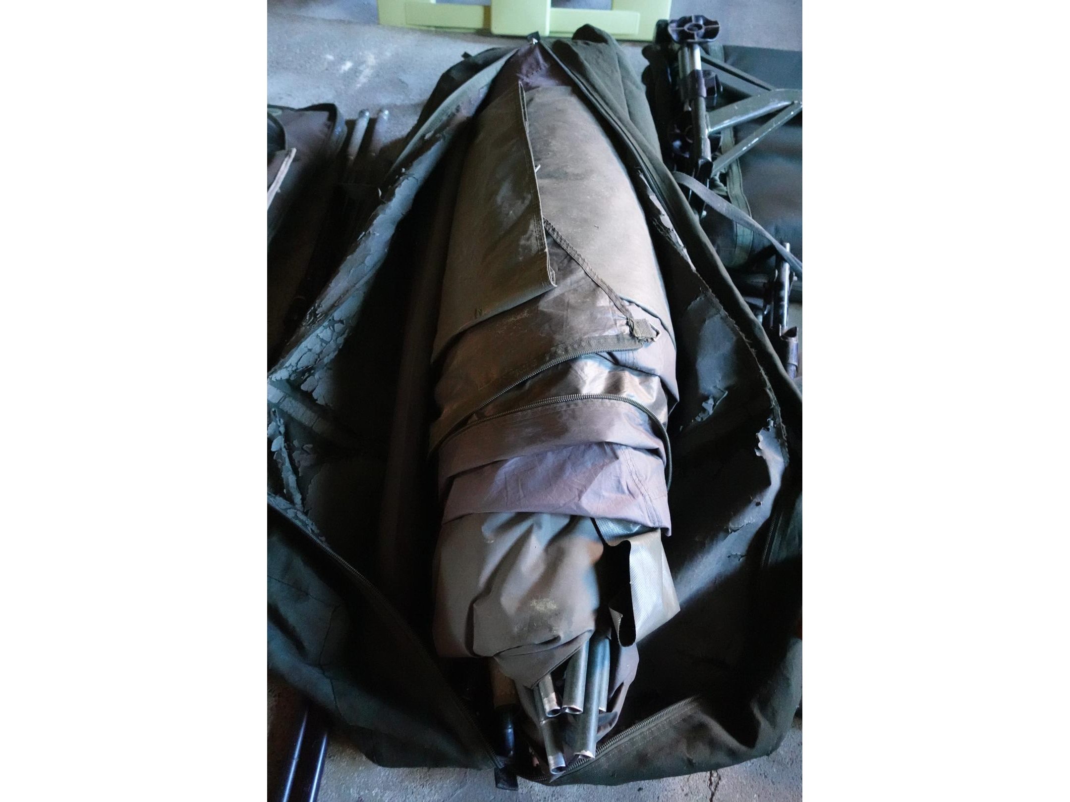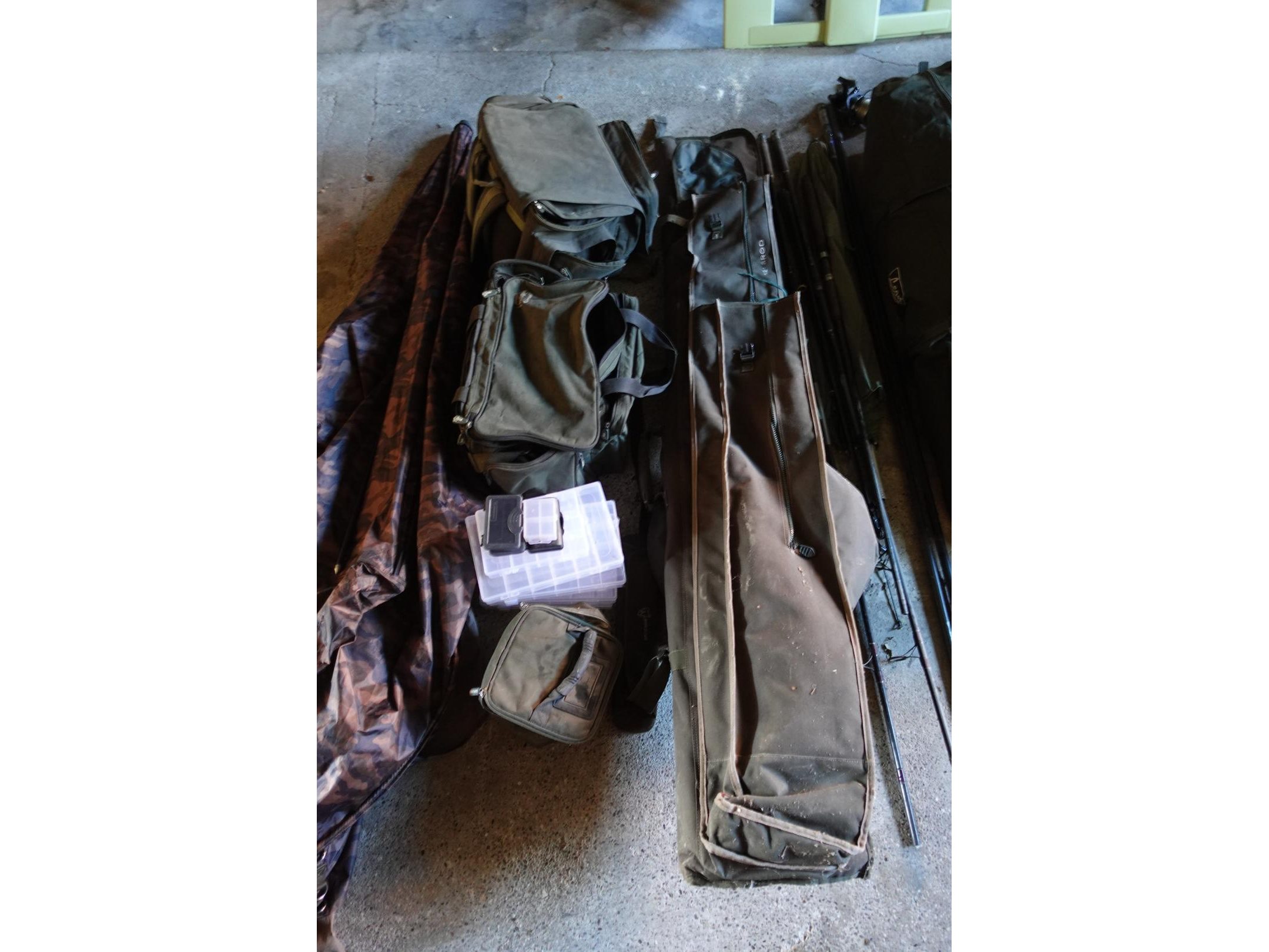 Oa. ligbed, stoel, tent, molens, beetmelders met ontvanger, hengels al dan niet compleet, diversen, ...