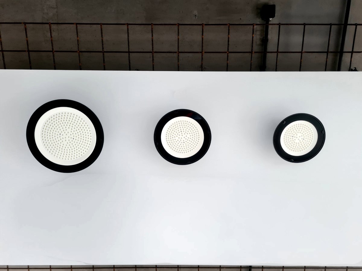10 x 100 watt LED UFO Highbay SLIM Design Waterdicht 6500K - lichtstroom 9500 lumen SMD LED - lichtkleur daglicht 6500K - waterdicht IP65 - Lineaire IC driver inbegrepen - flicker free - stralingshoek 90° - product kleur zand zwart - diam Ø 275 x 29mm - materiaal aluminum en glas - bevestigingsset niet inclusief - levensduur 30000 uren - voltage 200-240V - het kan in watt en lumen 5% verschil tonen - sku 1025