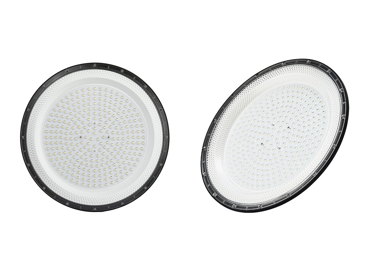 12 x 150 watt LED UFO Highbay SLIM Design Waterdicht 3000K - lichtstroom 15000 lumen SMD LED - met lens - lichtkleur warm wit 3000K - waterdicht IP65 - Lineaire IC driver inbegrepen - flicker free - stralingshoek 90° - product kleur zand zwart - diam Ø 299 x 30mm - materiaal aluminum en PC lens - bevestigingsset niet inclusief - levensduur 25000 uren - voltage 200-240V - het kan in watt en lumen 5% verschil tonen - sku 1018