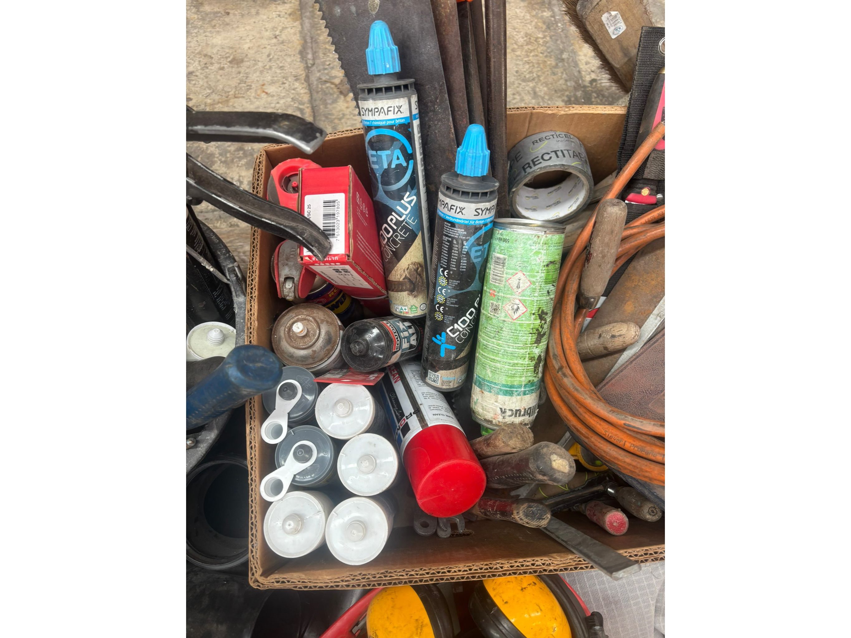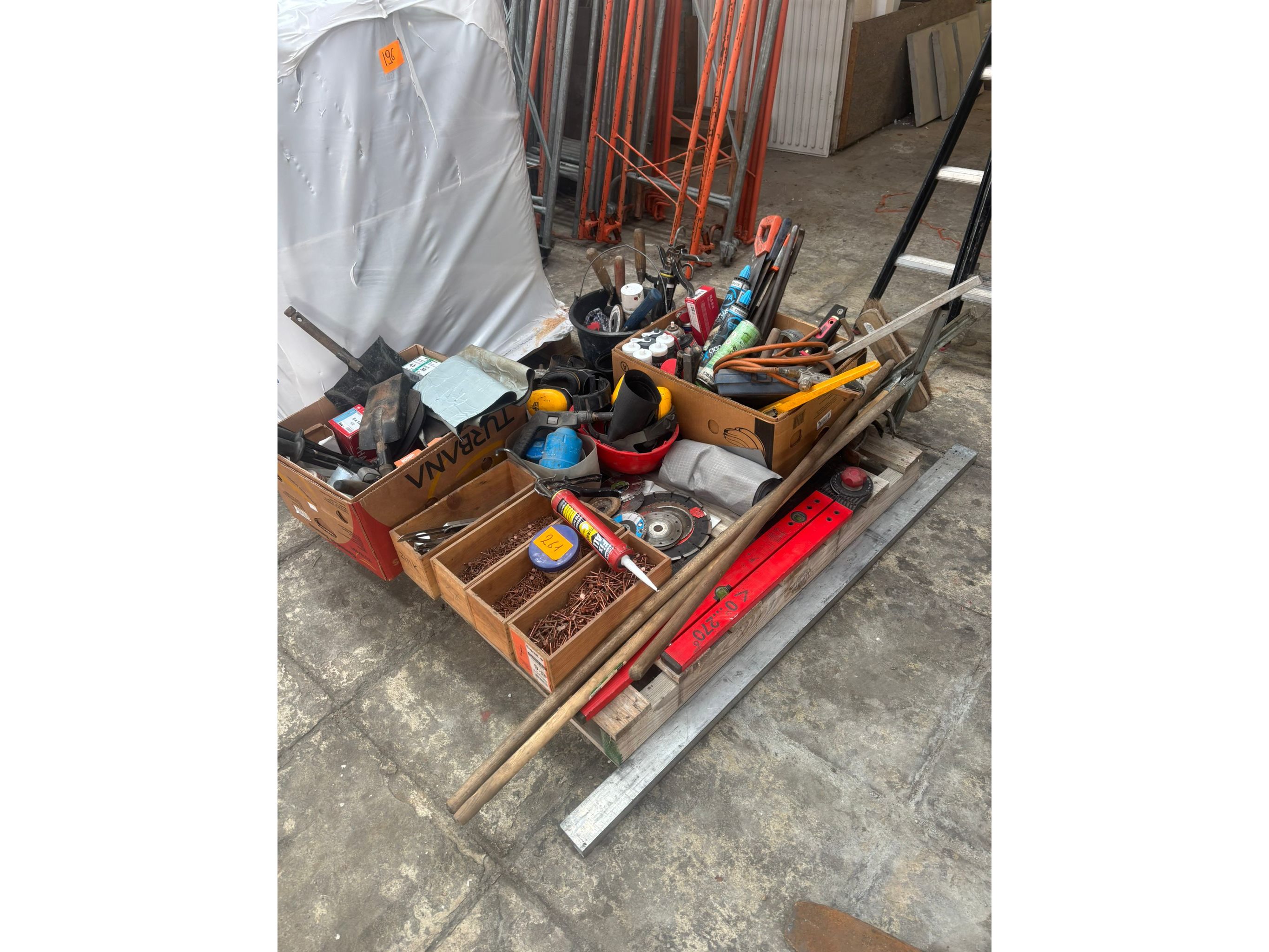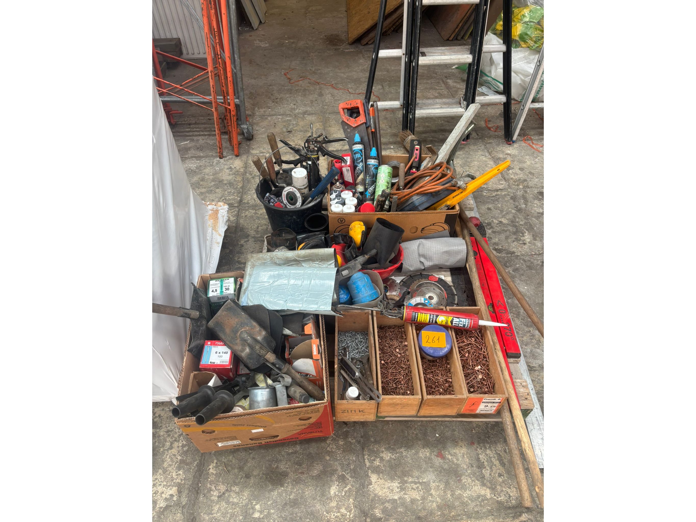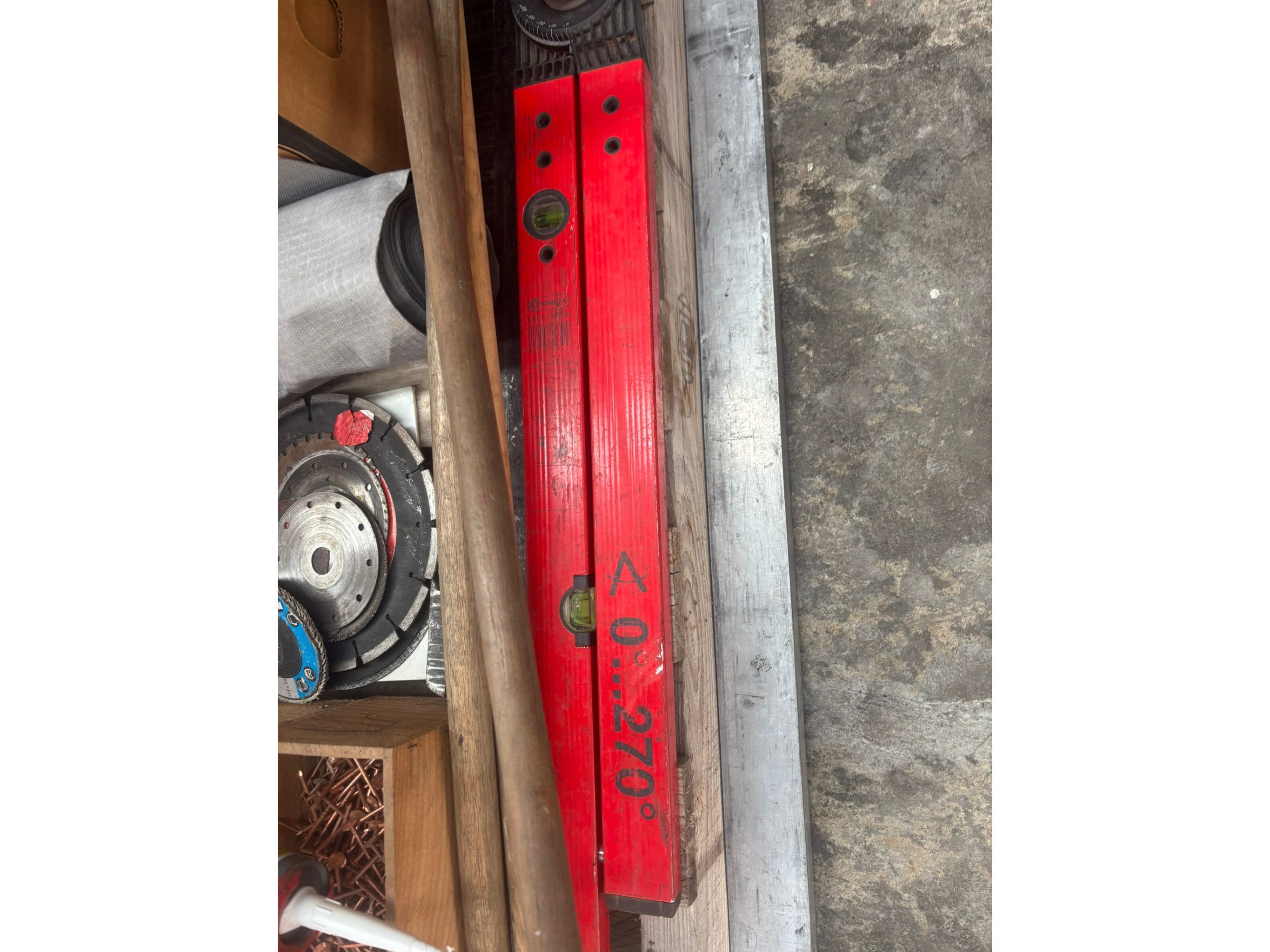 Oa: koperen nagels, kitpistool, zagen, waterpas, schijven<br /> Koptelefoons, truweel, hamers…..