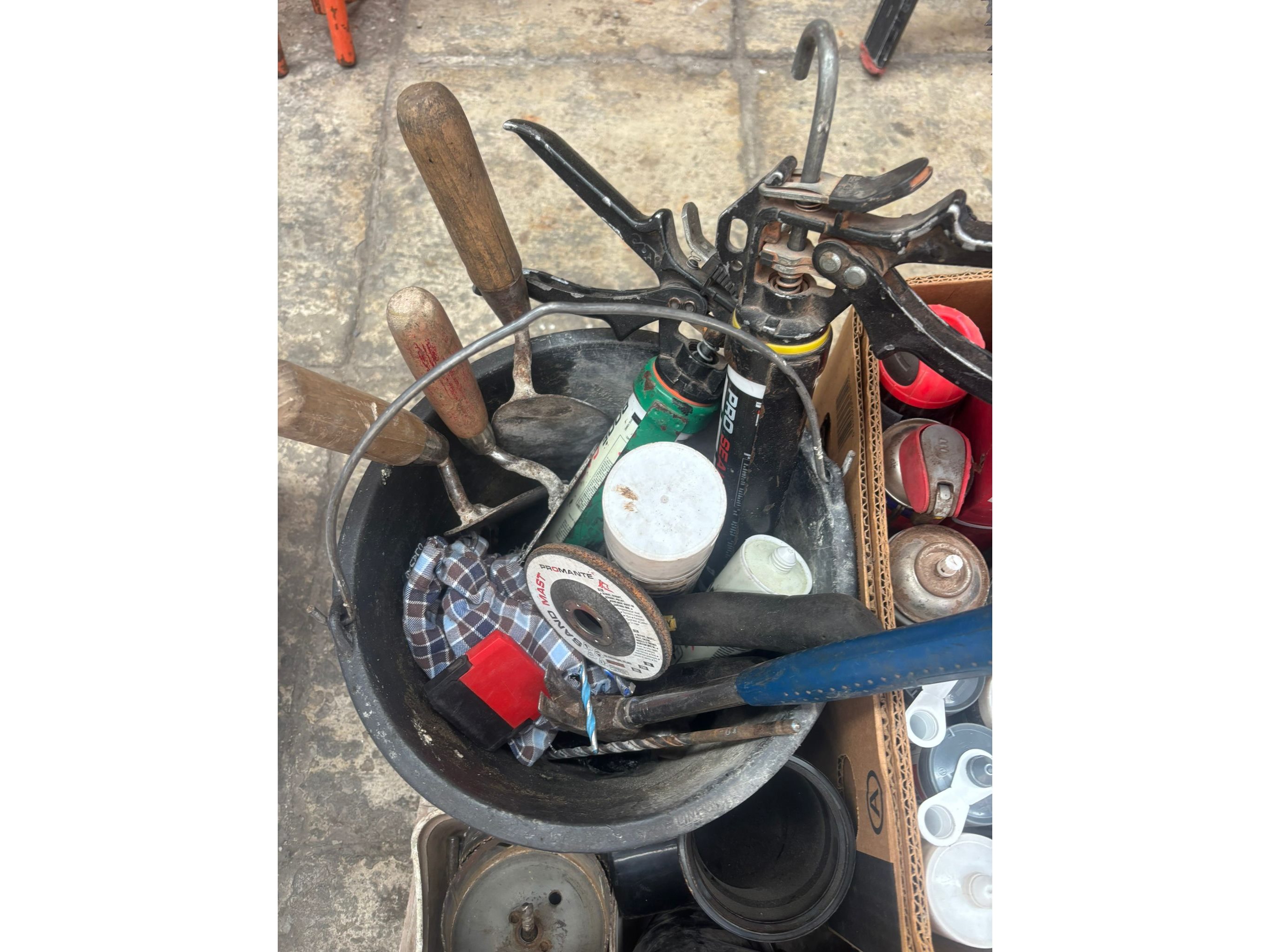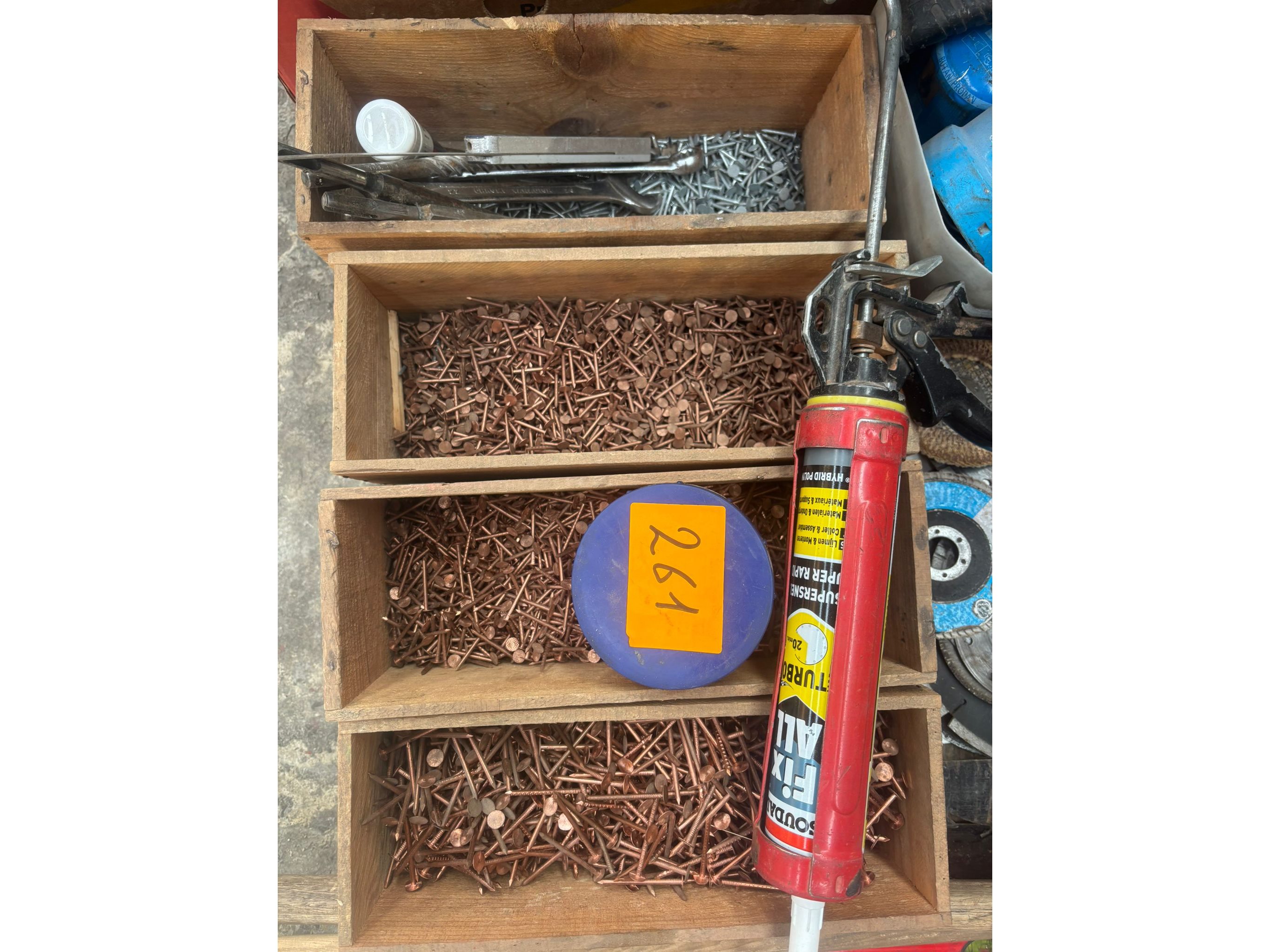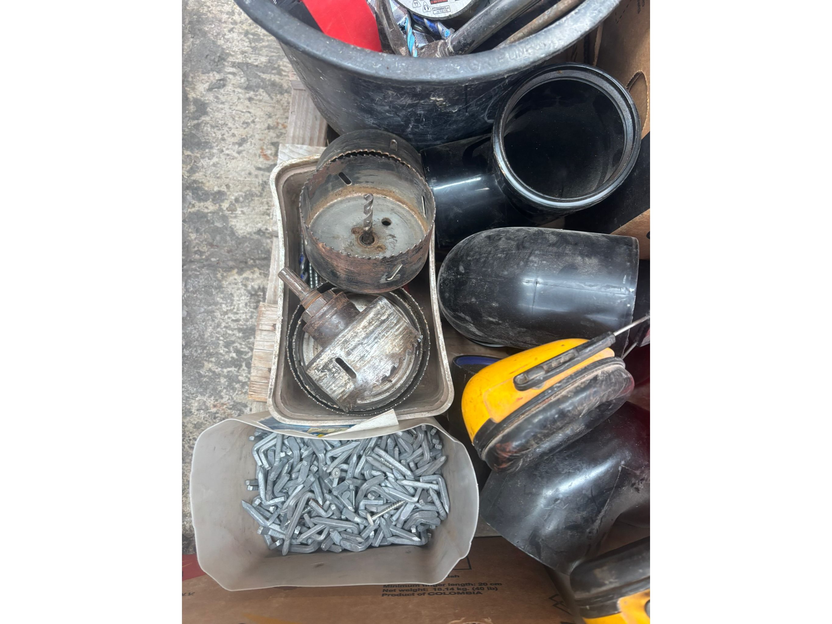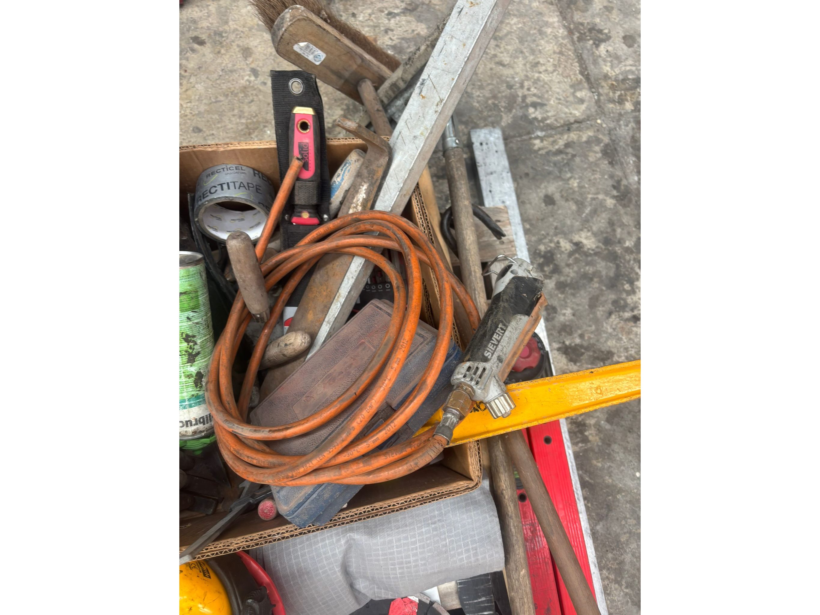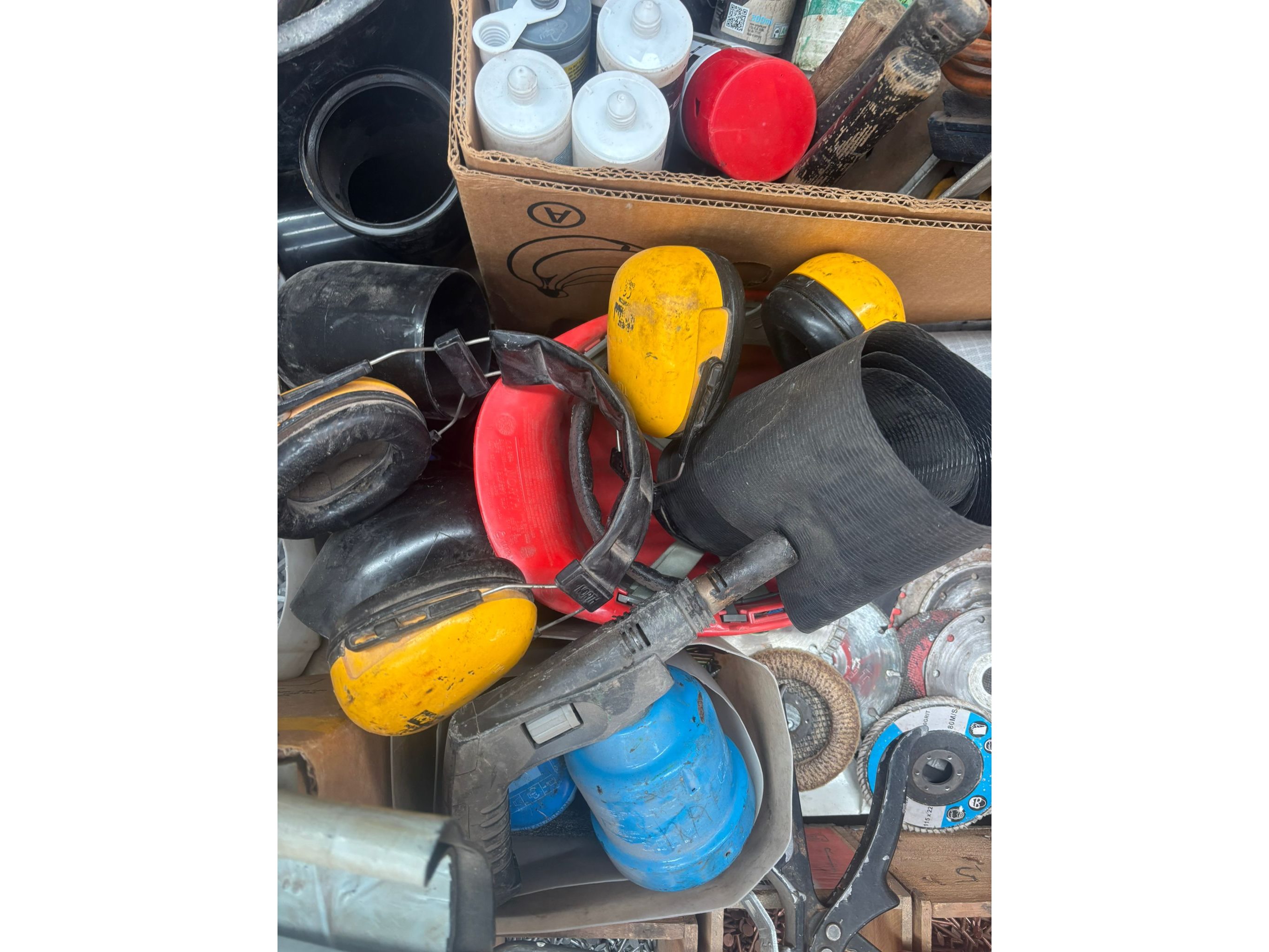 Oa: koperen nagels, kitpistool, zagen, waterpas, schijven<br /> Koptelefoons, truweel, hamers…..
