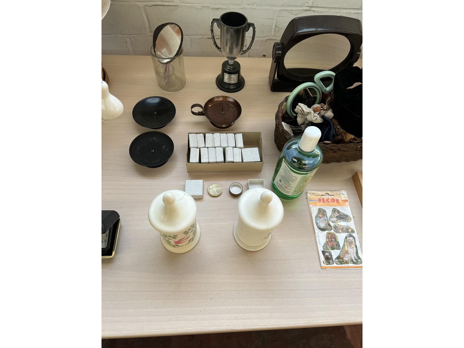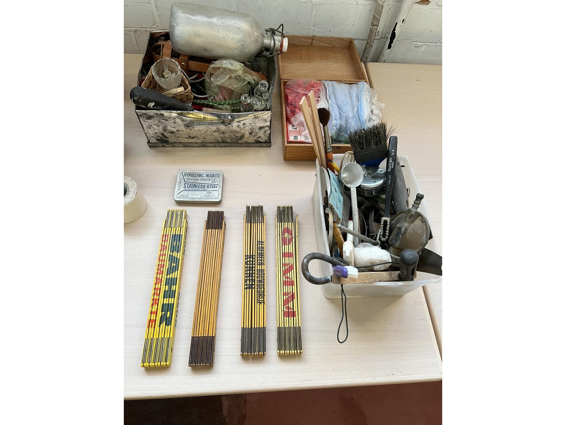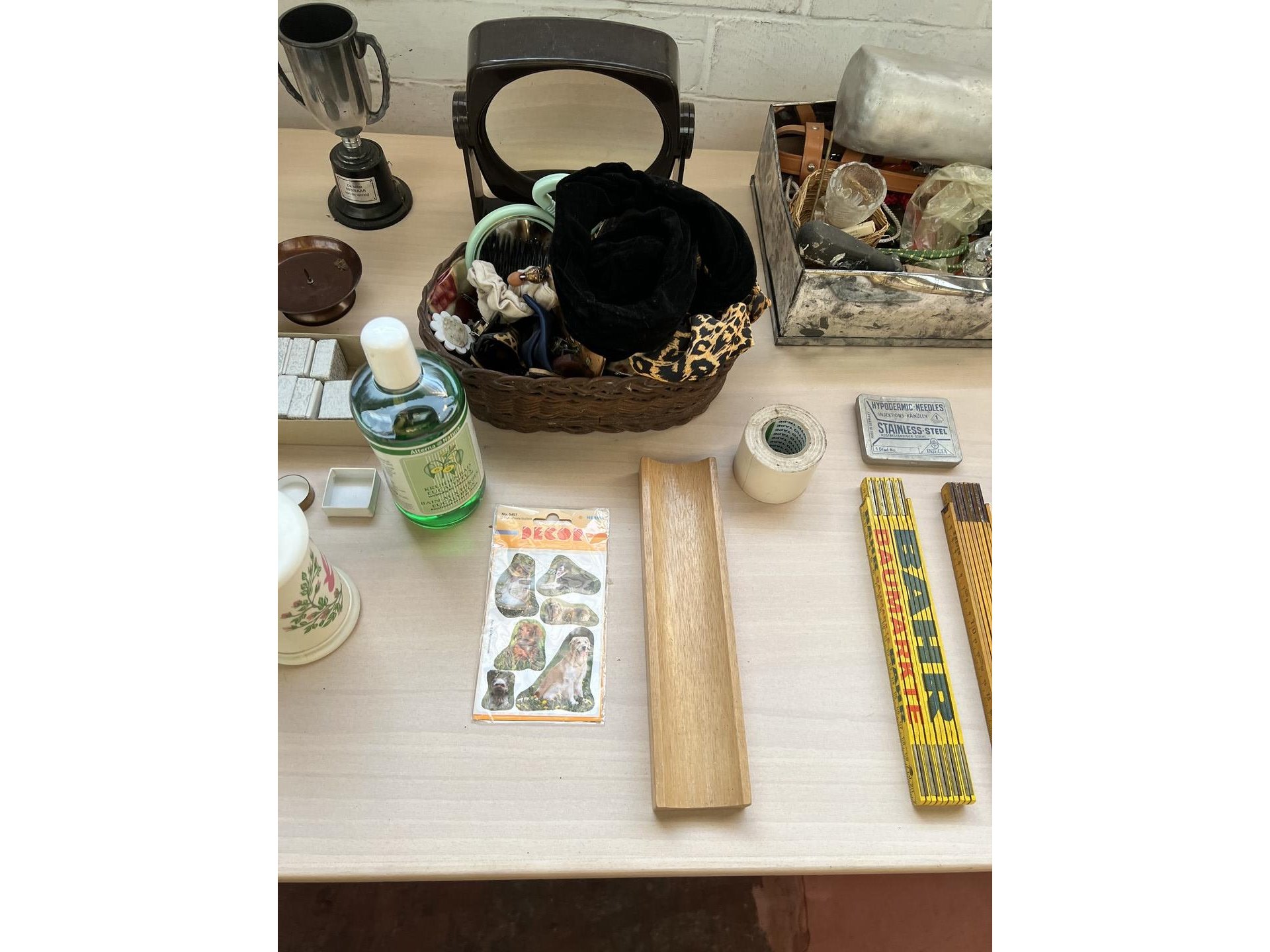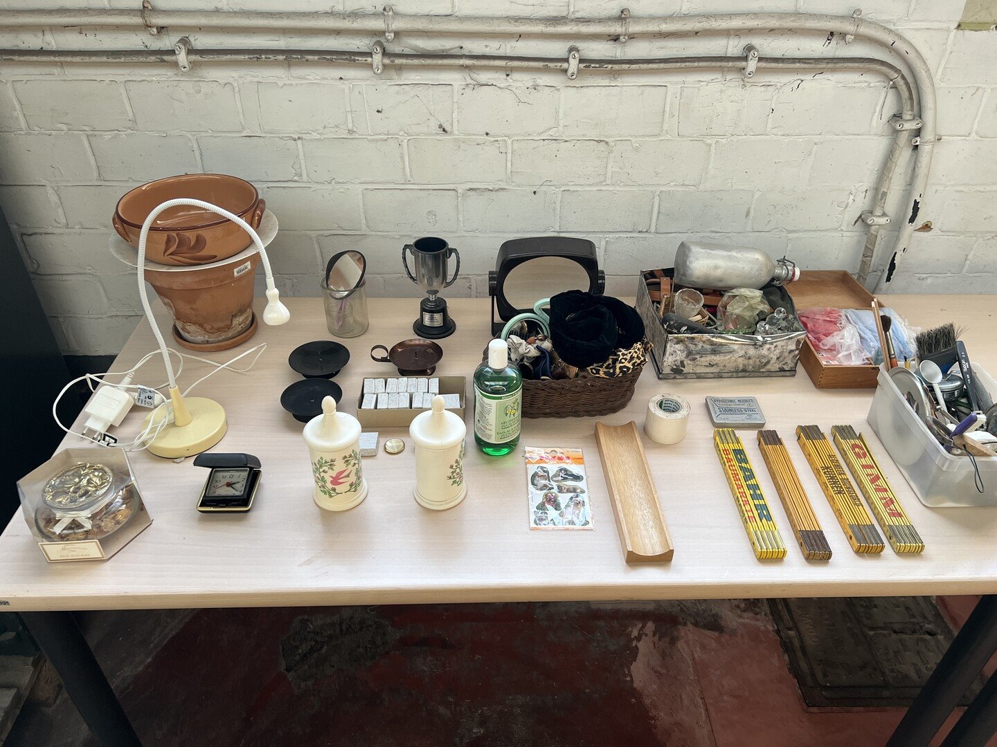 Partij diverse w.o. bureaulamp en vouwmeters