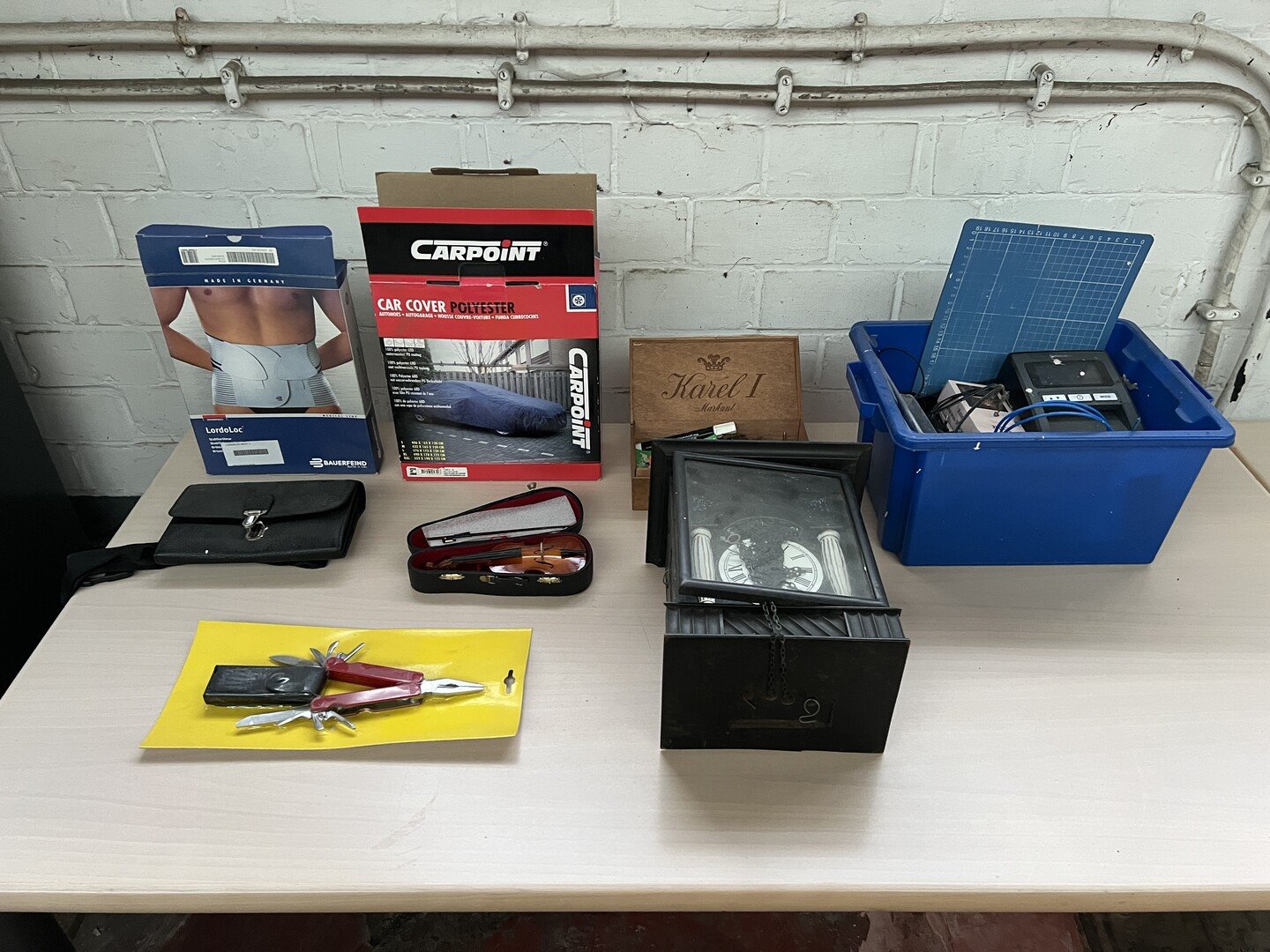 Partij diverse w.o. wandklok en universeel mes
