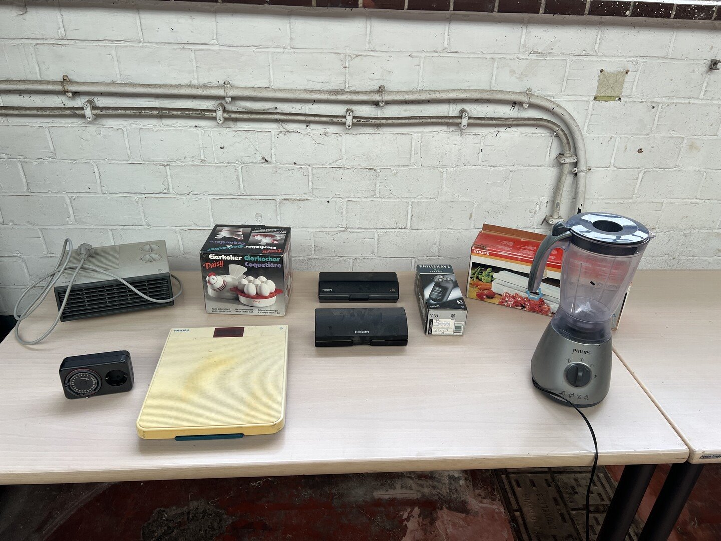 Partij toestellen w.o. weegschaal en scheermachine's