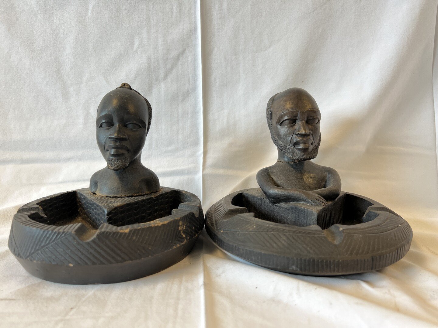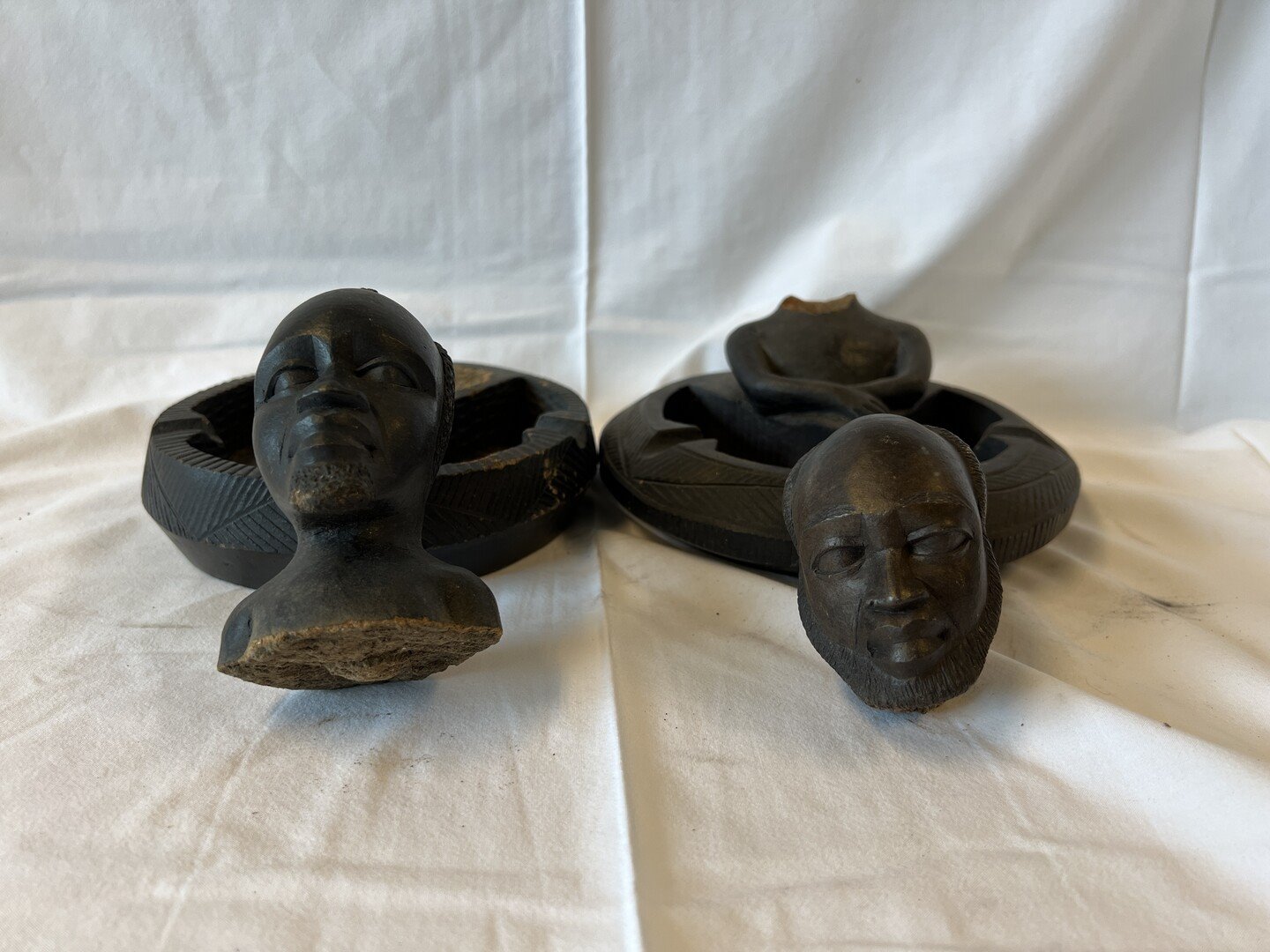 2 asbakjes met gebroken hoofden