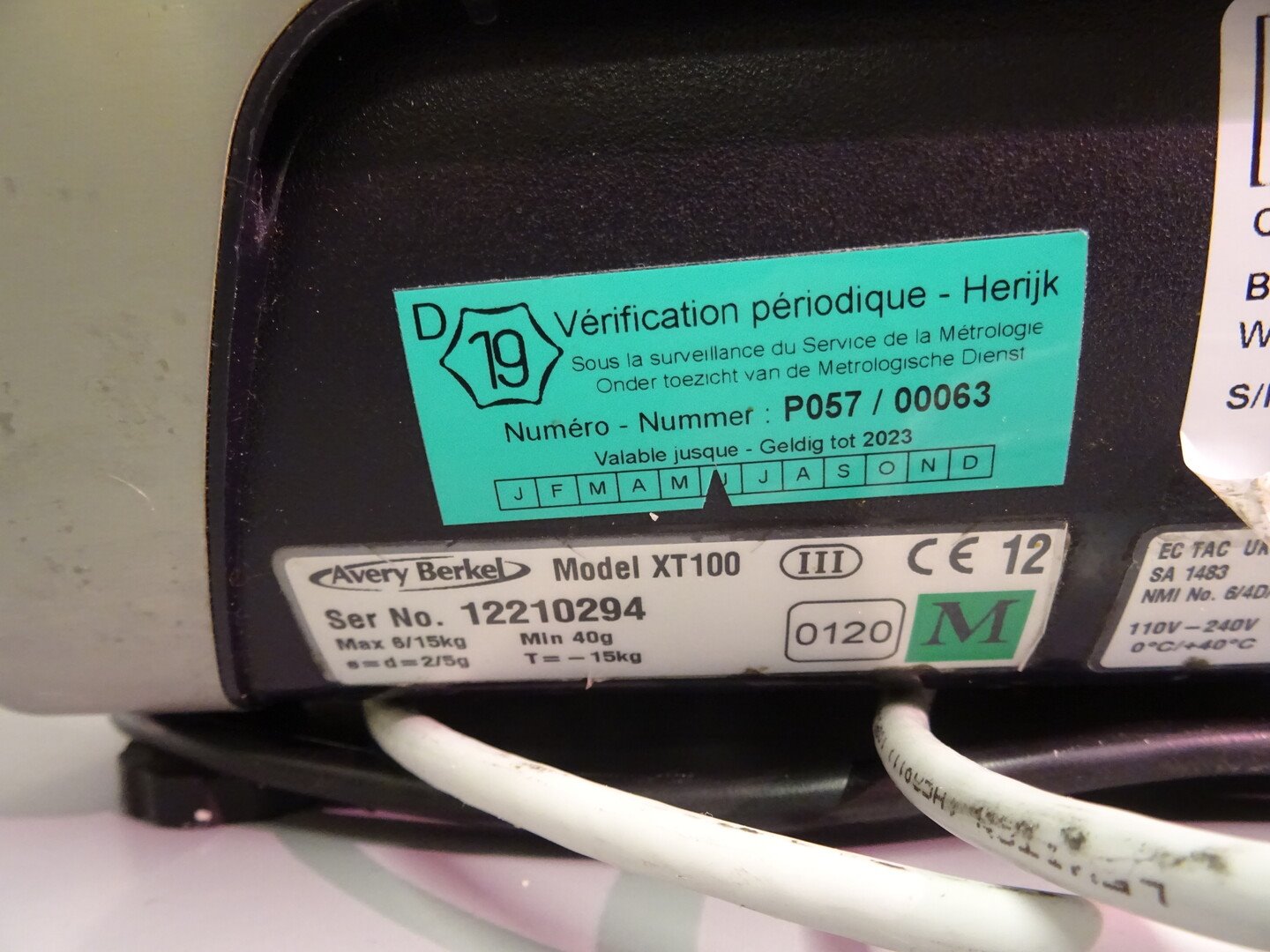 Type: XT100, min: 40g, max: 15kg