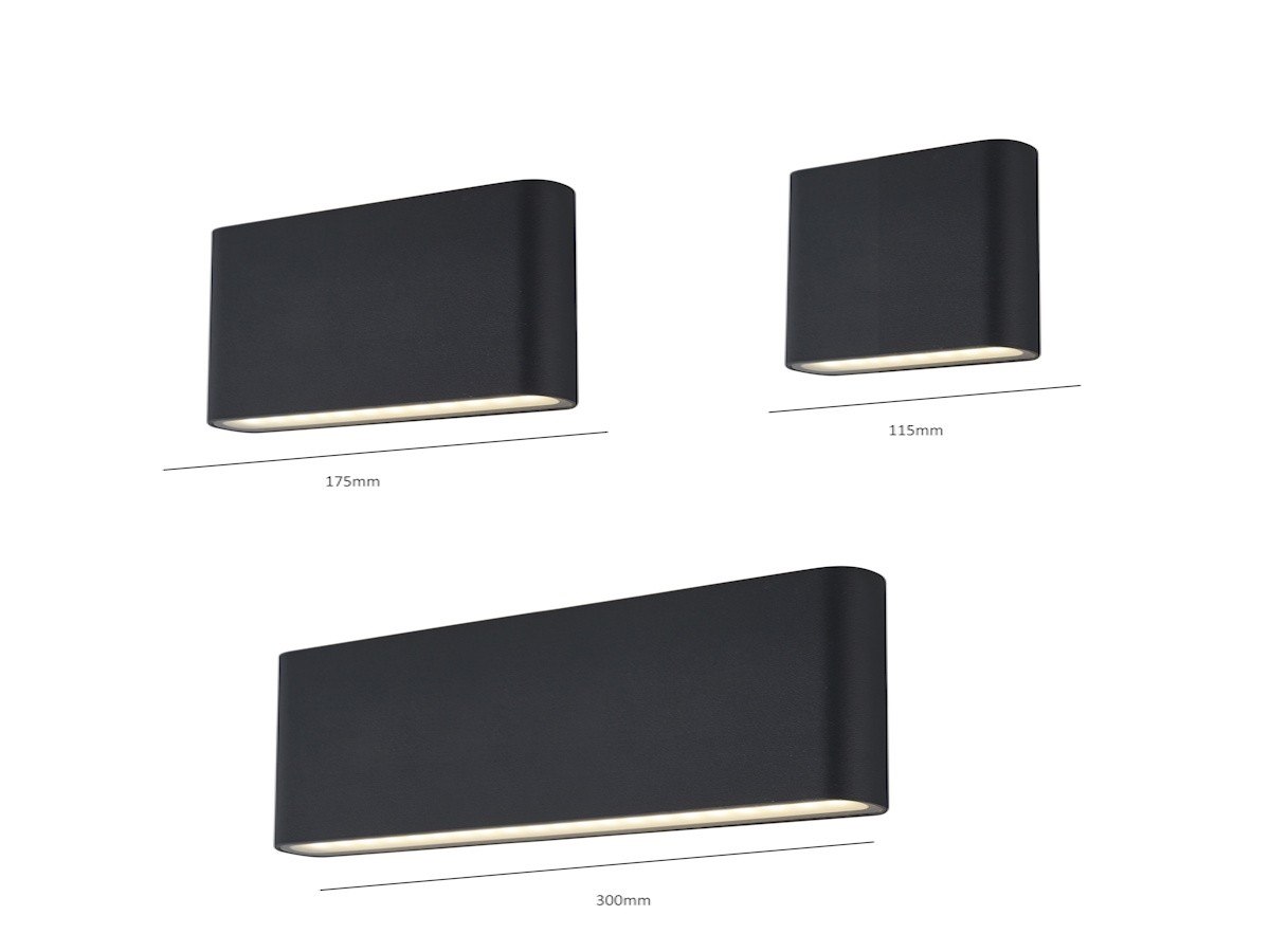 4 x 20 watt Design Wandlamp duo licht zand zwart warm wit waterdicht - lichtkleur 3000K warm wit - lichtstroom 980 lumen - SMD LED - IP54 waterdicht - materiaal aluminium en ghard glas - afm 300mm x90mm x35mm - voltage 220-240V - bevestiging inclusief - geschikt voor binnen en buiten - SKU 01170