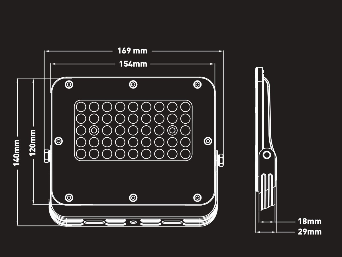 - lichtstroom 2830 lumen - lichtkleur daglicht 5000K - waterdicht IP65 - stralingshoek 90° - product kleur zand zwart - afm 169 x 120 x 29mm - materiaal aluminium en PC lens - met lens nauwkeurige lichtbundels zonder verspilling voor maximale helderheid - bescherming tegen mechanische inslagen IK07 - bevestigingsset niet inclusief - levensduur 30.000 uren - voltage 200-240V - sku 1105