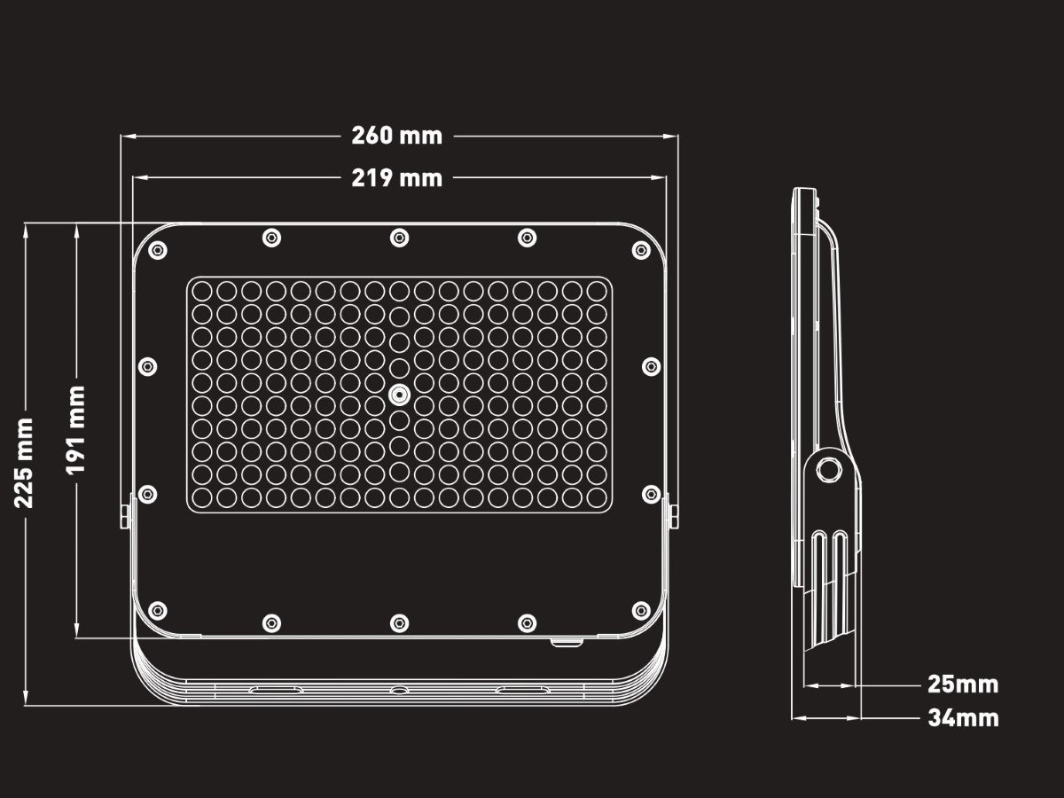 - lichtstroom 9400 lumen - lichtkleur daglicht 5000K - waterdicht IP65 - stralingshoek 90° - product kleur zand zwart - afm 260 x 191 x 34mm - materiaal aluminium en PC lens - met lens nauwkeurige lichtbundels zonder verspilling voor maximale helderheid - bescherming tegen mechanische inslagen IK07 - bevestigingsset niet inclusief - levensduur 30.000 uren - voltage 200-240V - sku 1109