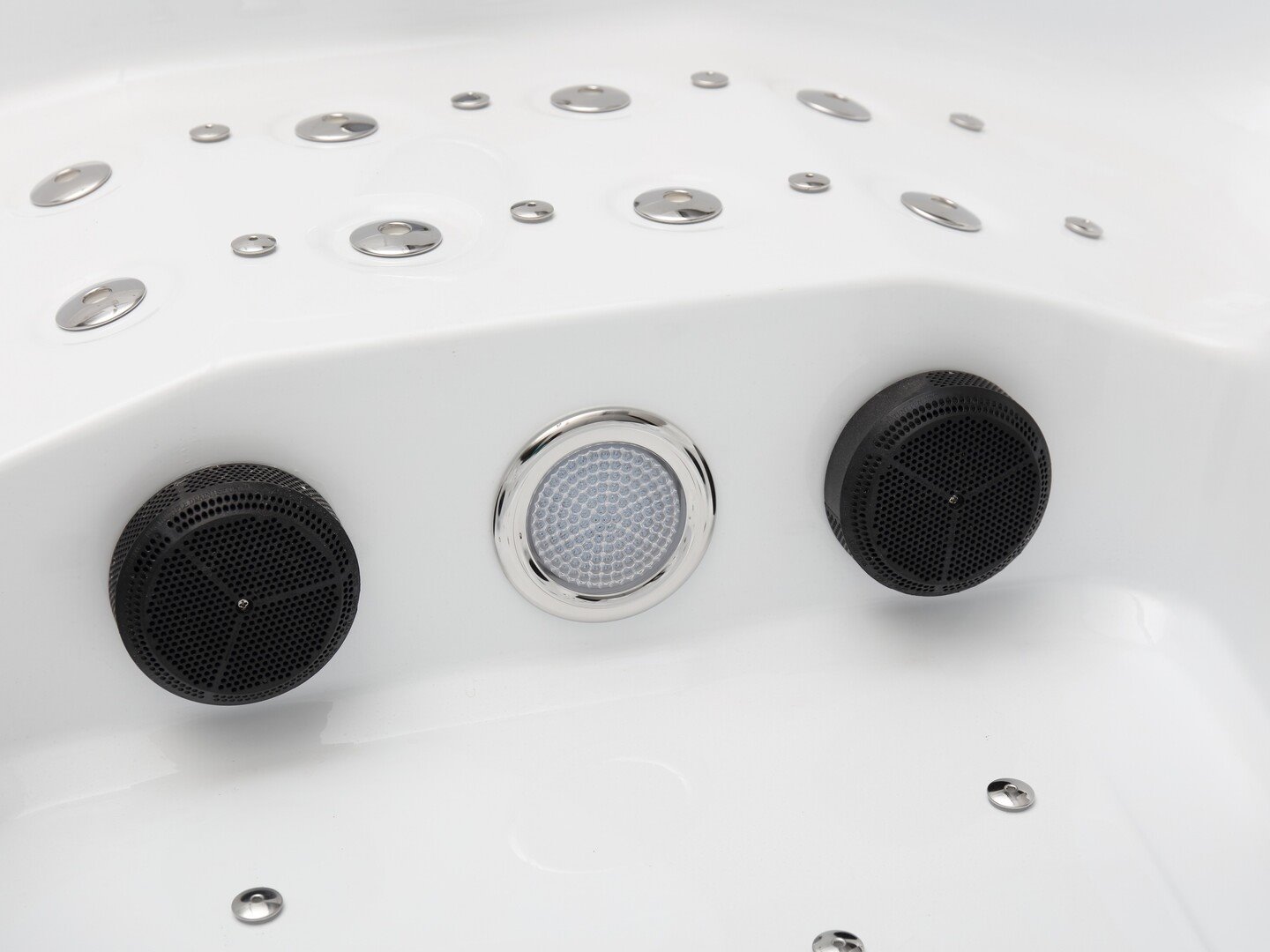 Aantal: 1<br /> Merk: Vonato<br /> Productnaam: Outdoor Spa / Jacuzzi<br /> Type: HT2021-2BED-WHRE<br /> Model: Vrijstaand<br /> Aantal personen: 5 persoons: 3 ligplaatsen, 2 zitplaatsen<br /> Kleur: Wit bad met mahonie rode zijkant<br /> Afmeting: 2080x2080x890mm<br /> Gewicht: 359 KG<br /> Inhoud: 1200 Liter<br /> Frame: RVS<br /> Jets: Totaal 91 jets, waarvan 66 waterjets van verschillende grootte en 25 airjets. Alle rugleuningen zijn voorzien van waterjets, waaronder roterende jets.<br /> Pompen: 2 Waterpompen van 2.2 kW - 1 Luchtpomp van 700 W - 1 Filterpomp 370 W<br /> Heater: 3 kW Heater om het water op temperatuur te houden<br /> Verlichting: 16 stuks LED onderwaterverlichting - 2 stuks grote bodemverlichting (verandert van kleur)<br /> Vermogen: Standaard 220V, dit kan omgezet worden naar 380V. Totaal vermogen 8850W<br /> Voorzien van: Zwarte cover (wordt gratis meegeleverd)- Radio - 2 speakers - Bluetooth - Isolatie - 4 Hoofdkussens - Ozone desinfectie - Aansluitingen zijn vrij bereikbaar en de motoren werken op 220V (om te zetten naar 380V).<br /> Garantie: 1 jaar<br /> <br /> Conditie: Nieuw<br /> Ter waarde van: € 13.495,00