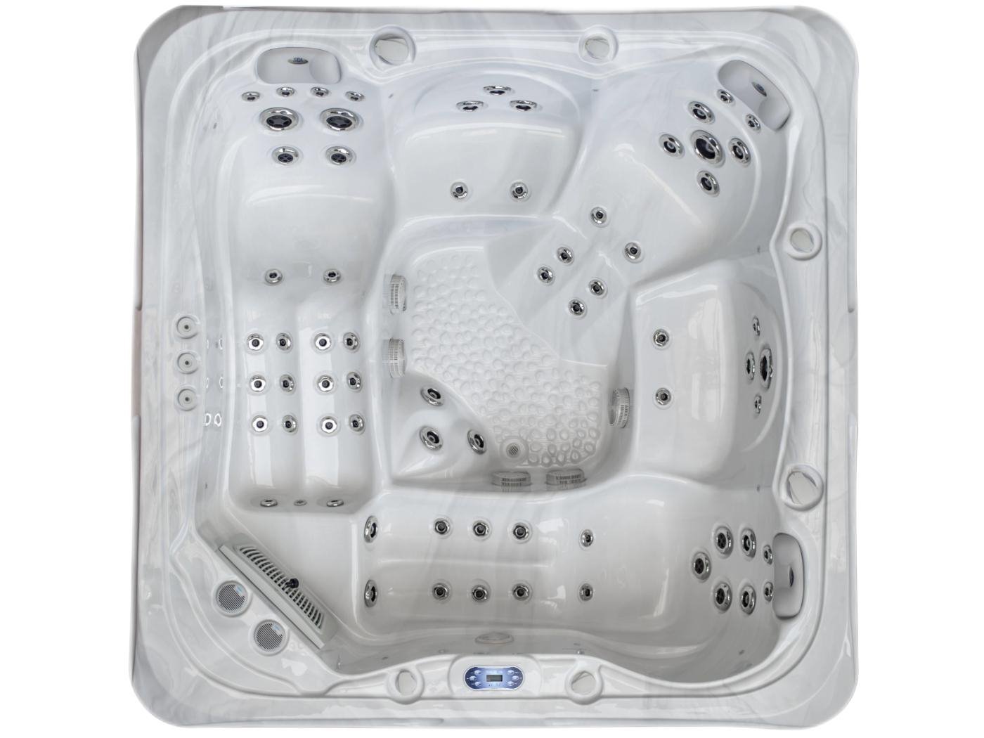 Aantal: 1<br /> Merk: Vonato<br /> Productnaam: Outdoor Spa met Waterjets<br /> Type: PF SPA 62 KC04<br /> Model: Vrijstaand<br /> Aantal personen: 5 persoons bad<br /> Afmeting: 2300x2300x900mm<br /> Kleur: Sneeuwwit bad met antraciete skirts<br /> Gewicht: 410KG<br /> Inhoud: 1200 Liter<br /> Frame: RVS<br /> Besturing: Balboa spa pack BP601G1 + TP600 <br /> Aantal jets: 68 massagejets<br /> Media apparatuur: 2x Aquatic AV speakers, Bluetooth<br /> Verlichting: 10x onderwaterverlichting, 1x spa spotlight, 4x hoekverlichting<br /> Vermogen: Totaal vermogen 8 kW, 32A<br /> Pompen: Circulatiepomp: WTC50, Massagepomp: 2 x LP300<br /> Voorzien van: 3 LED fonteintjes – Ozonator – 3 hoofdkussens – Drain – 2x Waterverdeler – 2x Lucht controller - 2 filters - Thermo cover – Isolatie – Trapje – Muziek luisteren via Bluetooth<br /> <br /> Conditie: Nieuw