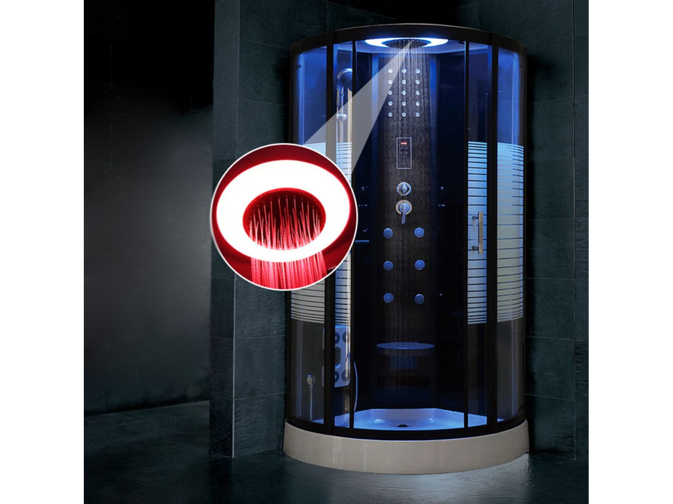 Aantal: 1<br /> Merk: Vonato<br /> Productnaam: Stoomcabine<br /> Type: LR9092-100<br /> Model: Stoomcabine - Halfrond<br /> Afmeting: 1000x1000x2150mm<br /> Aantal jets: Cabine is voorzien van 6 waterjets voor een aangename rugmassage<br /> Voorzien van: - Veiligheidsglas wat zorgt voor extra veiligheid in de stoomcabine. Dankzij het veiligheidsglas hoeft u zich nooit zorgen te maken over scherven op de vloer want het is stootbestendig en sterk. Mocht het toch gebeuren dat het glas barst, dan zal het uiteenvallen in onscherpe stukjes. - Ventilator - LED verlichting in het plafond, de kleuren kunnen veranderen in 6 kleuren - Regendouche met verlichting in het plafond - Achtergrond verlichting - Een uitklapbaar zitje voor als u wil gaan zitten tijdens het stomen - Cabine staat op verstelpoten die eenvoudig te stellen zijn in hoogte - Douchegel en shampoo houder - Handdoekrek - Voetmassage functie<br /> Garantie: 1 jaar<br /> <br /> Conditie: Nieuw<br /> Ter waarde van: €2.195,00