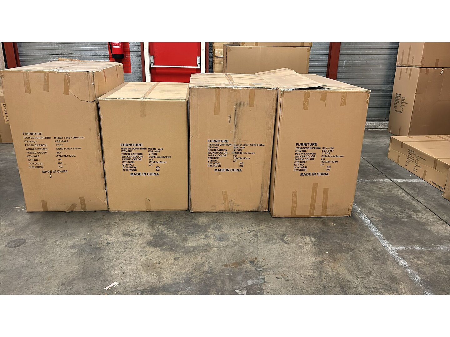 Aantal: 1<br /> Merk: Vonato <br /> Productnaam: Loungeset<br /> Type: ESR9487<br /> Model: 8-delig<br /> Kleur: Donkerbruin wicker met lichtgrijze kussens<br /> Afmeting: 8-delige set:<br /> 3 * Middendeel - 1000x1000x700mm<br /> 2 * Hoekbank met armleuning - 1200x1000x700mm<br /> 1 * Hoekdeel - 1000x1000x700mm<br /> 1 * Hocker - 1200x1000x440mm<br /> 1 * Salontafel - 1000x1000x340mm - Helder glazen tafelblad<br /> <br /> Frame: Gepoedercoat aluminium frame - garandeert een langere levensduur<br /> Voorzien van: Waterafstotende kussens (zitkussens zijn 12cm dik en de rugkussens zijn 10cm dik) - weerbestendig vlechtwerk.<br /> <br /> Conditie: Nieuw <br /> Ter waarde van: € 4.595,00